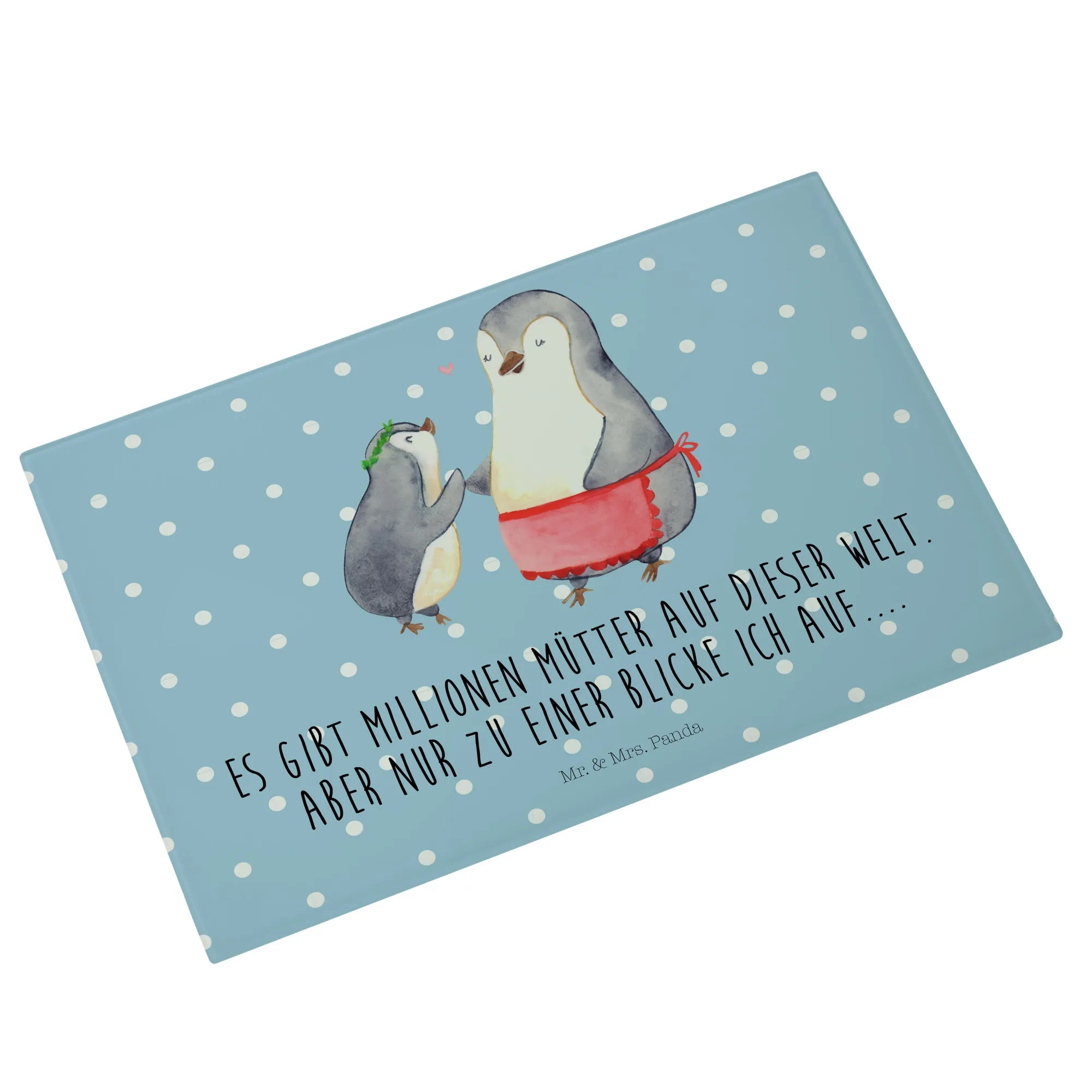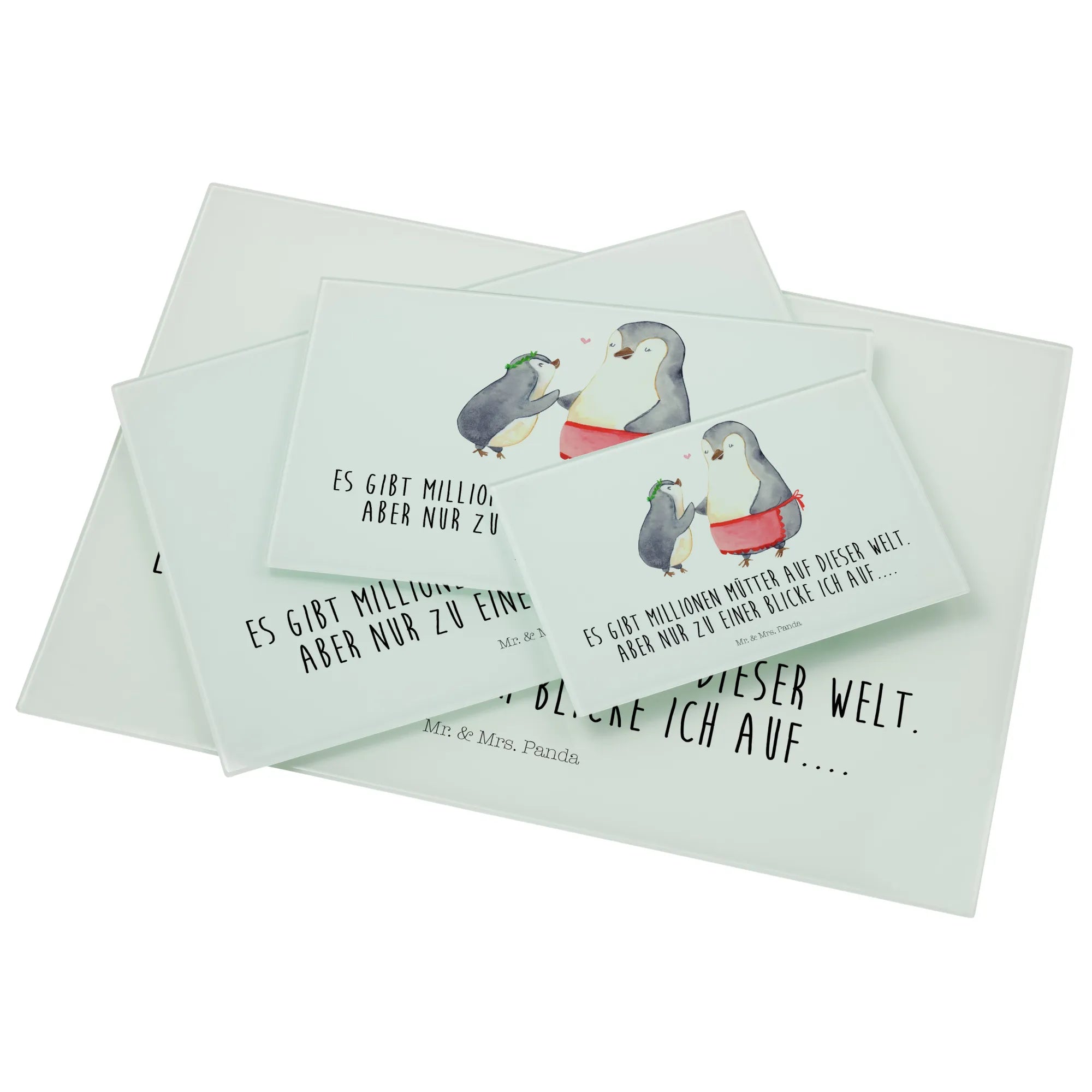 Das Medium Glas Schneidbrett mit dem süßen Motiv "Pinguin mit Kind" von Mr. & Mrs. Panda ist das perfekte Geschenk für alle Mamas, die du liebst – ob zum Geburtstag oder als besonderes Zeichen der Wertschätzung zum Muttertag. Dieses liebevoll gestaltete Schneidebrett zeigt eine herzliche Szene: Ein Pinguin in einer roten Schürze, der fürsorglich über sein Kind wacht, das einen kleinen grünen Kranz auf dem Kopf trägt. Über den beiden schwebt ein kleines Herz, das die besondere Bindung zwischen Mutter und Kind betont.