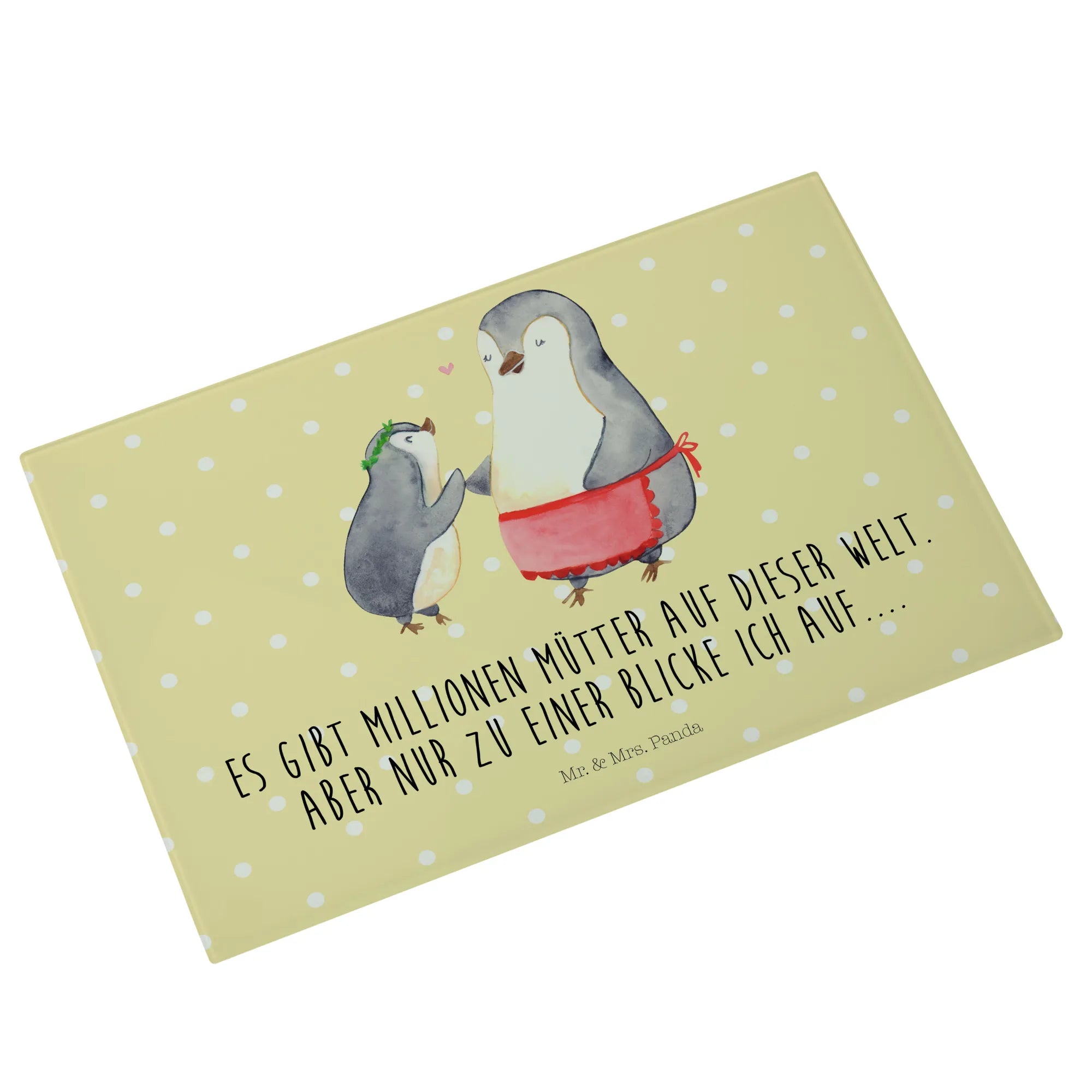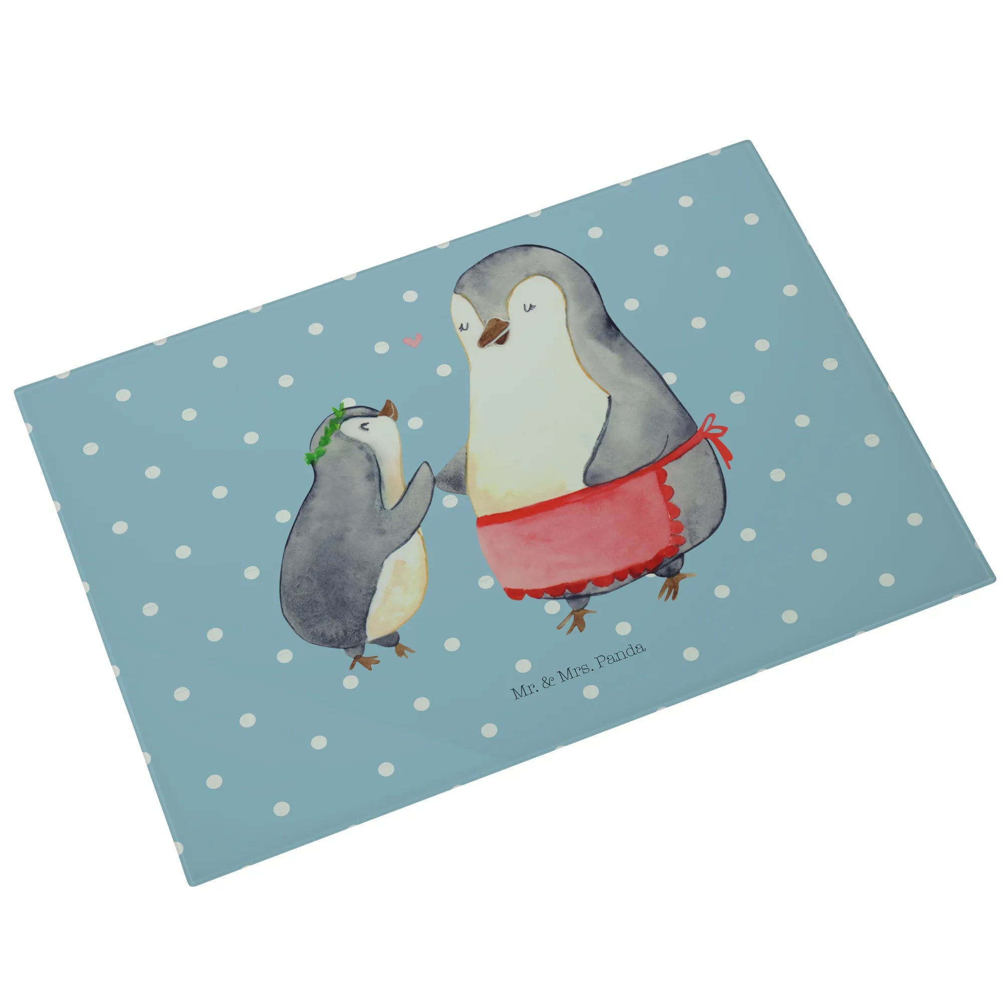 Dieses hochwertige Schneidebrett aus Glas ist die perfekte Verbindung aus Funktionalität und emotionalem Design. Die liebevolle Illustration einer Pinguin-Mama mit Schürze und ihrem kleinen Kind mit Blumenkranz zeigt die bedingungslose Liebe, die wir für unsere Mütter empfinden. Es ist das ideale Geschenk zum Muttertag, zum Geburtstag oder einfach als kleine Aufmerksamkeit für zwischendurch.
