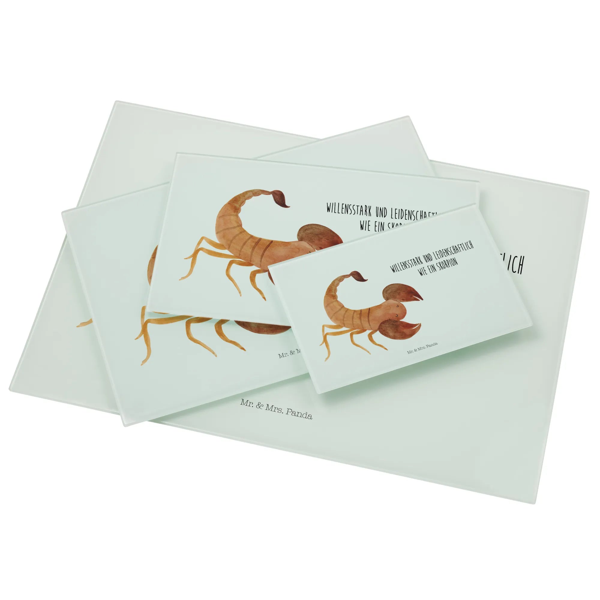 Das Medium Glas Schneidbrett mit dem niedlichen Sternzeichen Skorpion von Mr. & Mrs. Panda ist das perfekte Geschenk für all jene, die im Oktober oder November geboren sind. Egal, ob zum Geburtstag oder einfach nur so – dieses spezielle Schneidebrett bringt Freude in jede Küche! Mit seinem handgezeichneten, farbenfrohen Design und dem Motto „Willensstark und leidenschaftlich wie ein Skorpion“ strahlt es eine besondere Energie aus, die perfekt zur kreativen und tiefgründigen Natur der Skorpione passt.