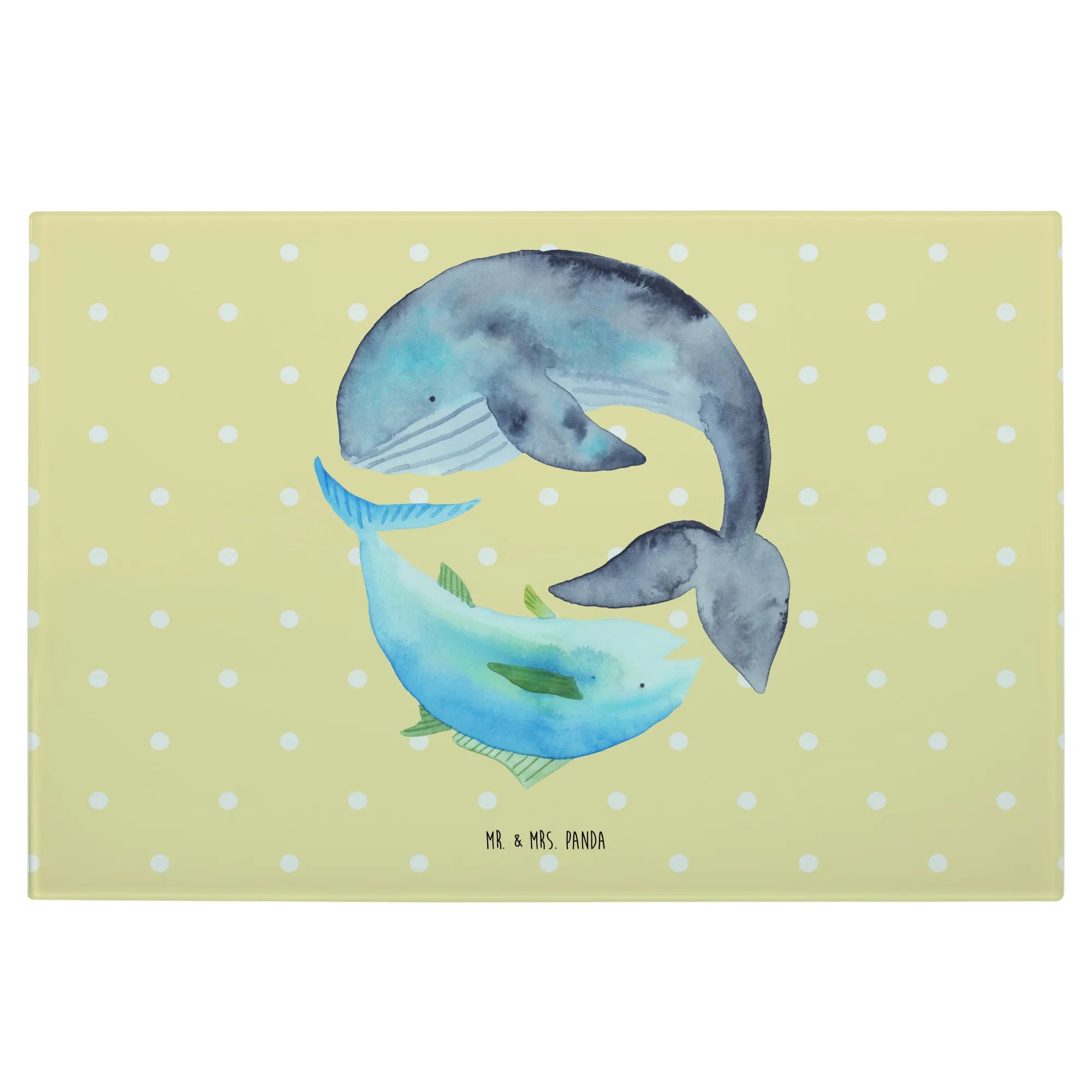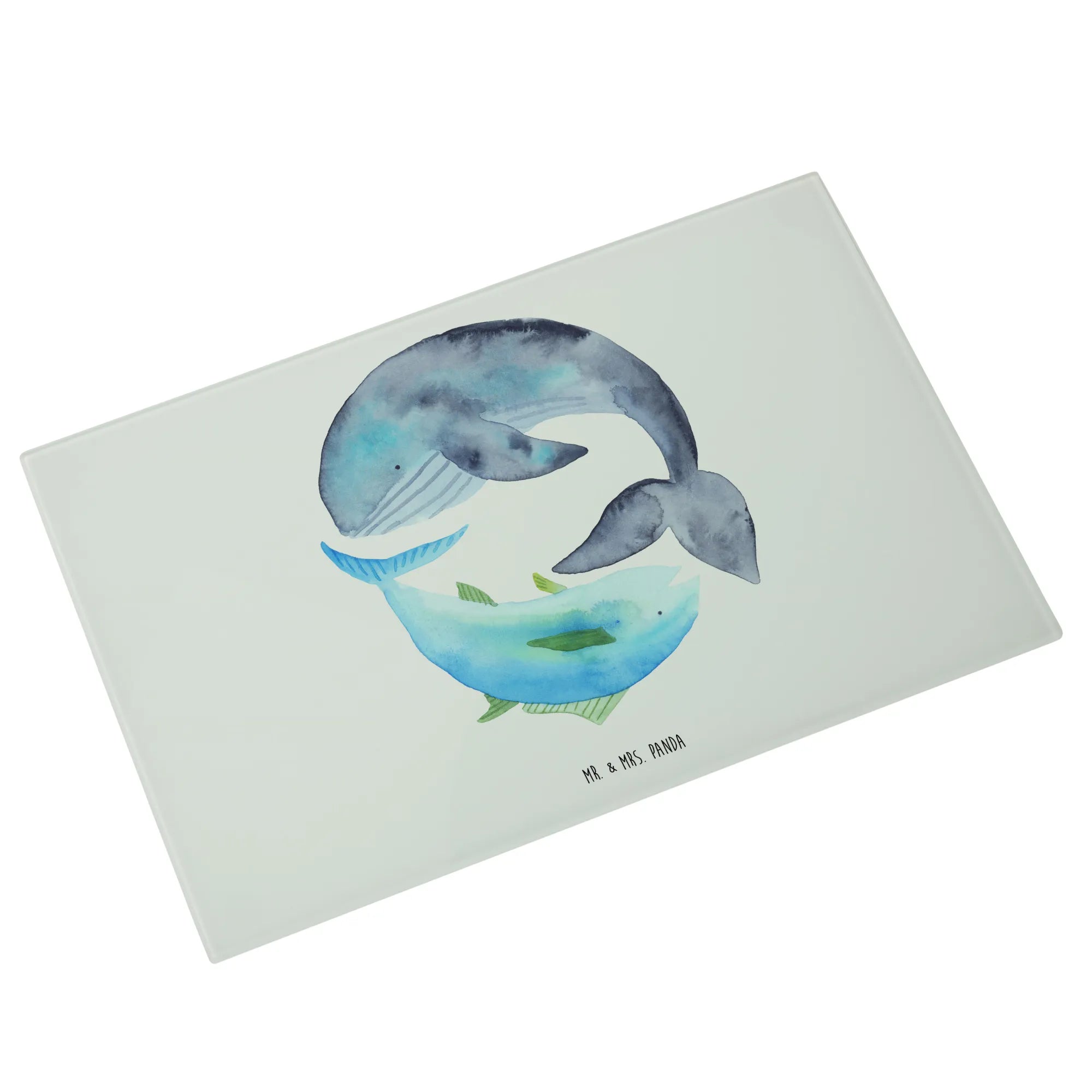 Das XL Glas Schneidbrett mit dem witzigen Motiv des Walfischs und Thunfischs von Mr. & Mrs. Panda ist das perfekte Geschenk für Tierliebhaber und Freunde des maritimen Lebensstils! Inspiriert von der Schönheit und Vielfalt des Ozeans, bringt dieses einzigartige Brett die Magie des Meeres direkt in deine Küche.