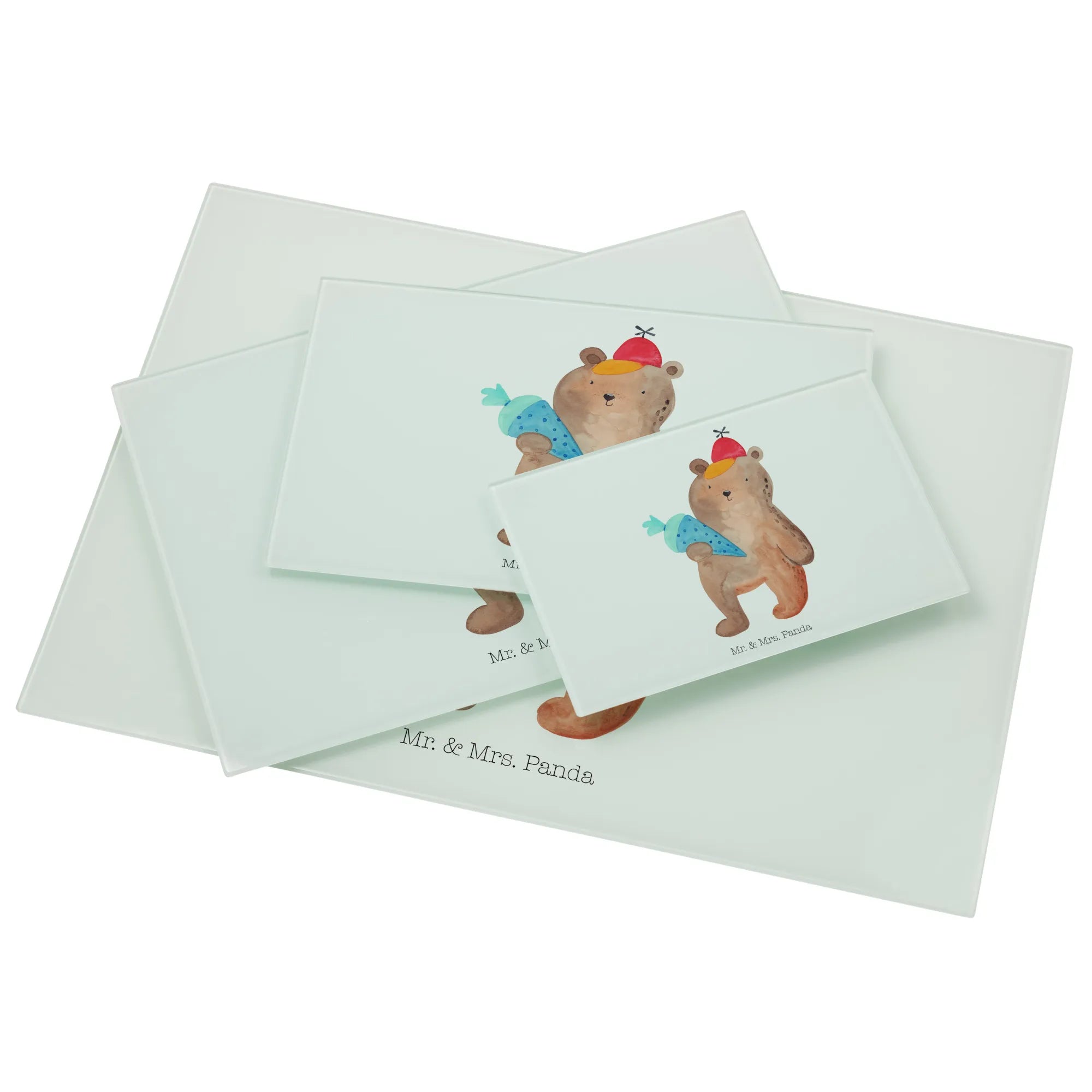 Das Medium Glas Schneidbrett mit dem süßen Bär Motiv und der Schultüte von Mr. & Mrs. Panda ist das perfekte Geschenk für den ersten Schultag!