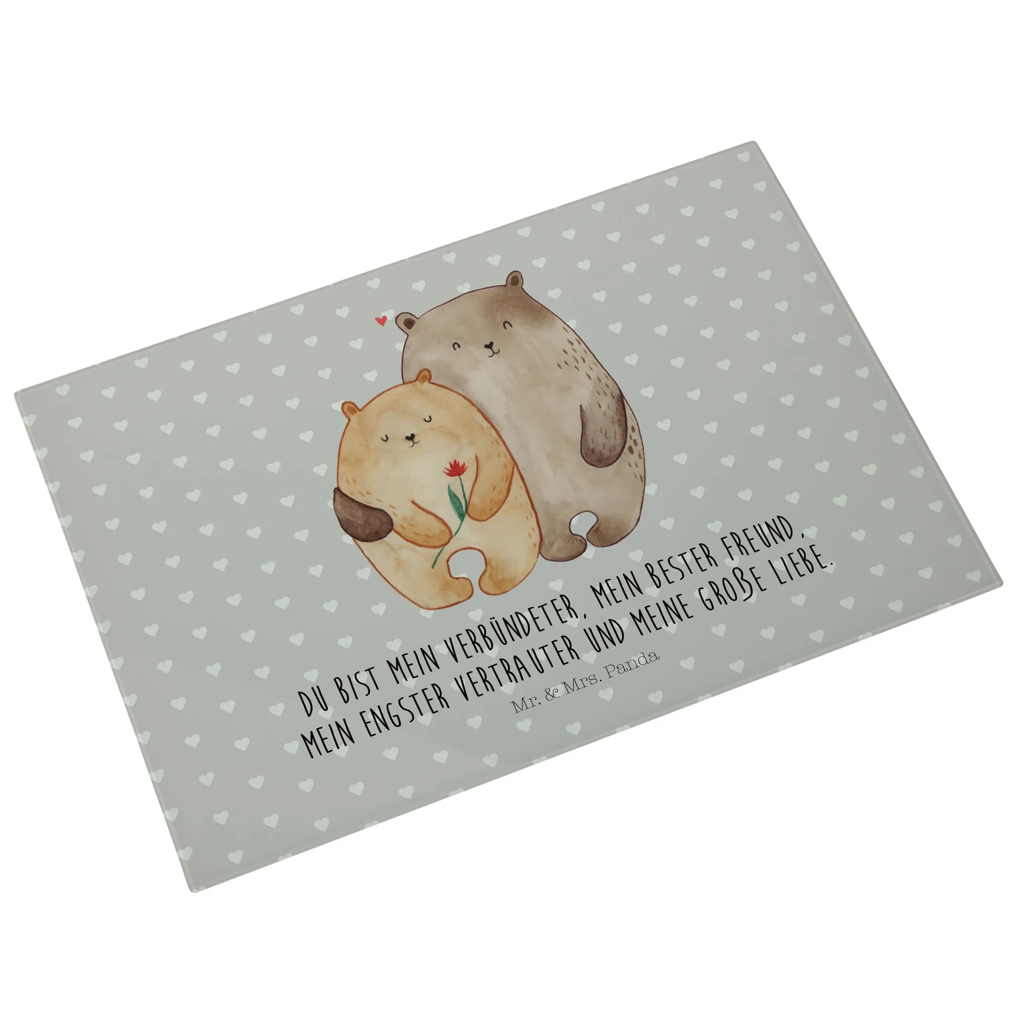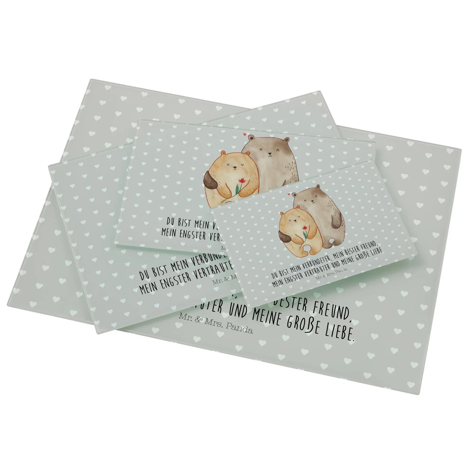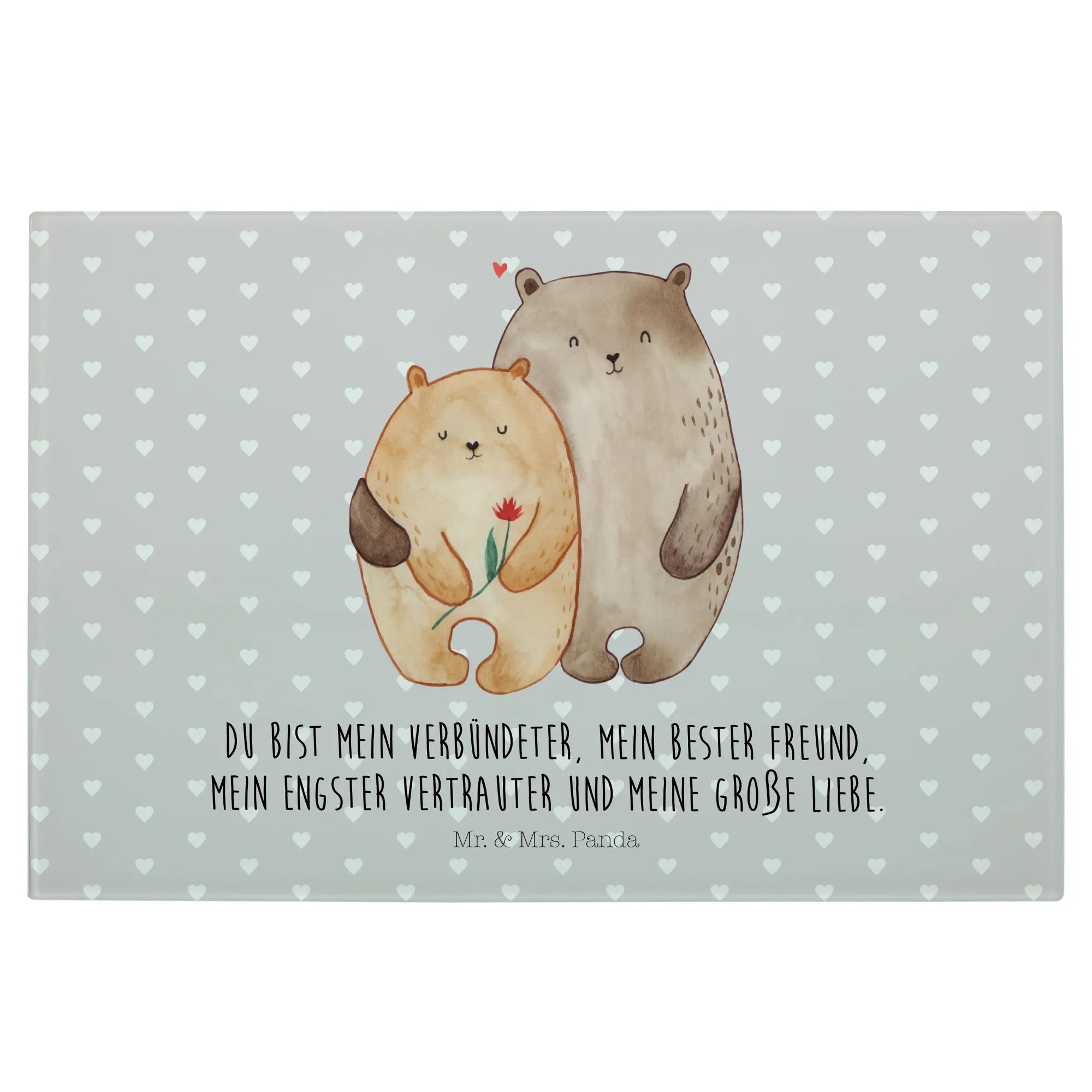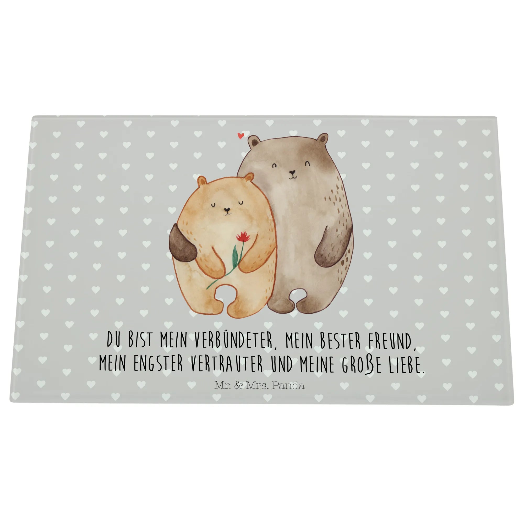 Du bist auf der Suche nach einem ganz besonderen Geschenk für deinen Lieblingsmenschen? Dann ist das XL Glas Schneidbrett mit dem herzlichen Motiv "Bären Liebe" von Mr. & Mrs. Panda genau das Richtige für dich!