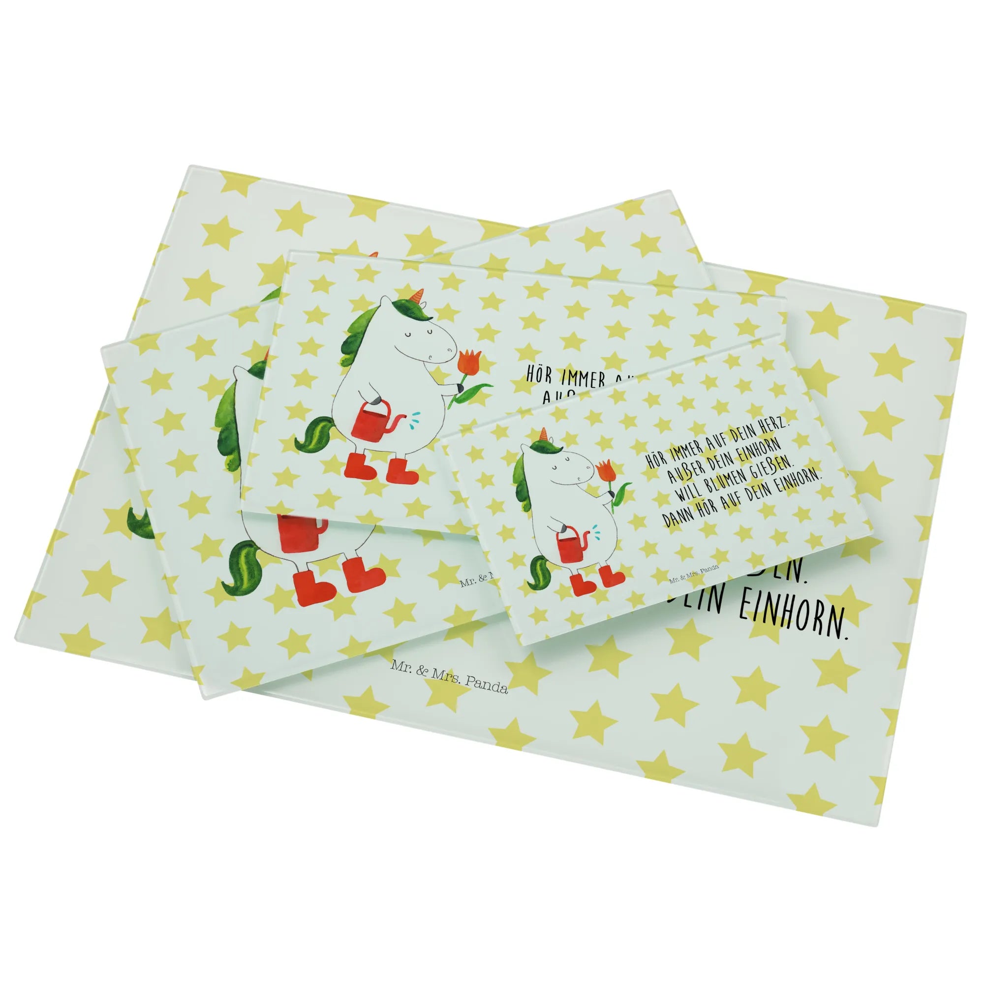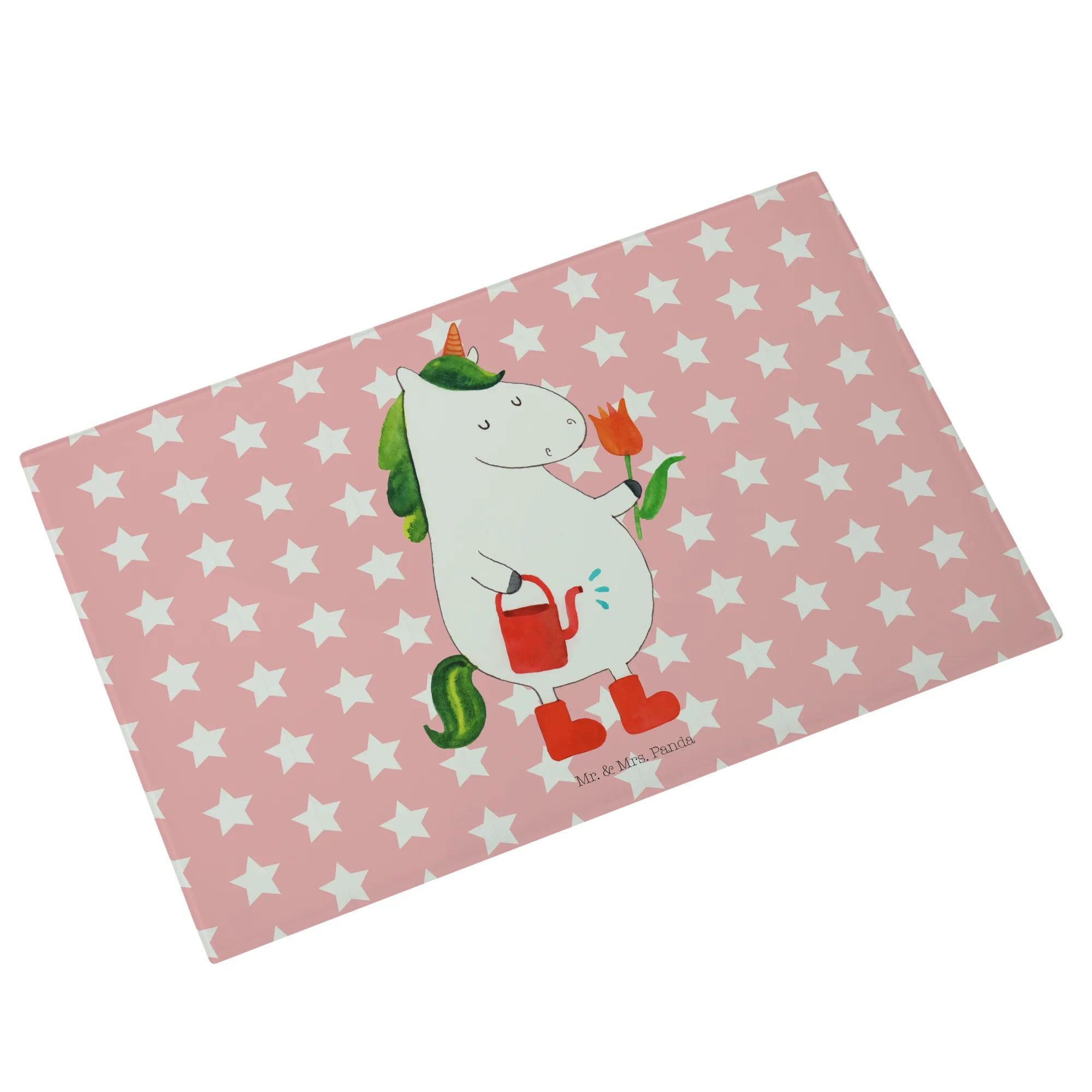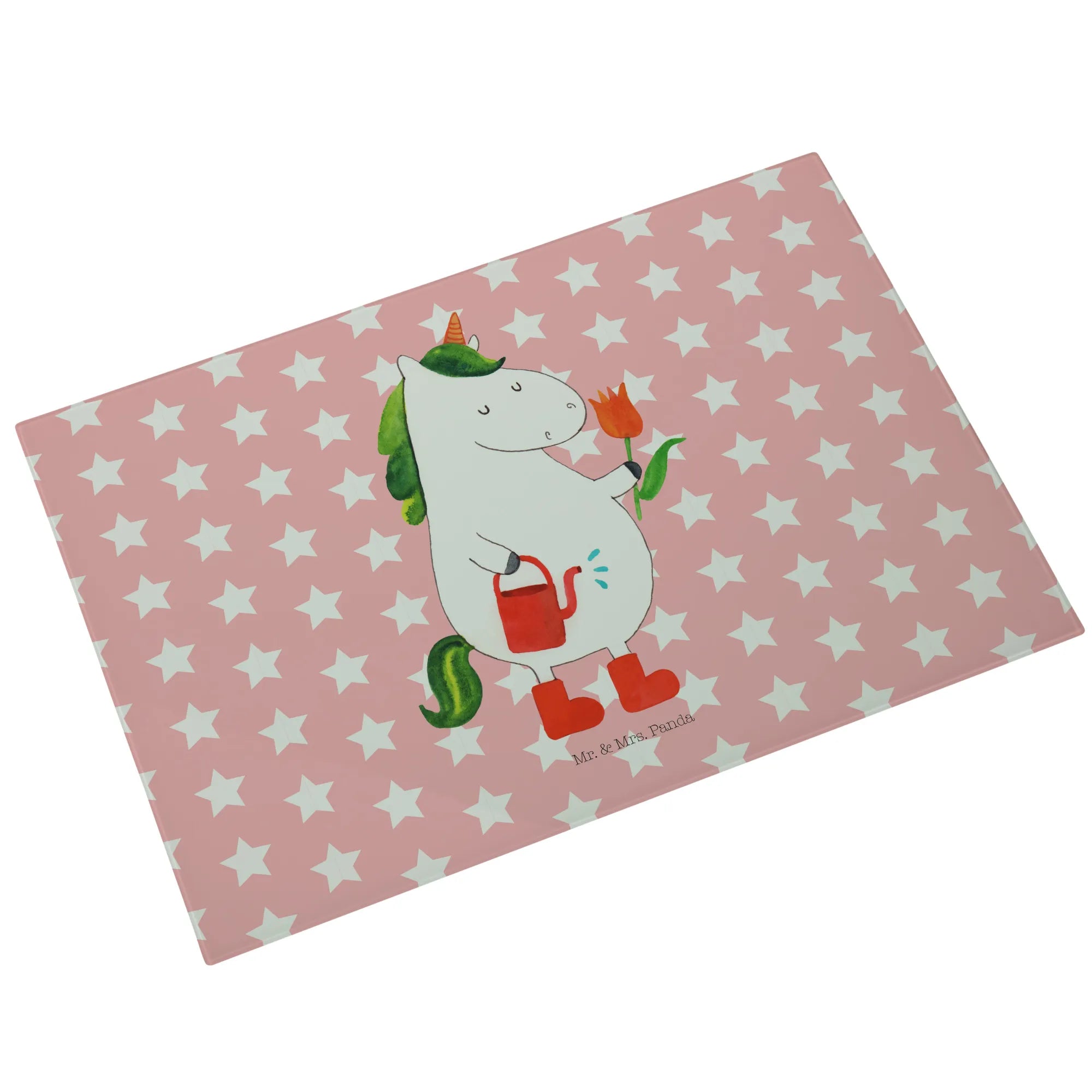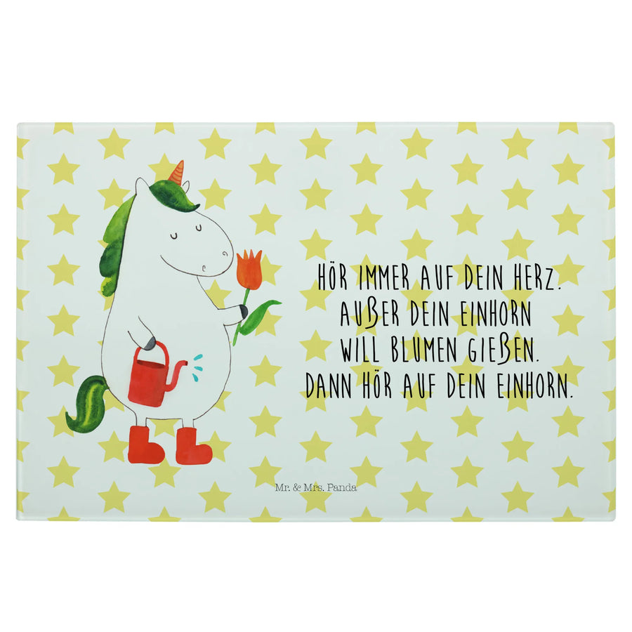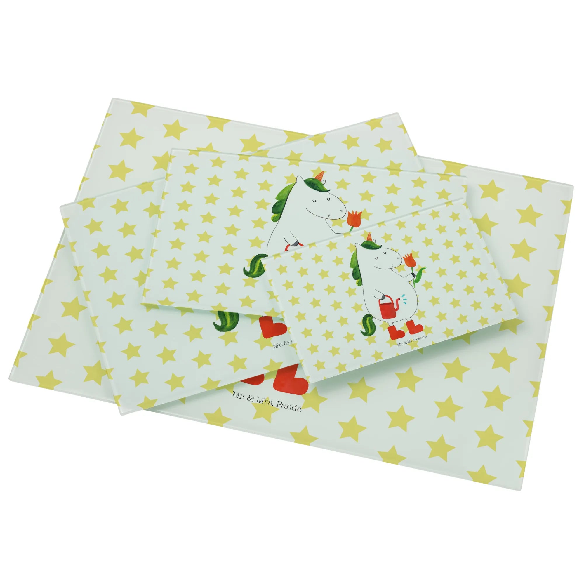 Entdecke das perfekte Medium Glas Schneidbrett mit dem zauberhaften Motiv des Einhorn Gärtners aus der Einhorn-Kollektion von Mr. & Mrs. Panda!