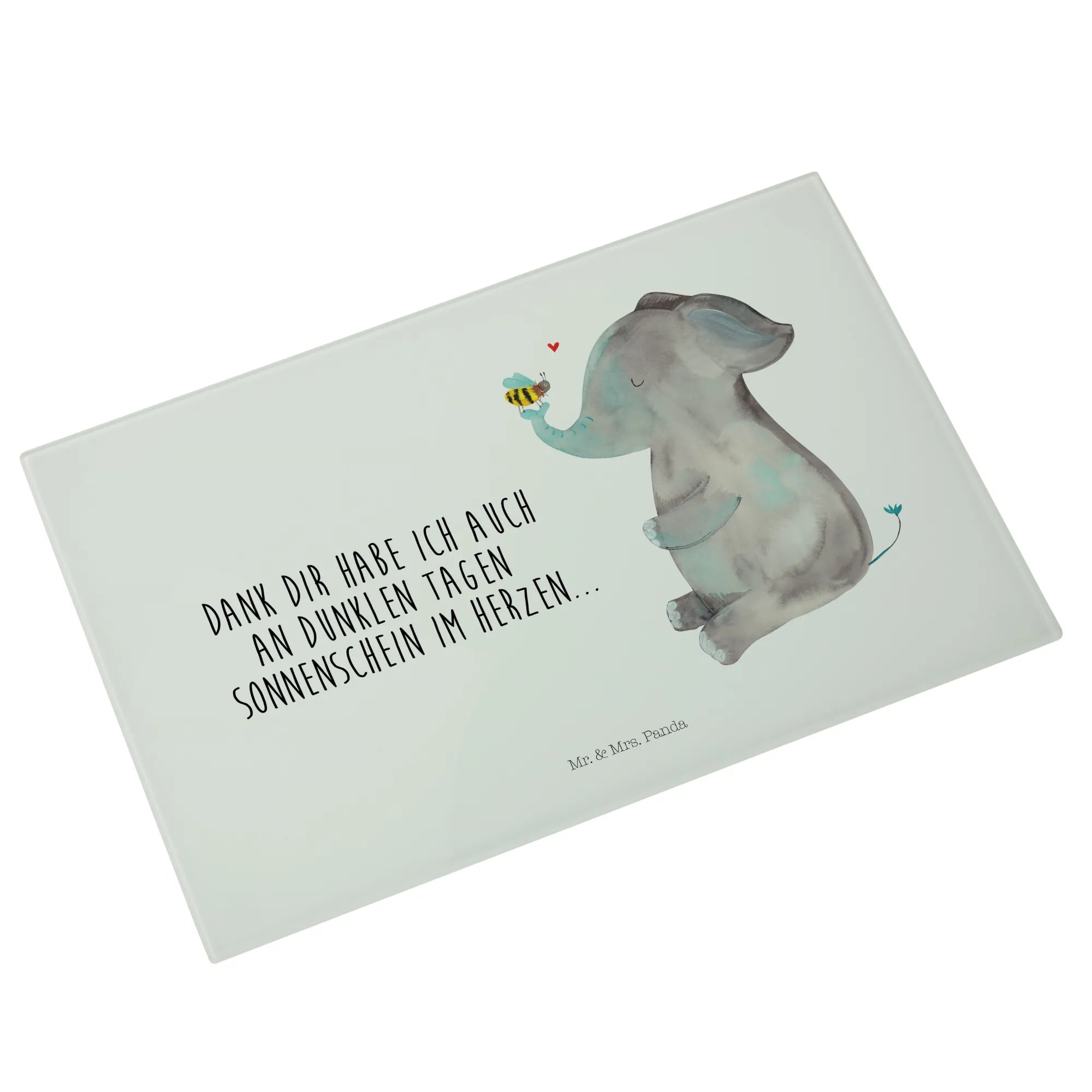 Das Medium Glas Schneidbrett mit dem bezaubernden Motiv von Elefant und Biene aus der Small World Kollektion von Mr. & Mrs. Panda ist das perfekte Geschenk für all jene, die kleine Freuden des Lebens schätzen! 🌟 Egal ob zum Jahrestag, für den Heiratsantrag oder einfach als Liebesbeweis, dieses stylische Schneidebrett vermittelt durch seine süße Botschaft 'Dank dir habe ich auch an dunklen Tagen Sonnenschein im Herzen...' Liebe und Wertschätzung.