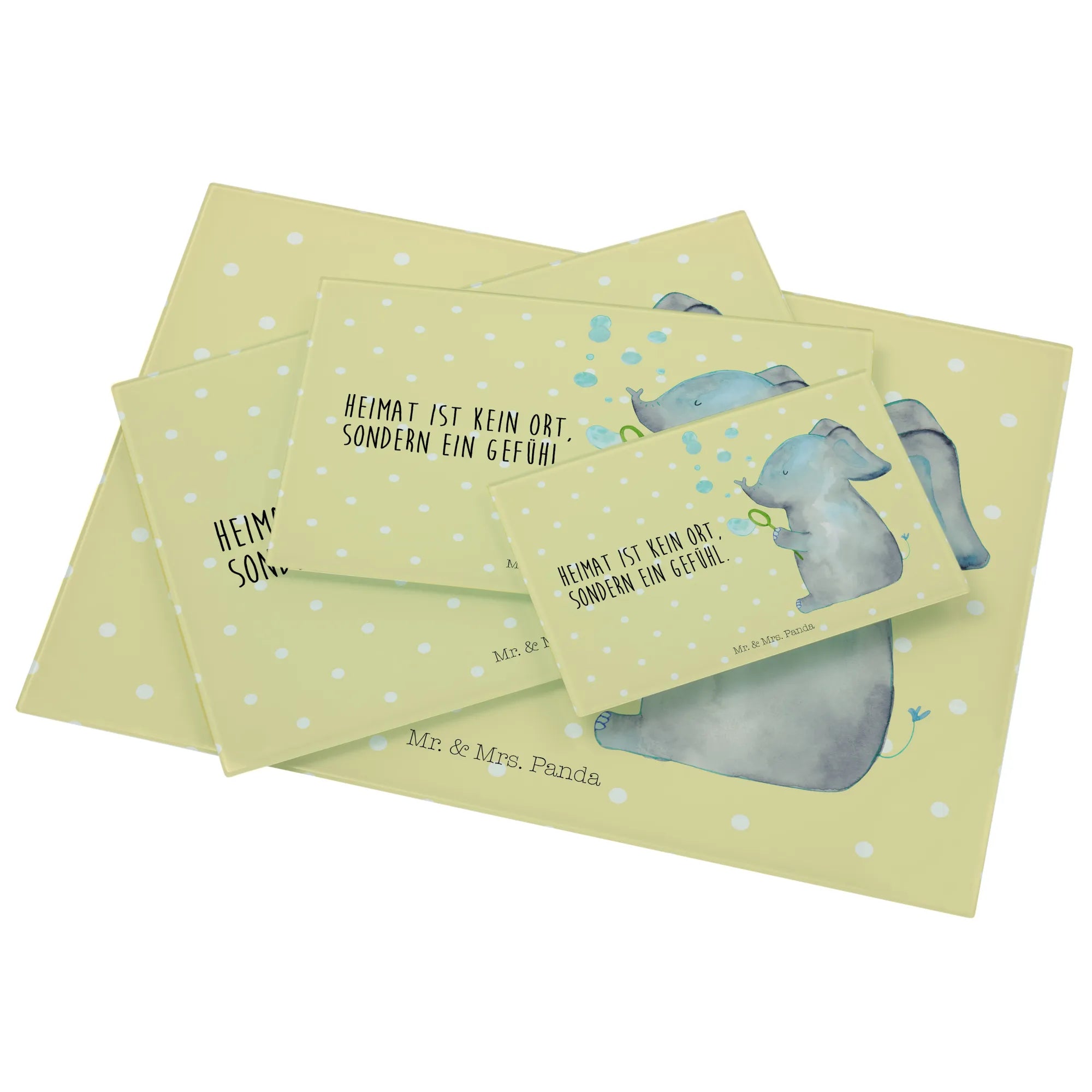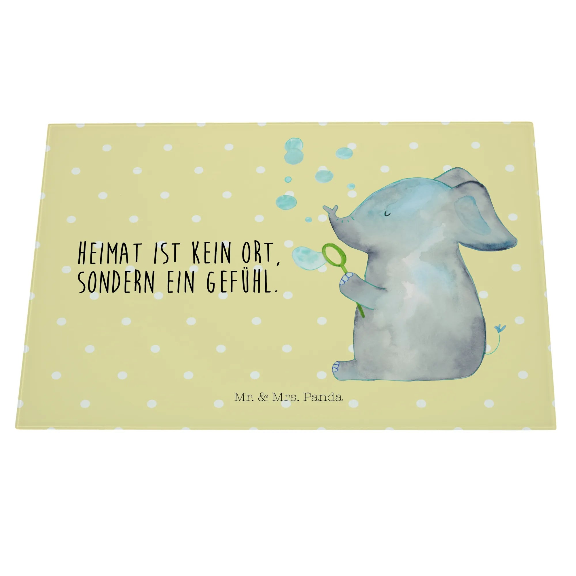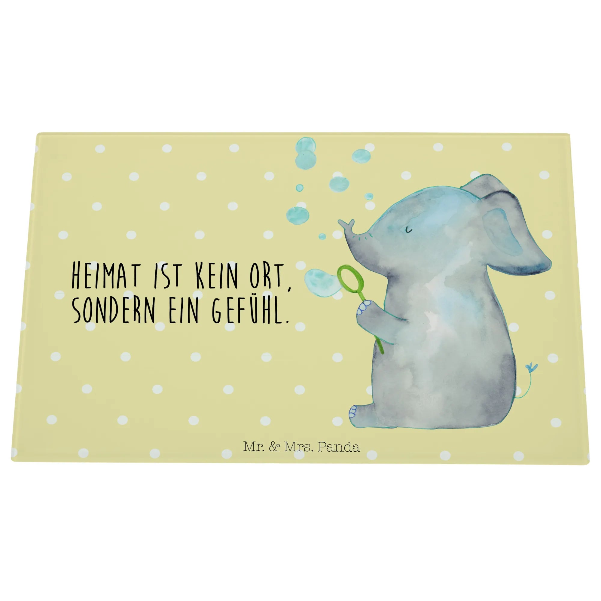 Willkommen in der zauberhaften Welt von Mr. & Mrs. Panda! Wenn du auf der Suche nach dem perfekten Geschenk für einen lieben Freund oder für dich selbst bist, dann ist unser XL Glas Schneidbrett "Elefant Seifenblasen" aus der beliebten Kollektion "Small World" genau das Richtige.