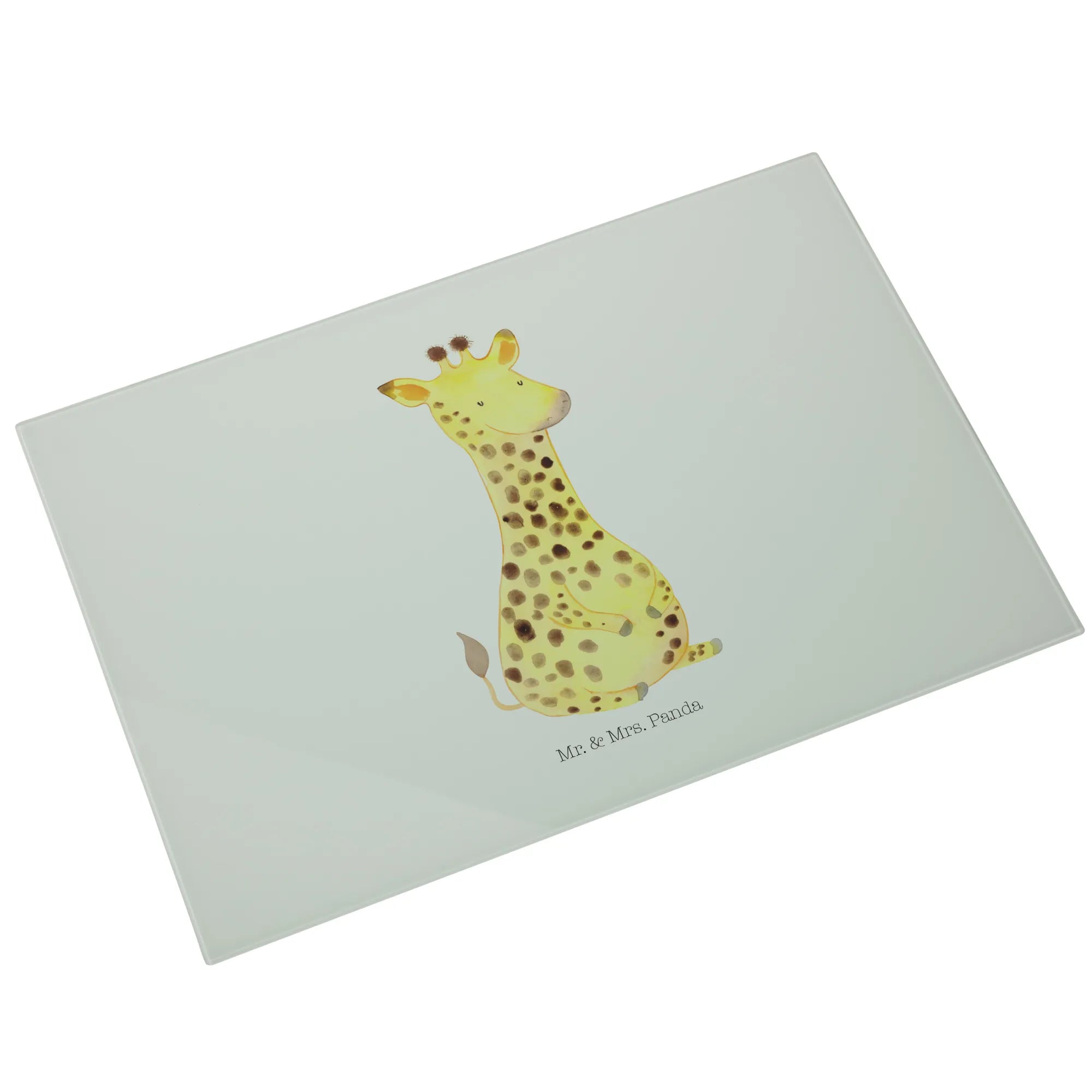 Schneidebrett Glas Giraffe Zufrieden - XL Glas Schneidbrett - mit Spruch