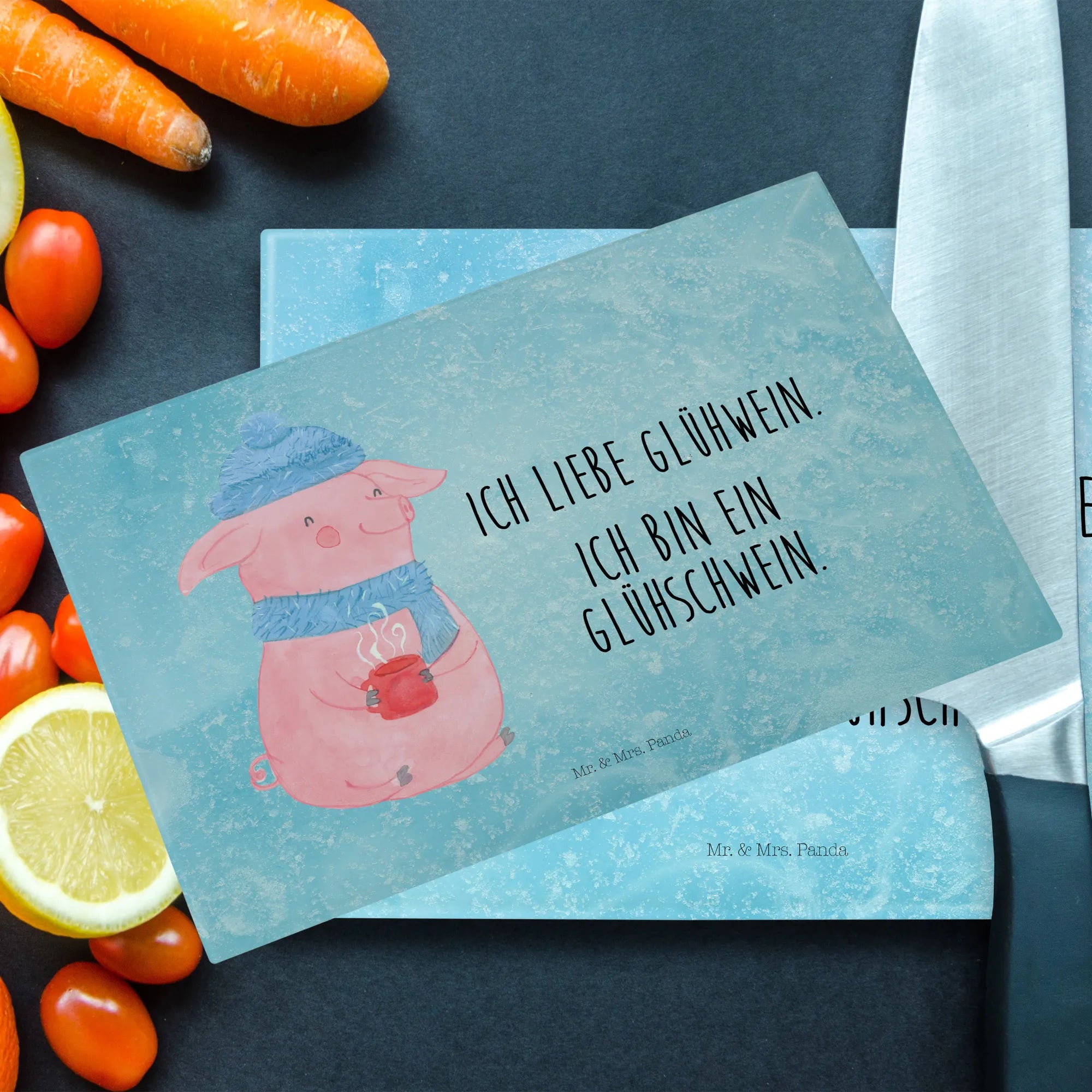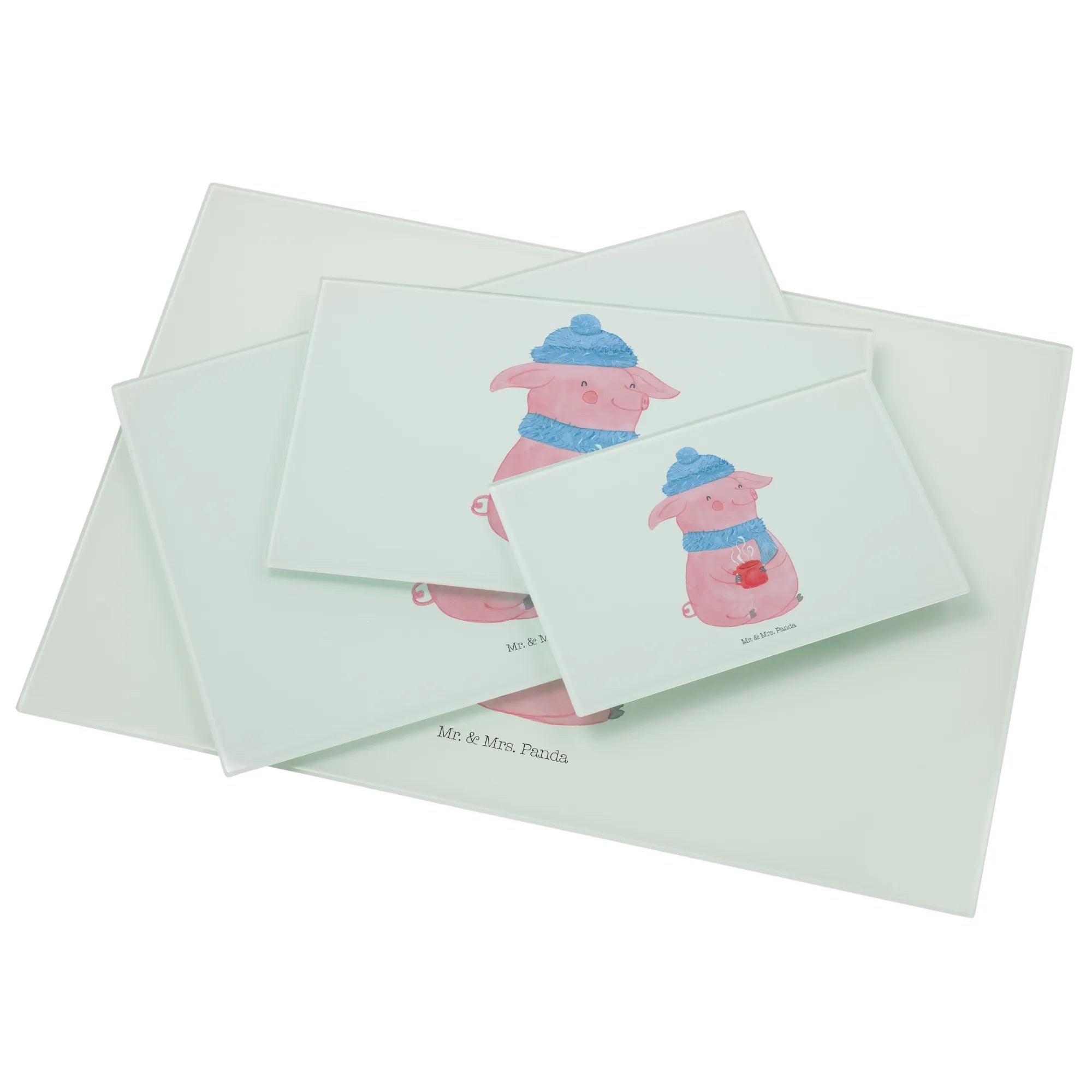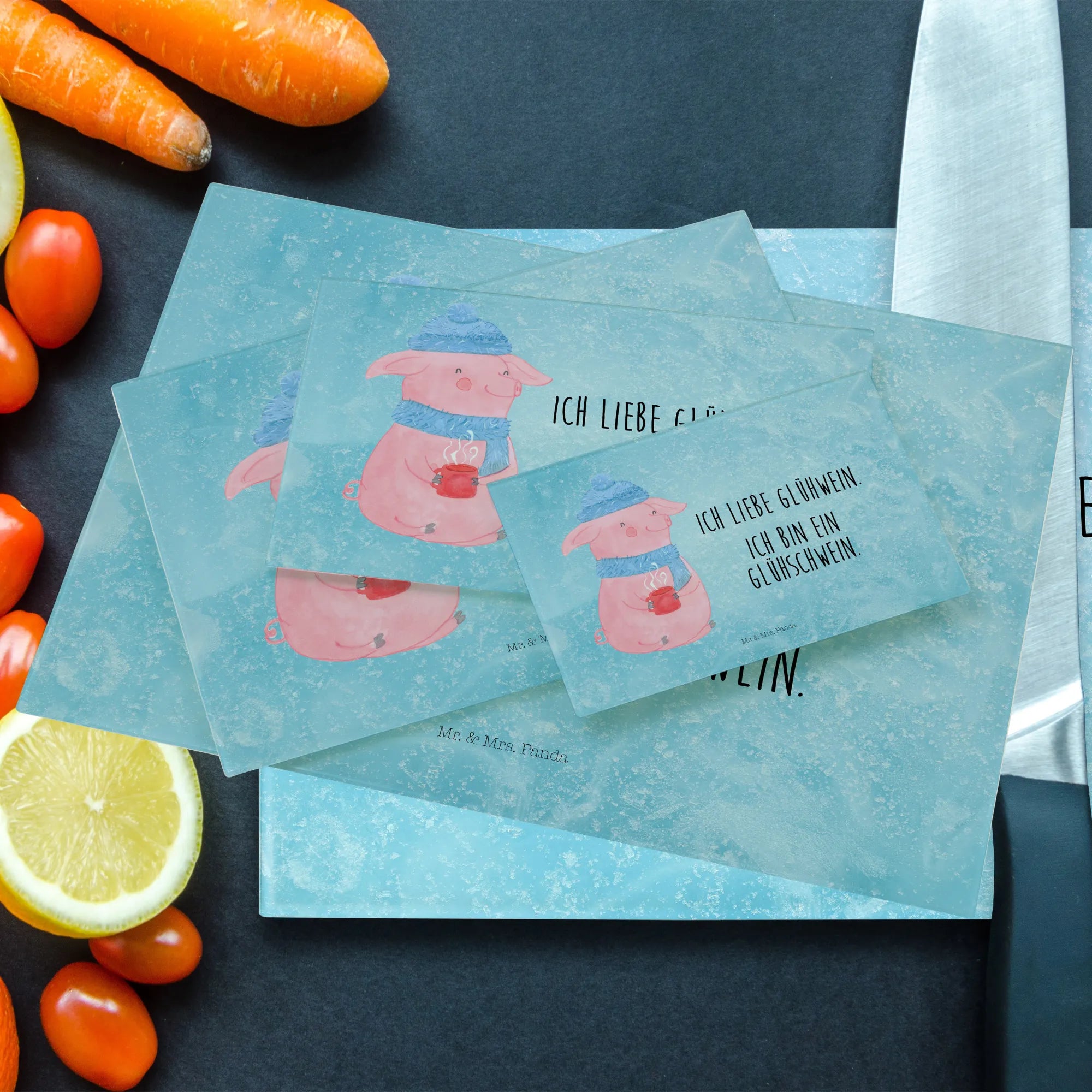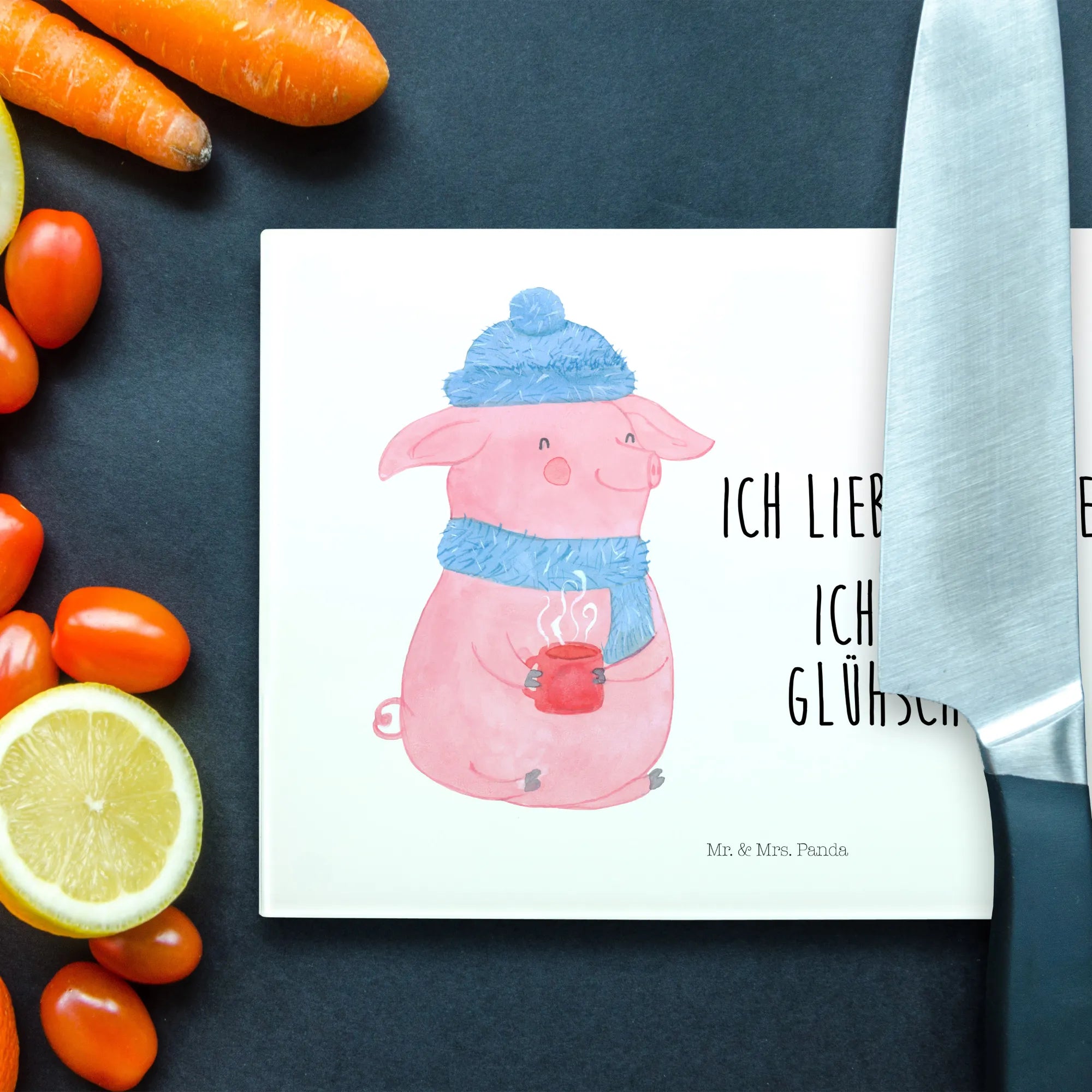 Das Medium Glas Schneidbrett "Glühschwein" von Mr. & Mrs. Panda ist das perfekte Geschenk für alle, die den Winter und die Weihnachtszeit lieben. Mit einem fröhlichen, rosa Schwein, das warme Winterkleidung trägt und eine dampfende Tasse Glühwein hält, verleiht dieses Schneidbrett jedem Küchenbereich einen Hauch von Gemütlichkeit.