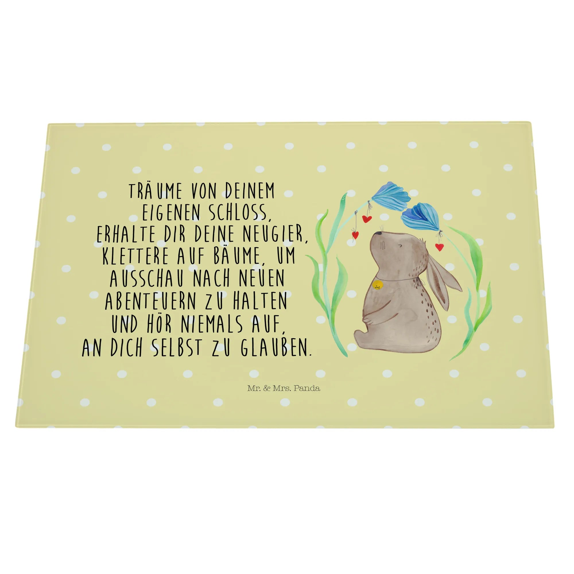 Das Medium Glas Schneidebrett mit dem niedlichen Motiv "Hase Blume" aus der Ostern-Kollektion von Mr. & Mrs. Panda ist das perfekte Geschenk für Kinder und Familien! Egal, ob zur Taufe, Geburt oder beim ersten Geburtstag – dieses Schneidebrett bringt nicht nur Freude, sondern auch die unbeschwerte Frühlingsstimmung in eure Küche.