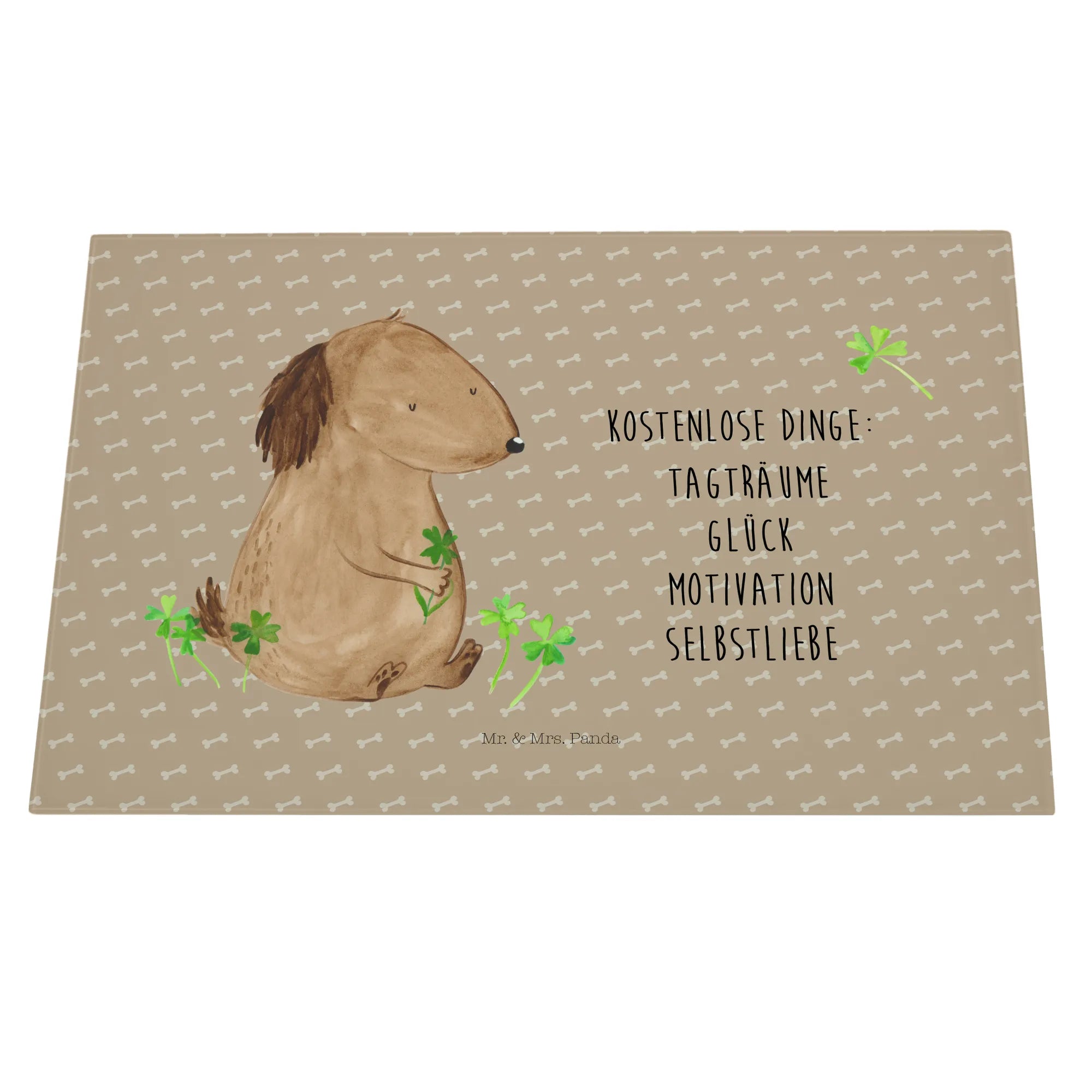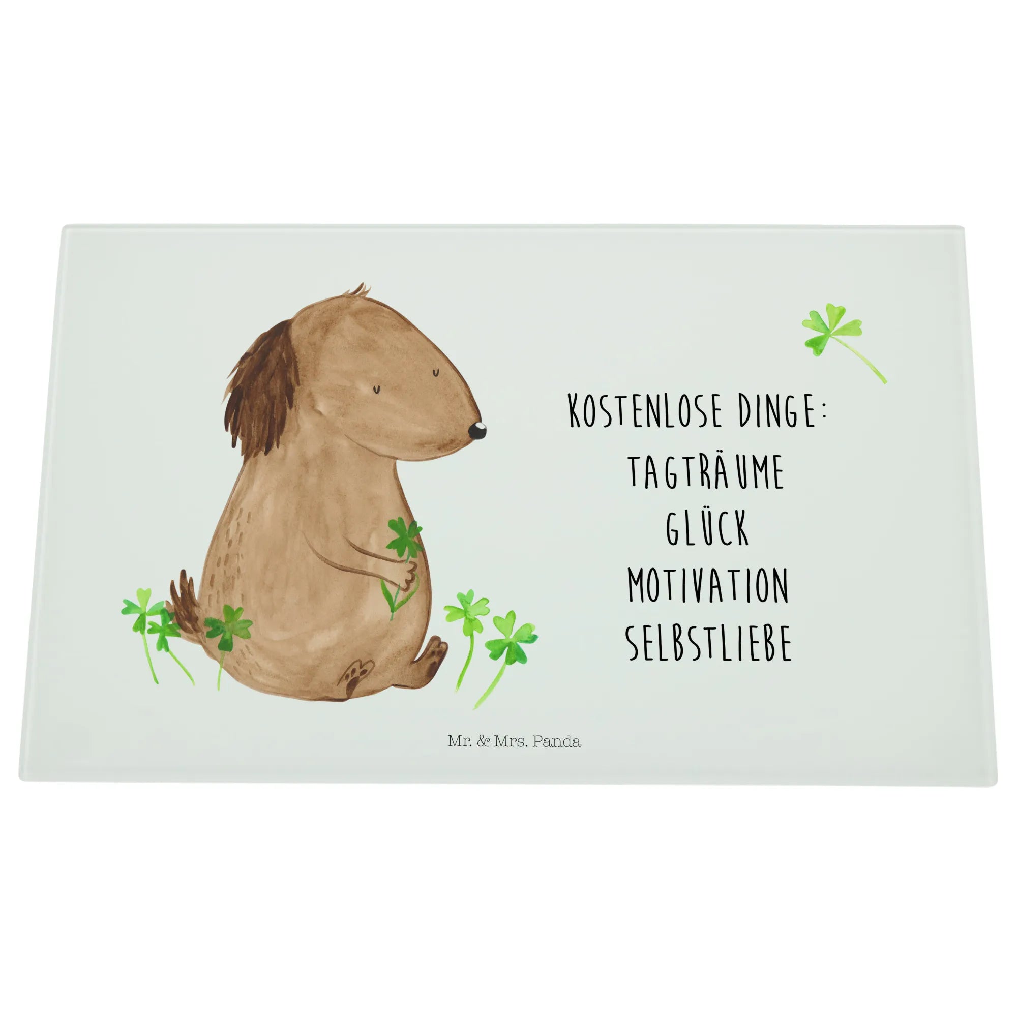 Schneidebrett Aus Glas Hund Kleeblatt - Medium Glas Schneidbrett - mit Spruch - Weiß