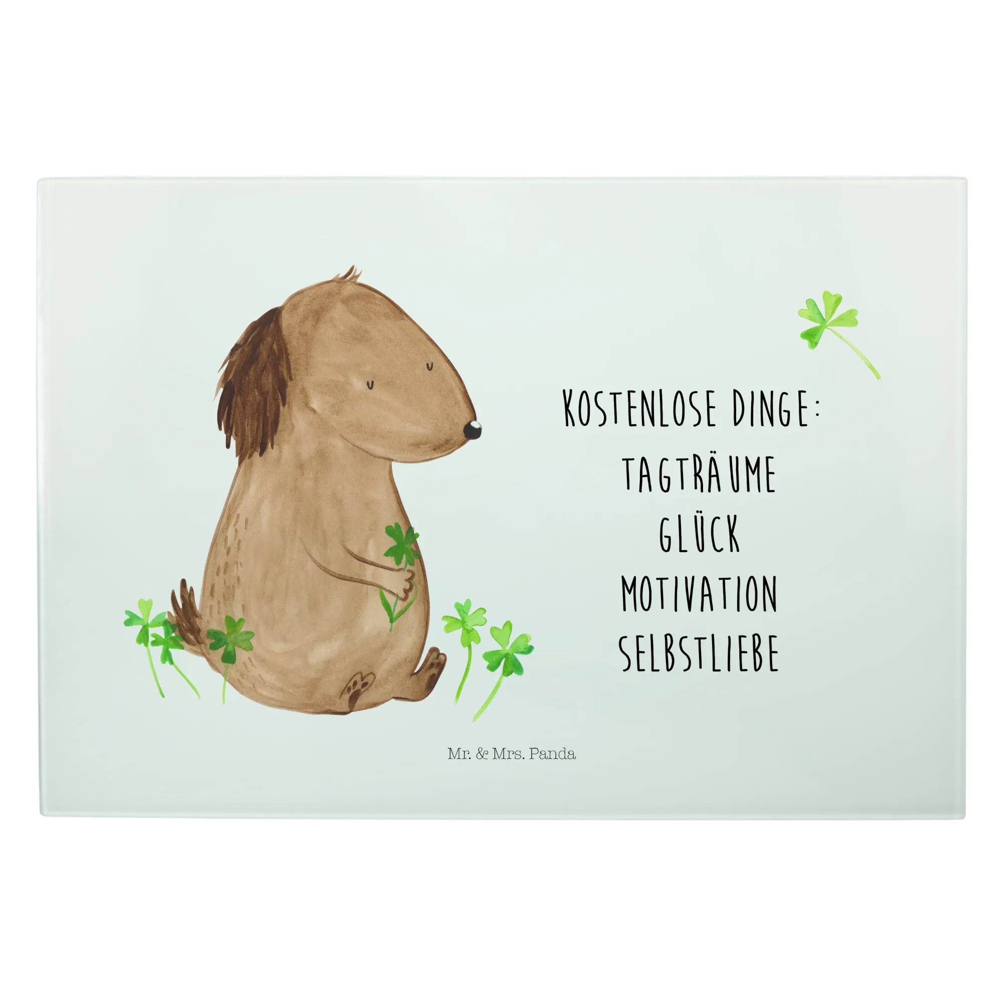 Das Medium Glas Schneidbrett mit dem wunderbaren Hund Kleeblatt Motiv von Mr. & Mrs. Panda ist das perfekte Geschenk für jeden Tierliebhaber und Hundebesitzer. In einer Welt, in der Glück und tagträumerische Momente oft unbezahlbar sind, bringt dieses Schneidbrett genau das in deine Küche.