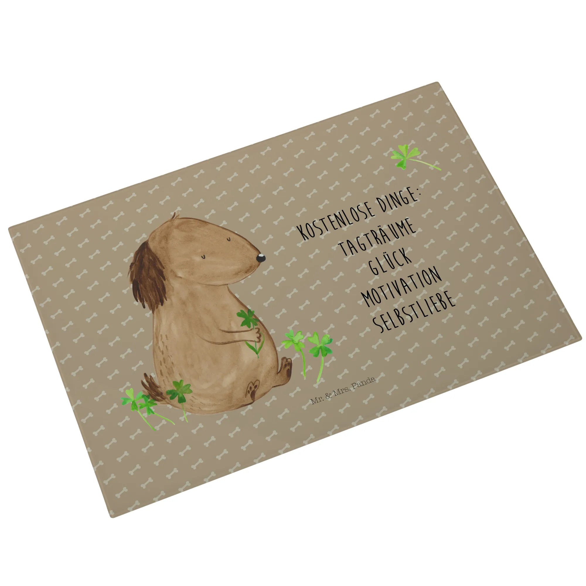 Das XL Glas Schneidbrett mit dem bezaubernden Hund und Kleeblatt-Motiv von Mr. & Mrs. Panda ist die perfekte Geschenkidee für Hundeliebhaber und Freunde von motivierenden Sprüchen. Es bringt Freude und Glück in jede Küche und macht das Zubereiten von Speisen zu einem echten Erlebnis!