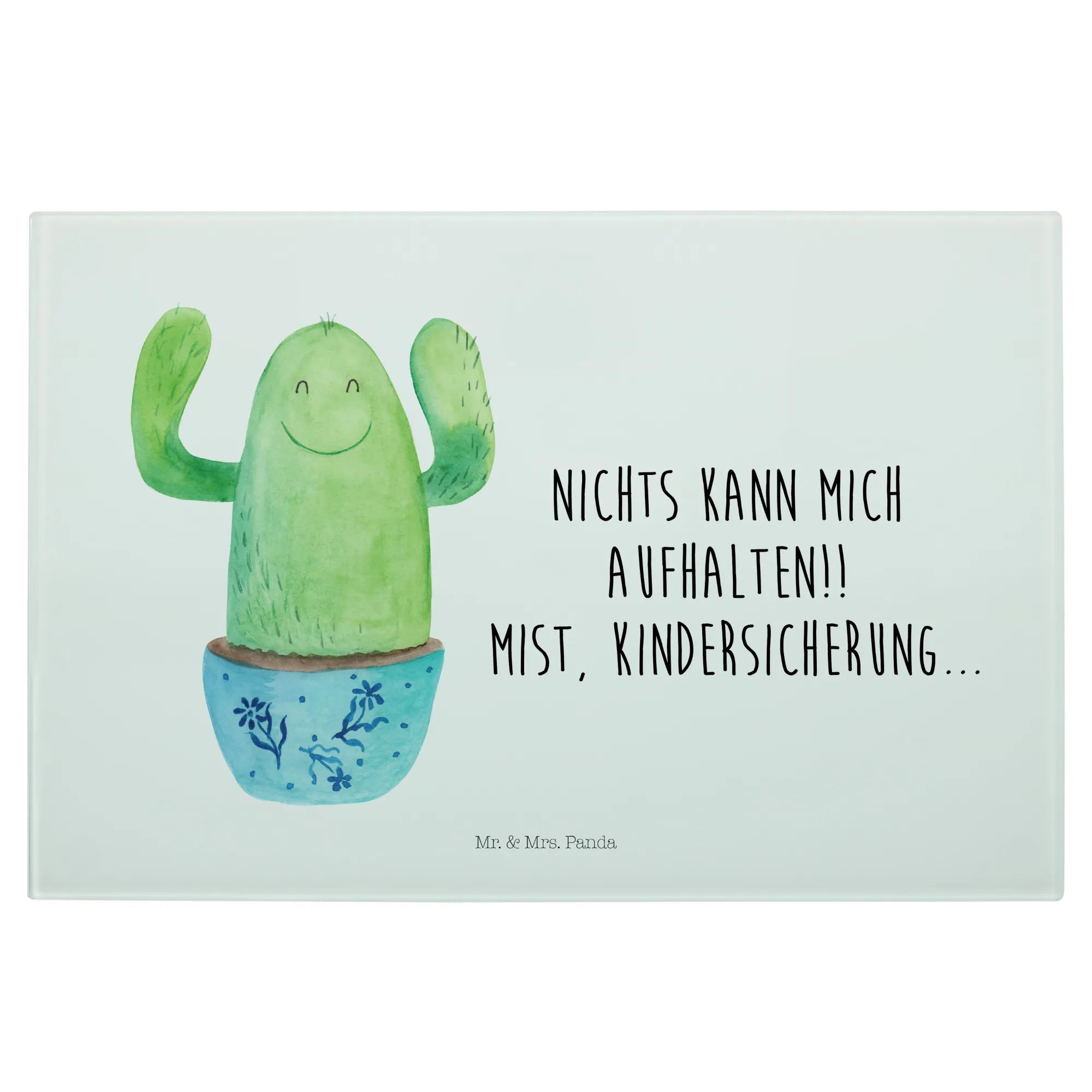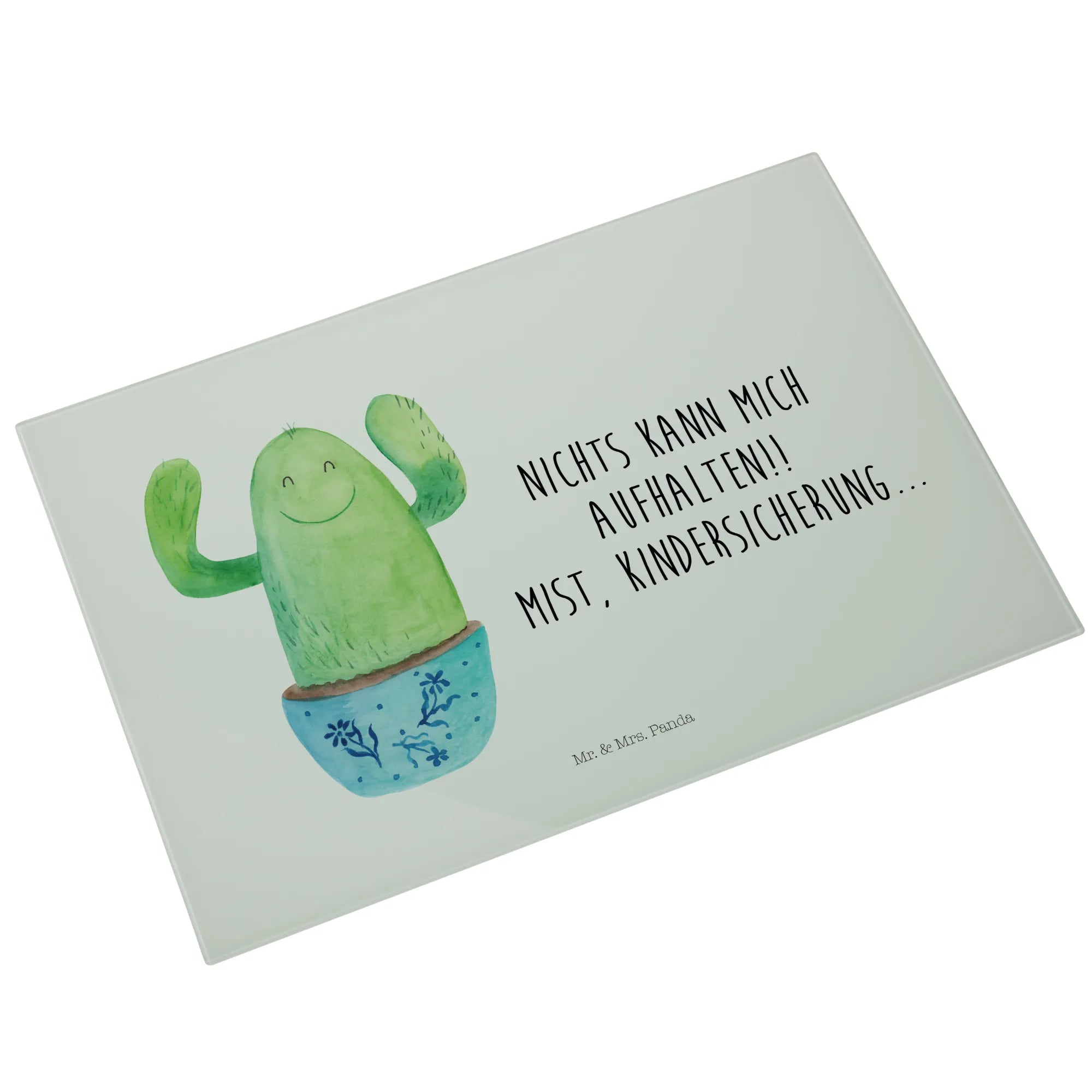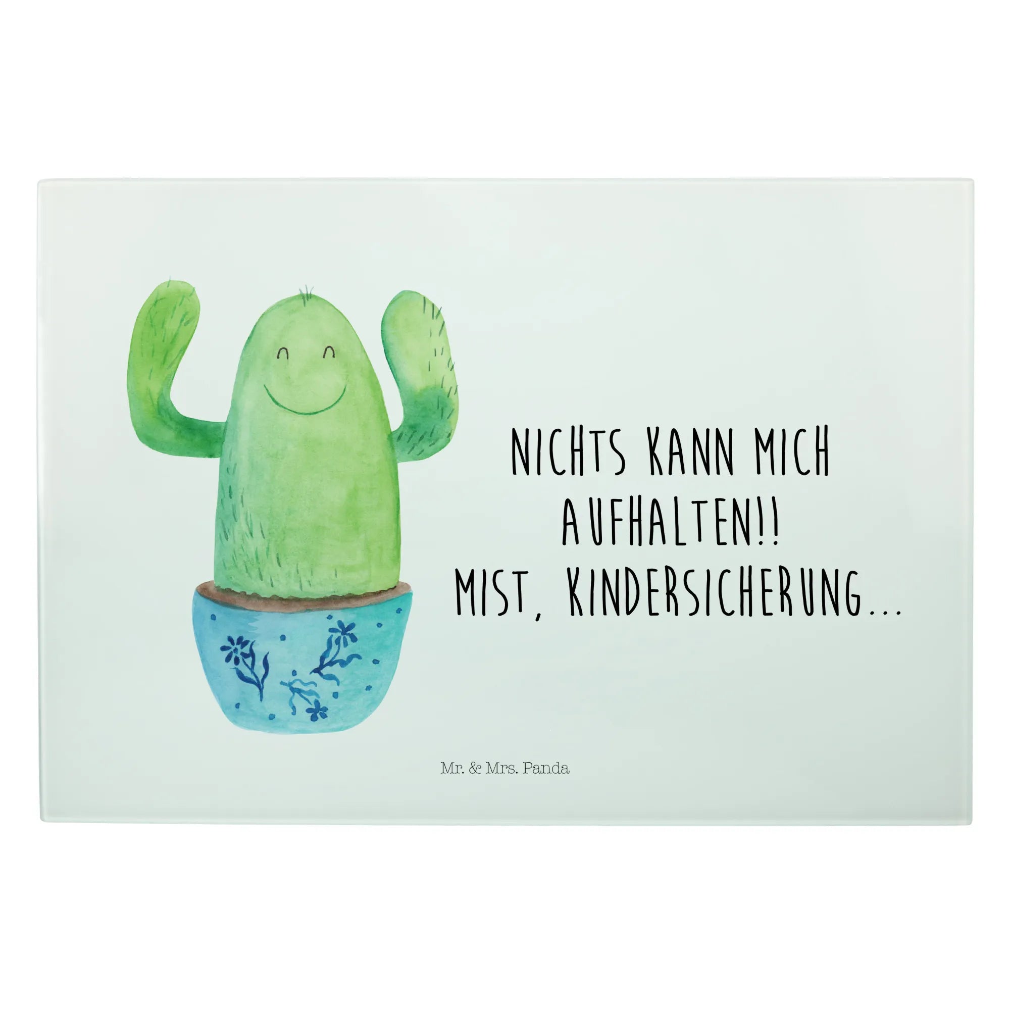 Stell dir vor, du stehst morgens in deiner Küche, die warme Sonne blinzelt durch das Fenster und das Erste, was dir ein Lächeln ins Gesicht zaubert, ist dieser unglaublich fröhliche Kaktus auf deinem XL Glas Schneidbrett von Mr. & Mrs. Panda. 🌵