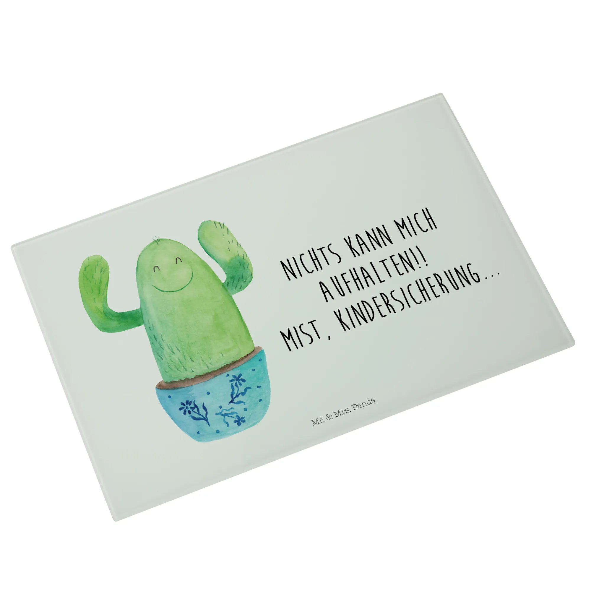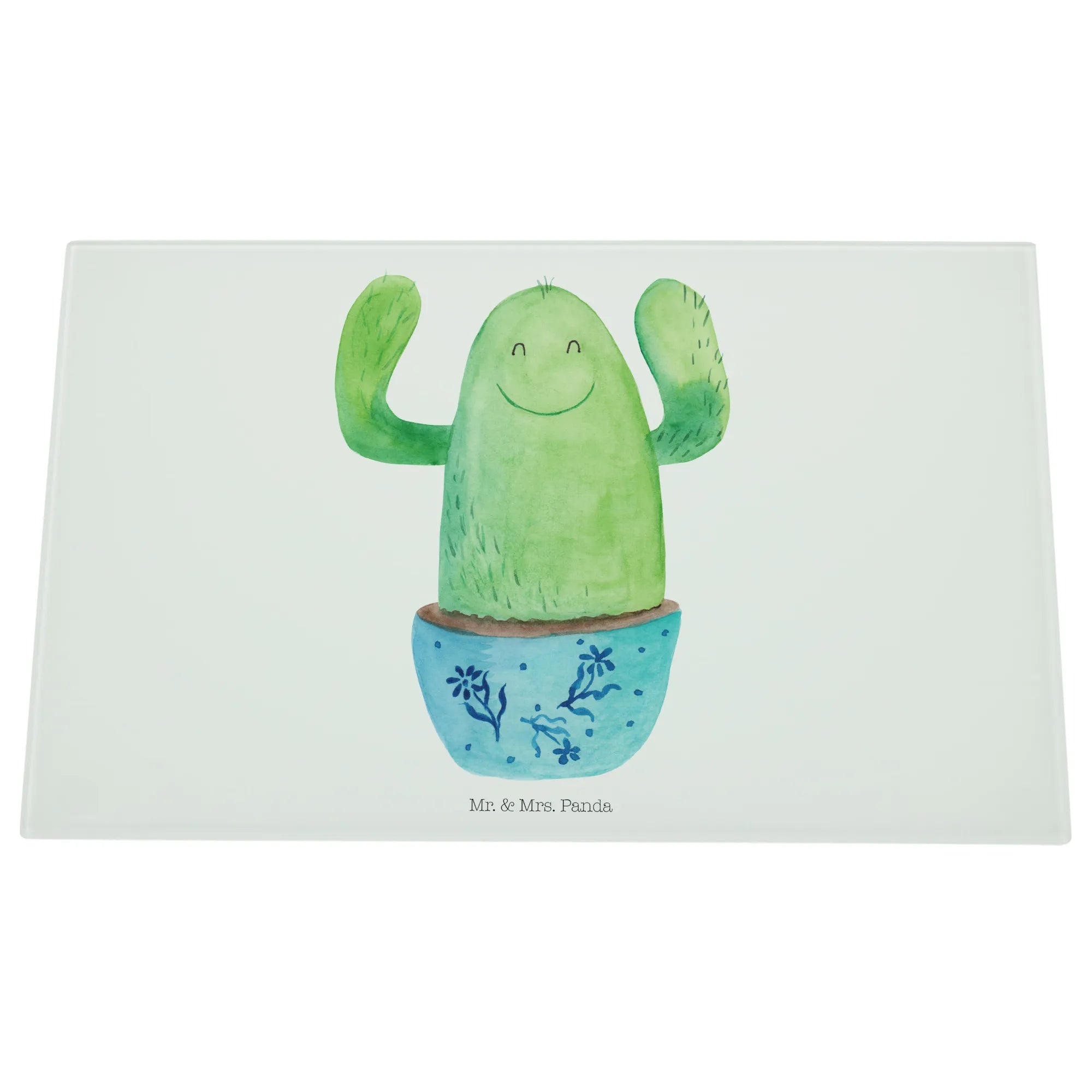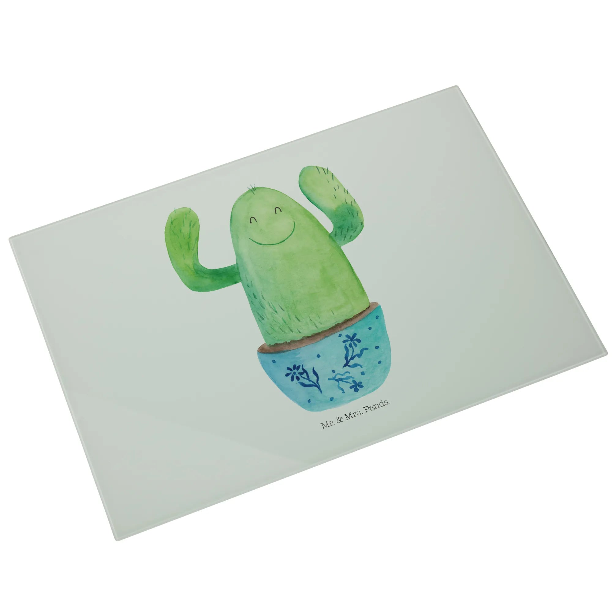 Stell dir vor, du stehst morgens in deiner Küche, die warme Sonne blinzelt durch das Fenster und das Erste, was dir ein Lächeln ins Gesicht zaubert, ist dieser unglaublich fröhliche Kaktus auf deinem XL Glas Schneidbrett von Mr. & Mrs. Panda. 🌵