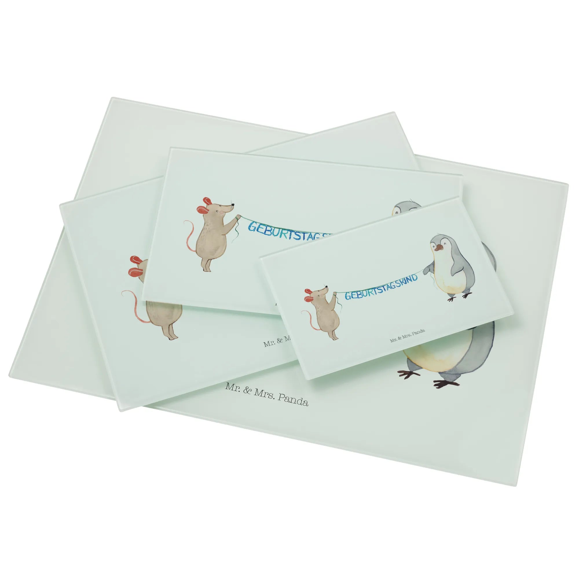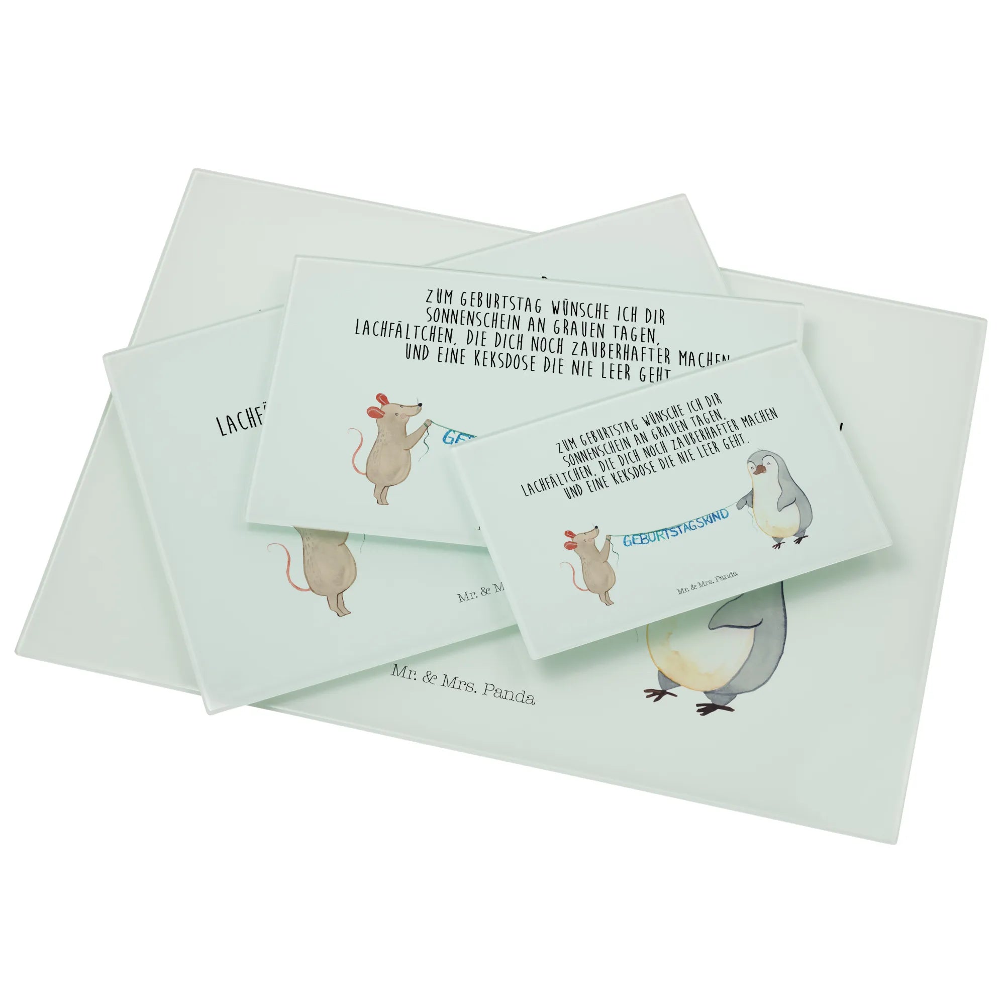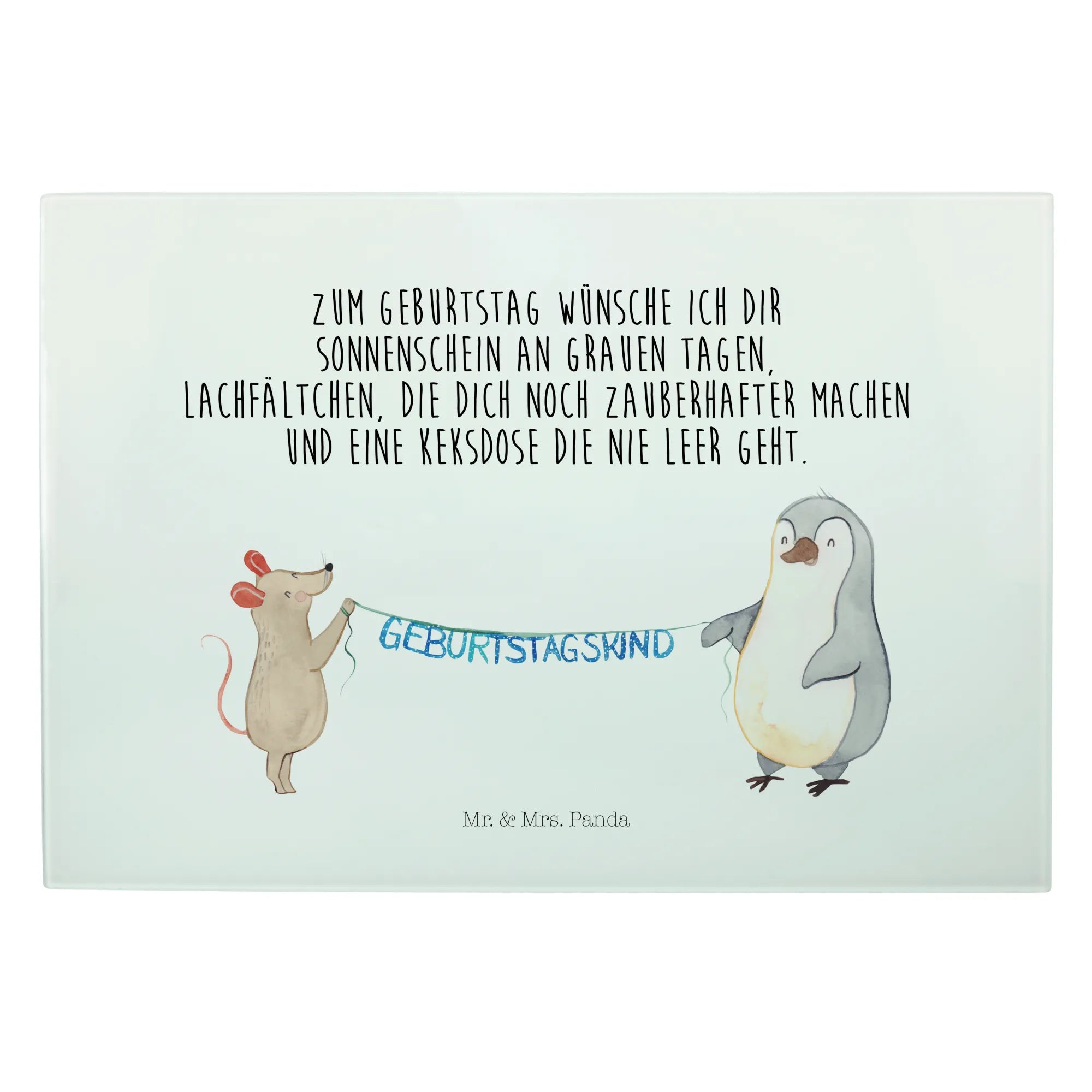 Glasschneidebrett Maus Pinguin Geburtstag - XL Glas Schneidbrett - mit Spruch
