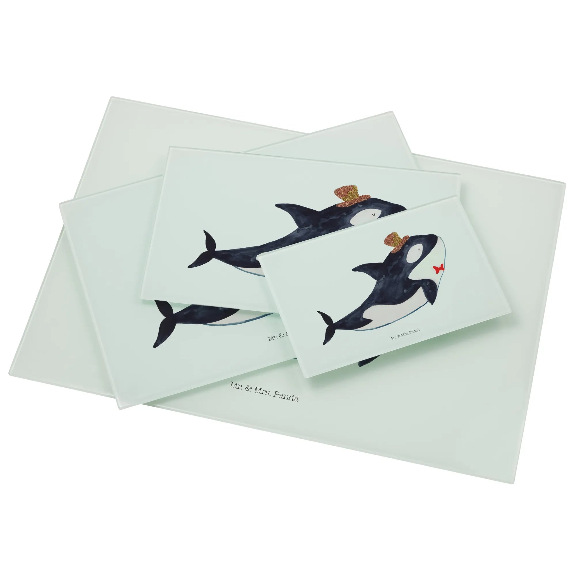 Das XL Glas Schneidbrett Orca Zylinder von Mr. & Mrs. Panda ist das perfekte Küchenaccessoire für alle Meerestiere-Fans! Mit seinem bezaubernden Motiv eines liebevollen Orcas, der einen Zylinder trägt, bringt es nicht nur Freude in die Küche, sondern ist auch ein stylisches Statement.