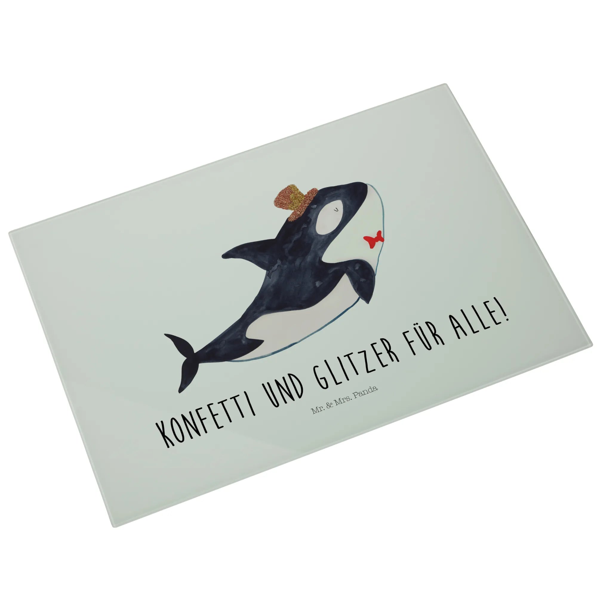 Mit dem Slogan "Konfetti und Glitzer für alle!" erlebst du nicht nur beim Kochen, sondern auch beim Verschenken des Schneidbretts strahlende Gesichter. Die Meerestiere Kollektion von Mr. & Mrs. Panda, zu der auch der Orca gehört, bringt die Freude des Ozeans in dein Zuhause und eignet sich perfekt für Meerestiere-Fans jeden Alters.