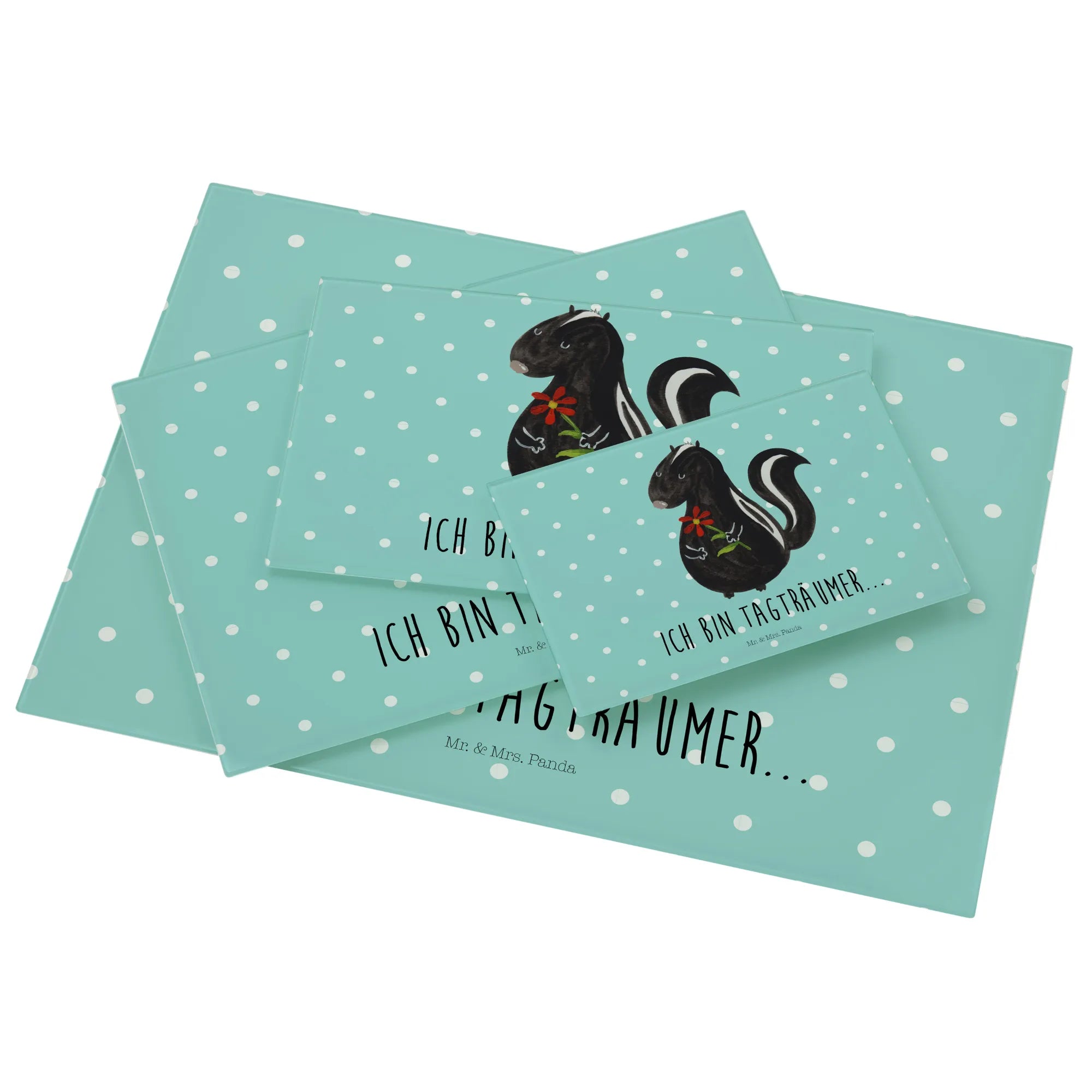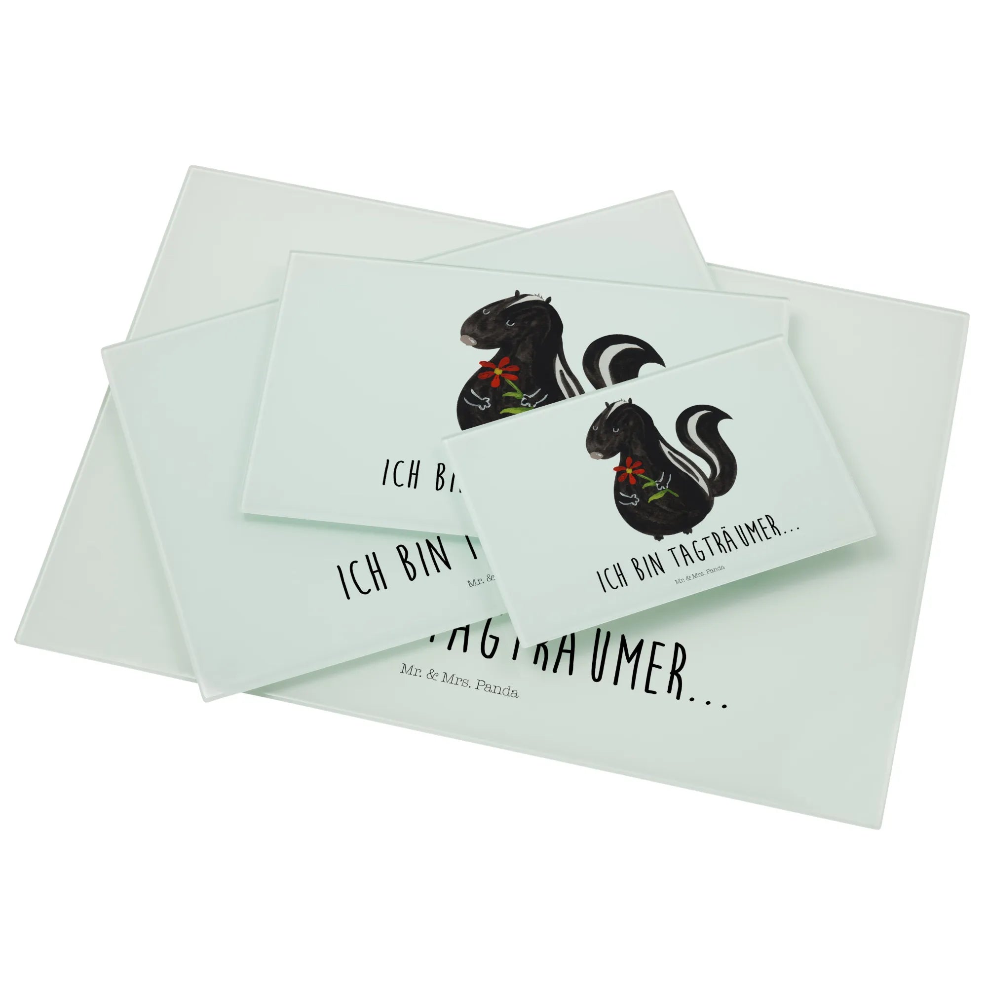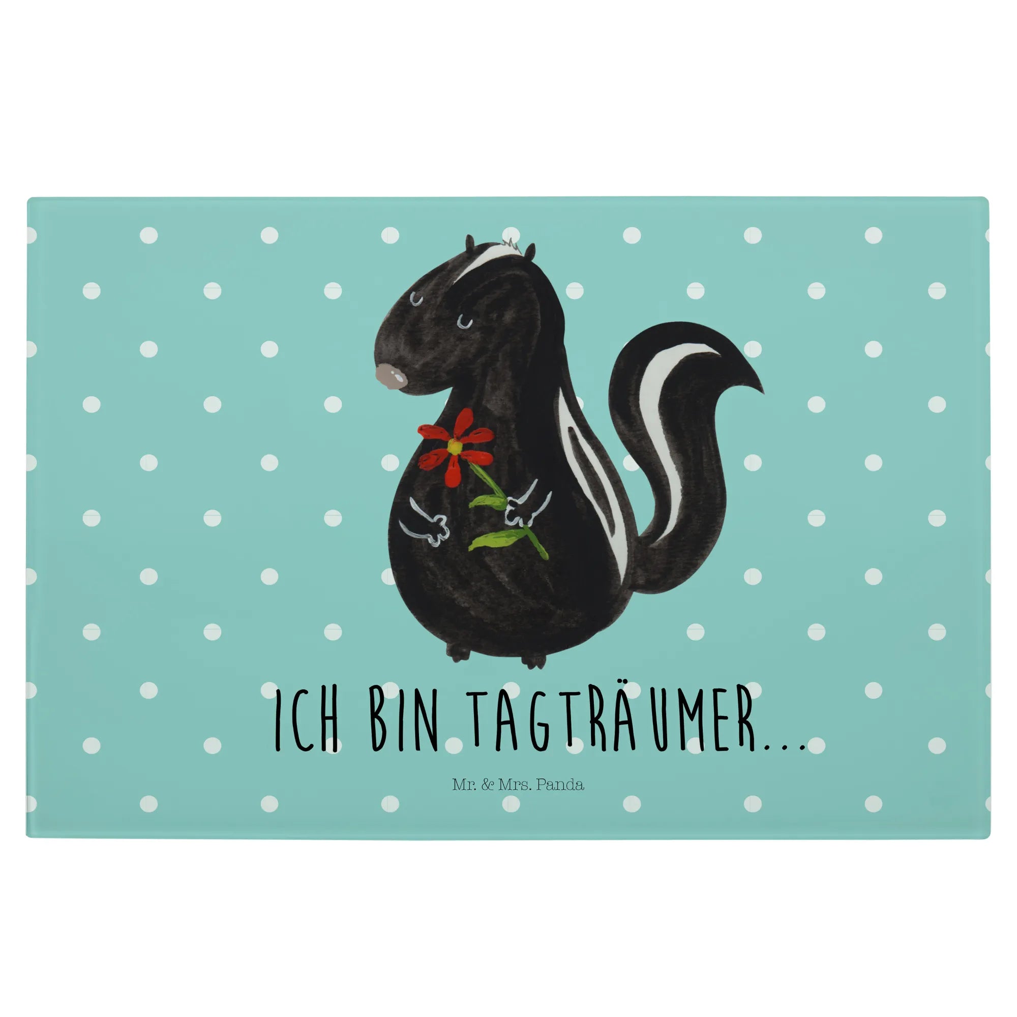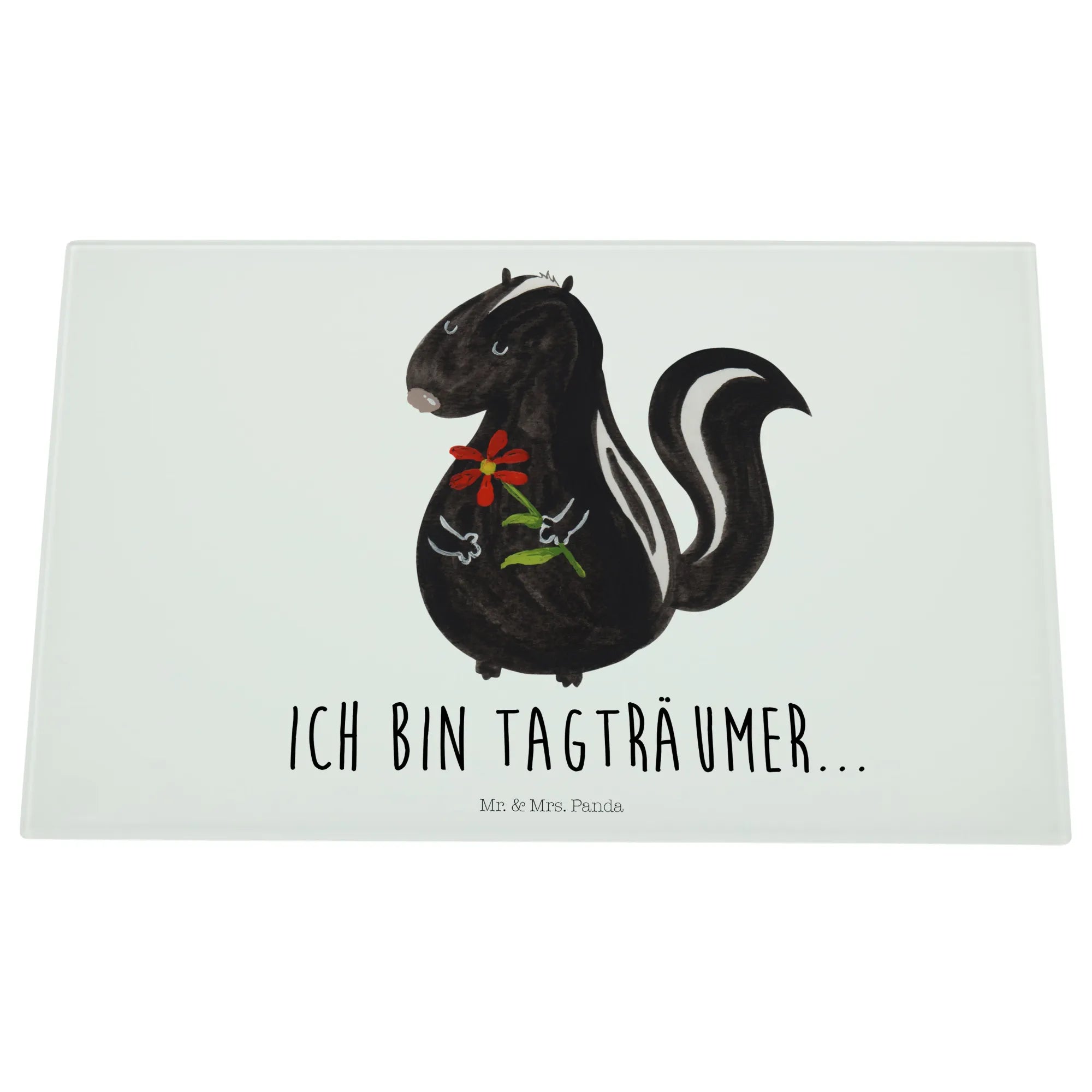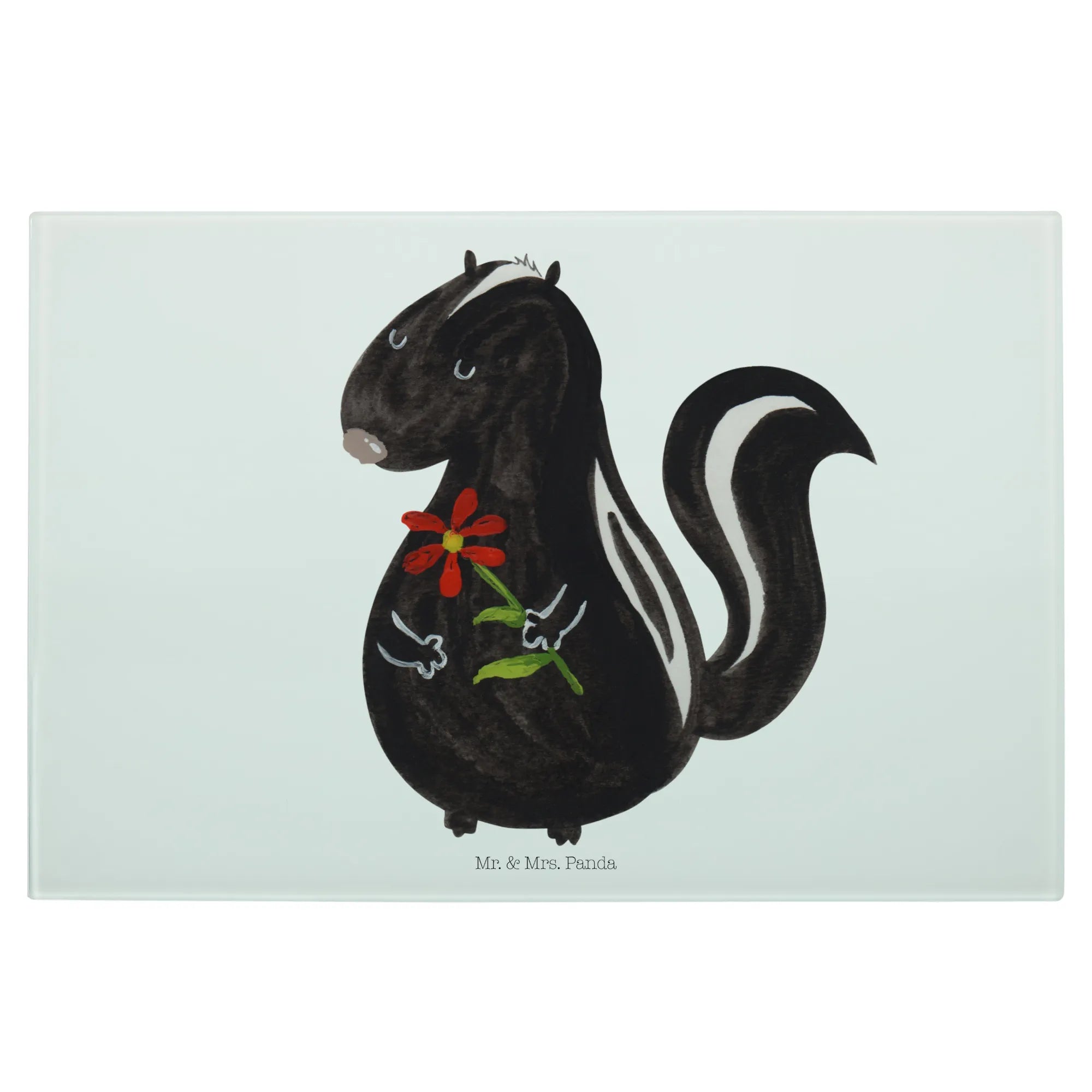 Entdecke das zauberhafte Medium Glas Schneidbrett mit dem wunderschönen Stinktier Blume Motiv aus der exklusiven Stinktier-Kollektion von Mr. & Mrs. Panda! Dieses Schneidebrett ist nicht nur praktisch, sondern auch ein echter Blickfang in deiner Küche.