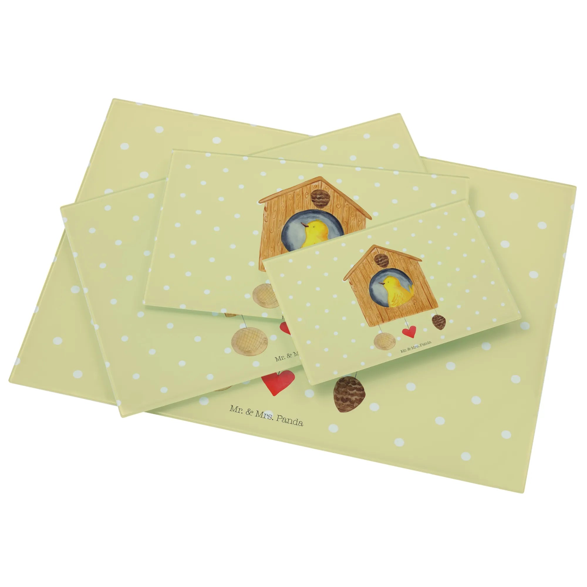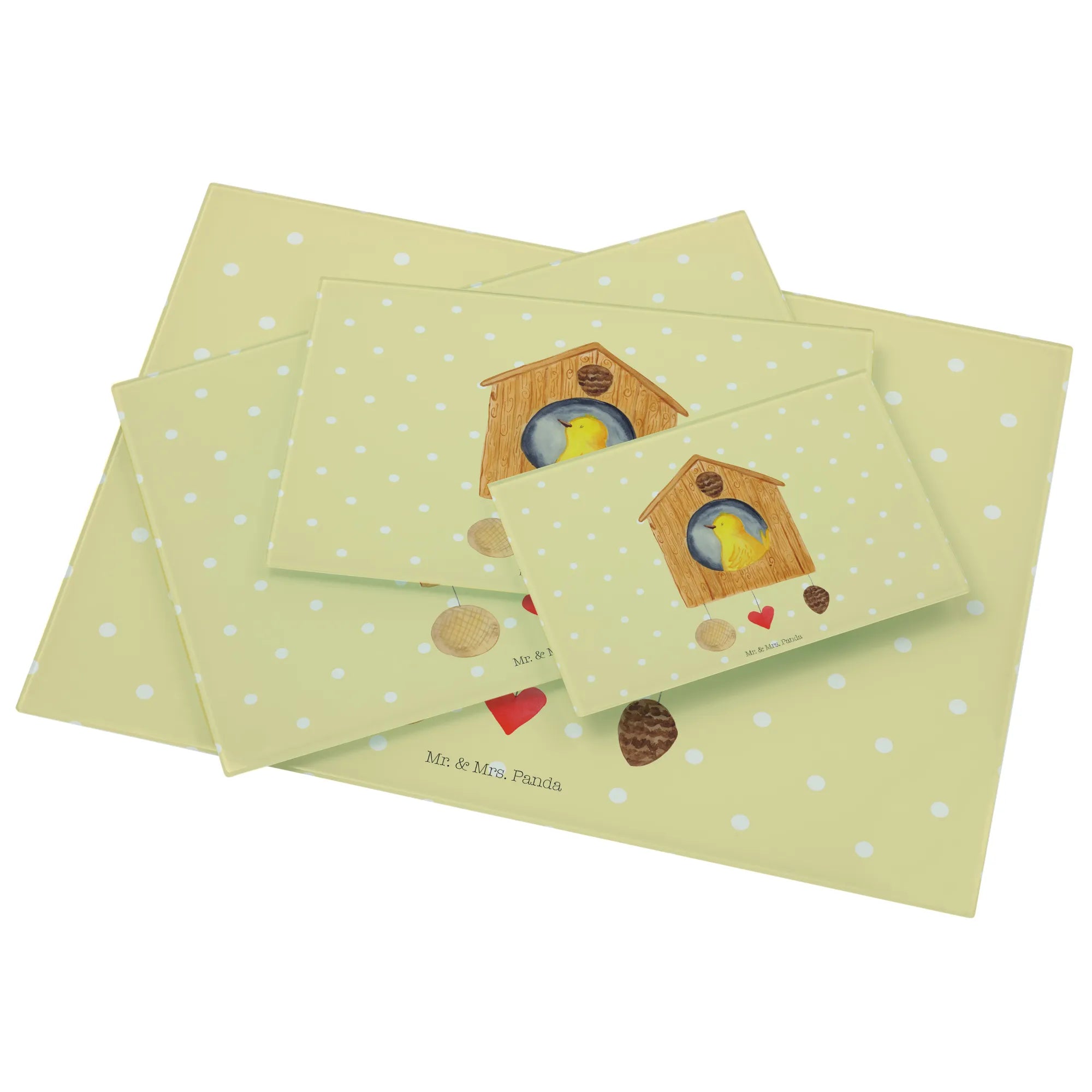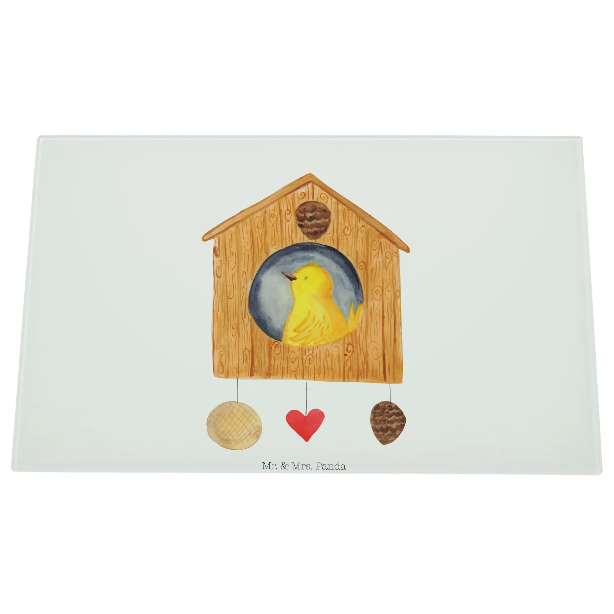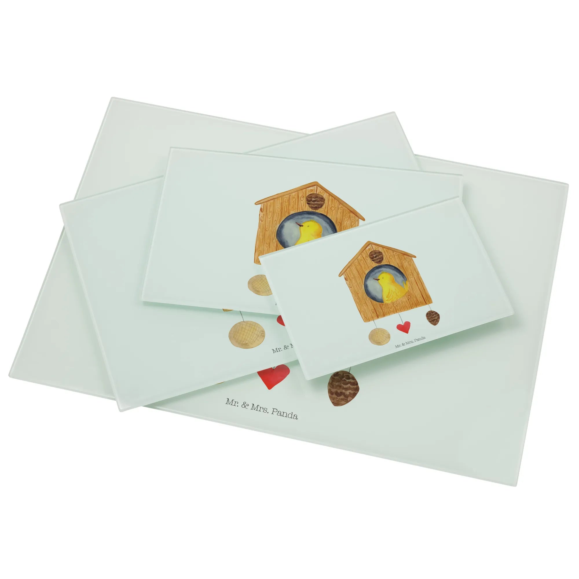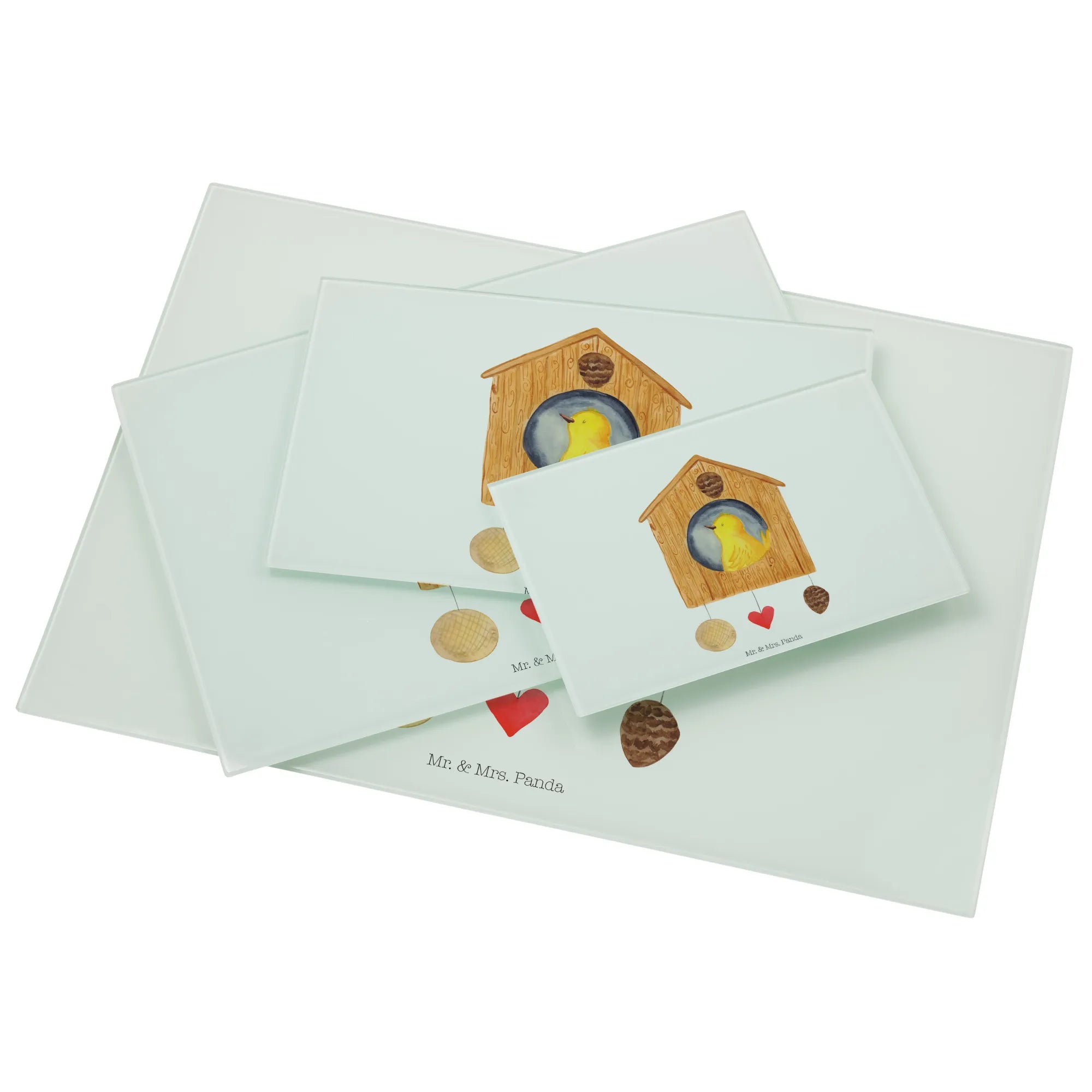 Entdecke unser XL Glas Schneidbrett mit dem zauberhaften Motiv Vogelhaus aus der Small World Kollektion von Mr. & Mrs. Panda!