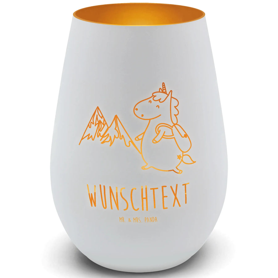 Gold Windlicht Personalisiert Einhorn Bergsteiger - Weiß