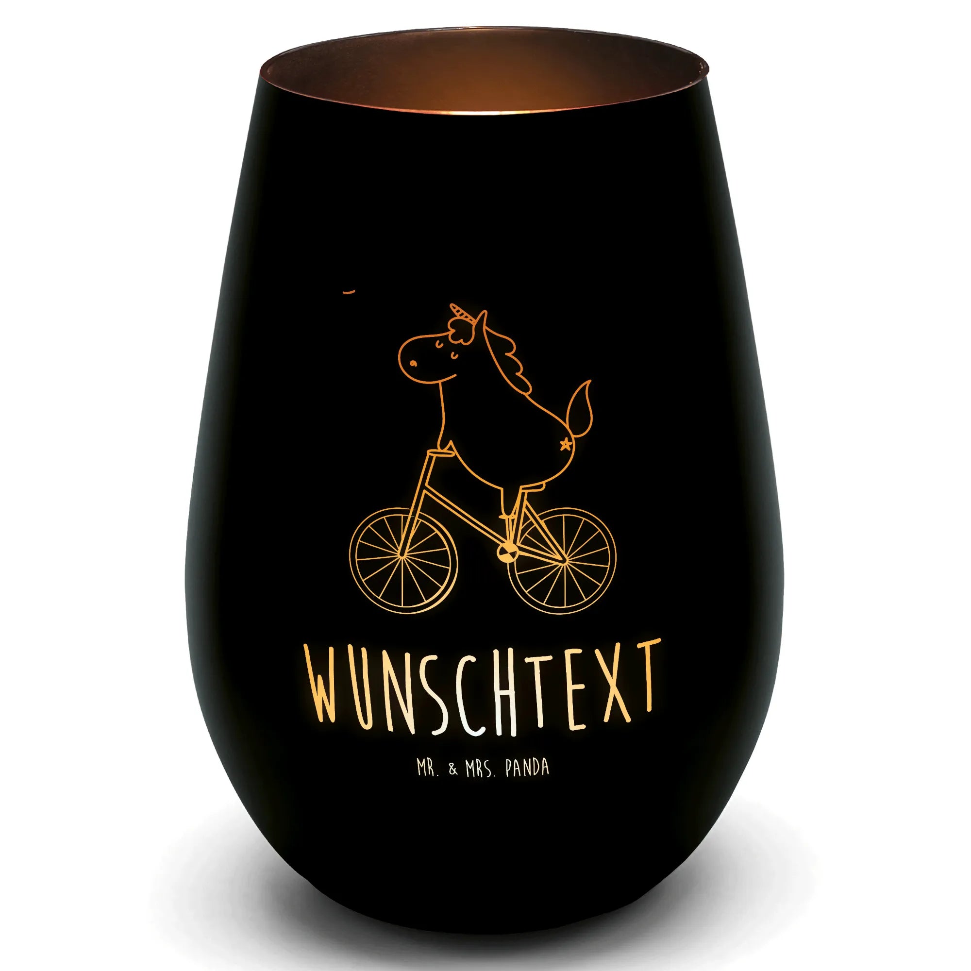 Gold Windlicht Personalisiert Einhorn Radfahrer - Weiß