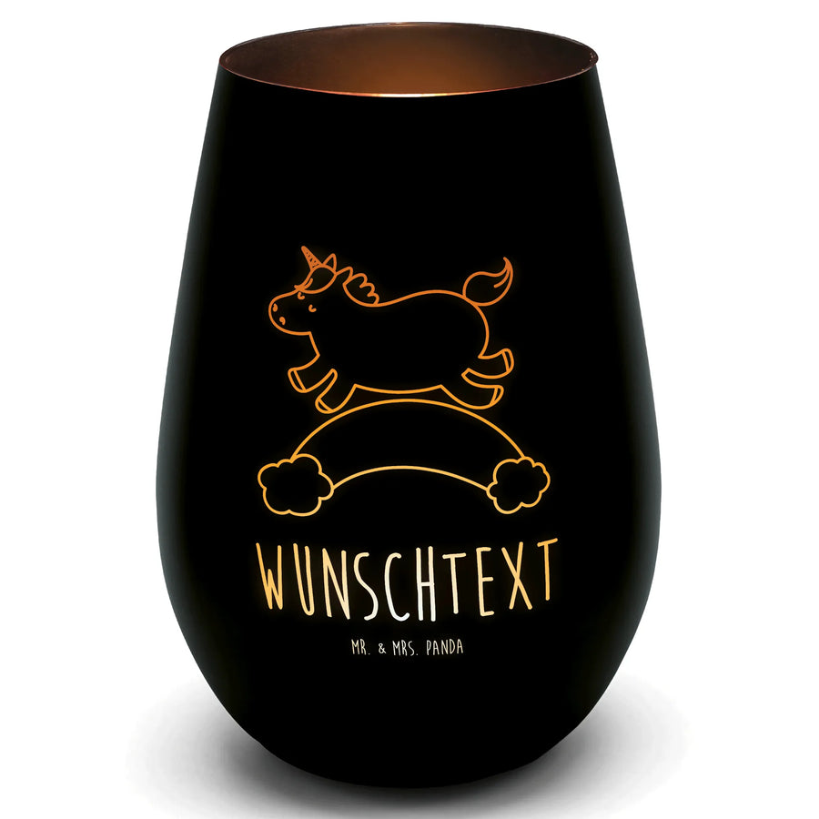 Gold Windlicht Personalisiert Einhorn Regenbogen - Schwarz