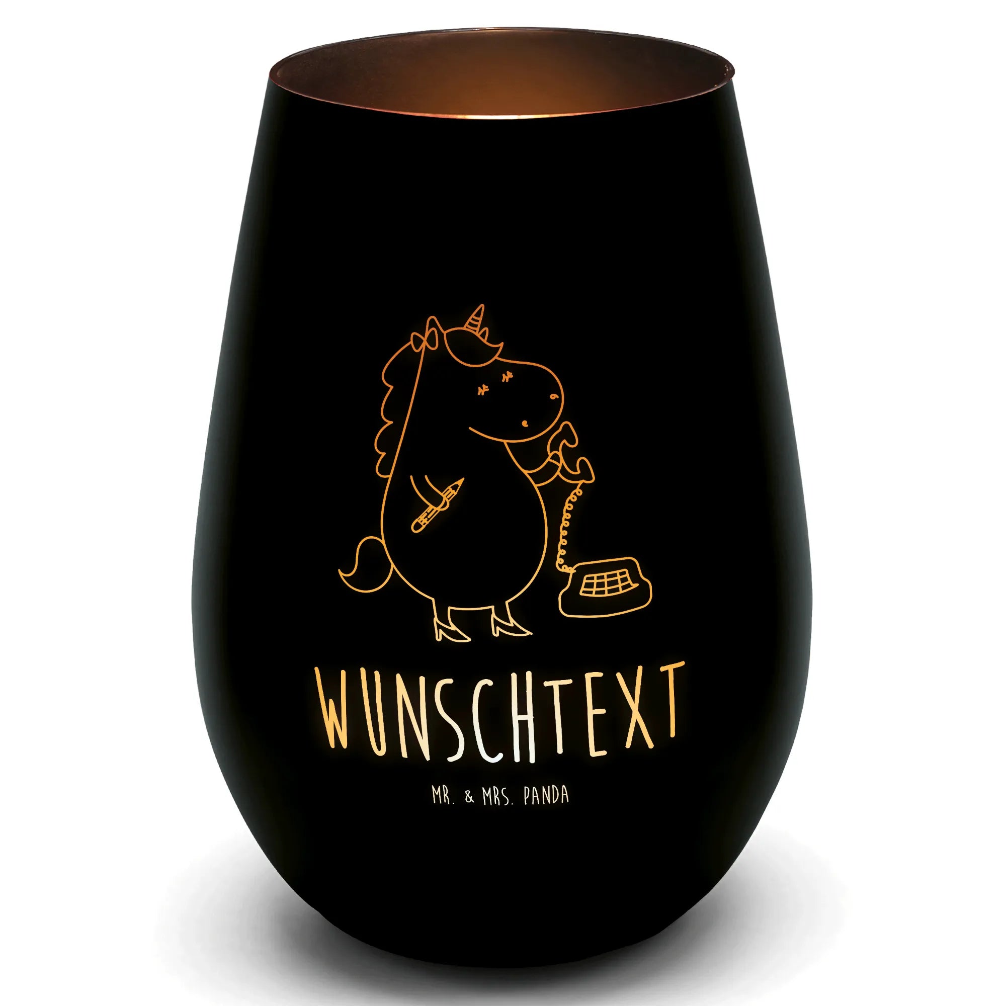 Entdecke unser zauberhaftes Gold Windlicht Personalisiert mit dem wundervollen Motiv "Einhorn Sekretärin" aus der einzigartigen Einhorn-Kollektion von Mr. & Mrs. Panda!