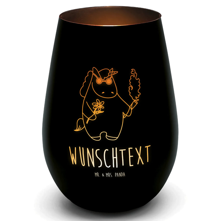 Gold Windlicht Personalisiert Einhorn Woodstock - Schwarz