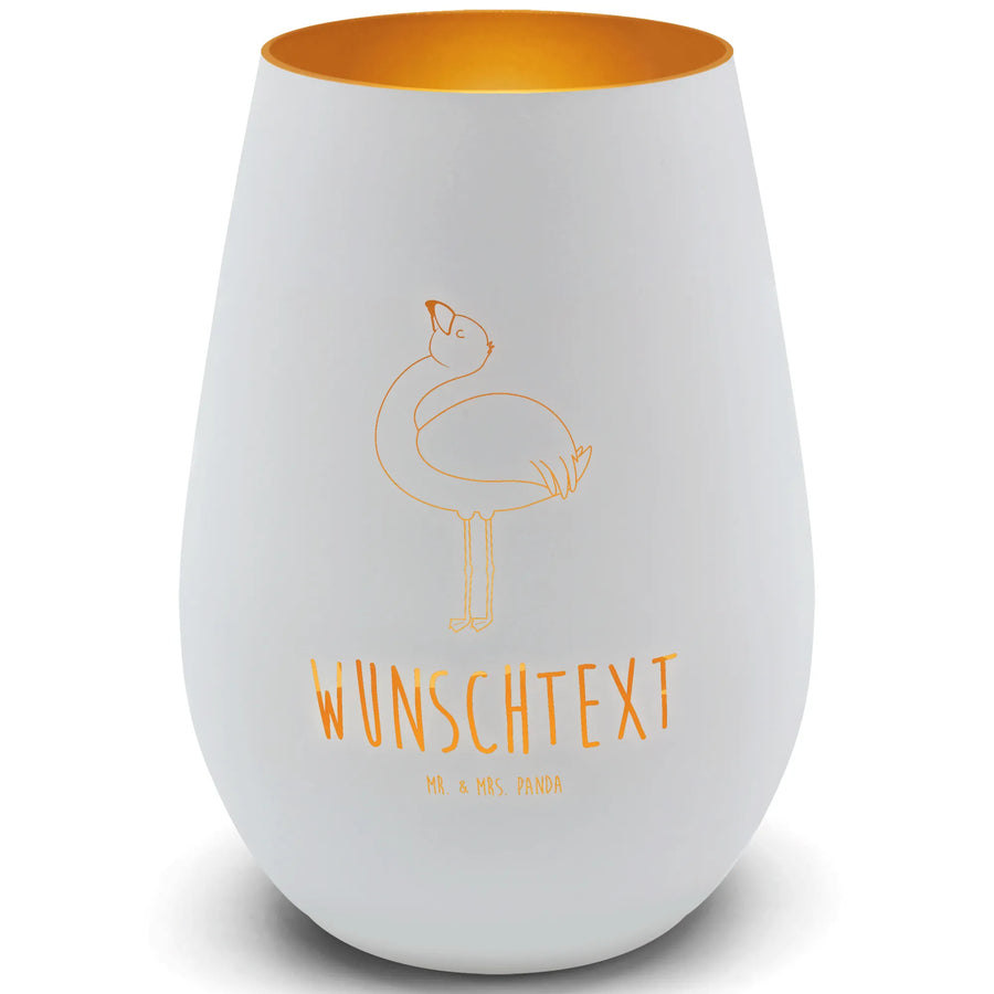 Gold Windlicht Personalisiert Flamingo Stolz - Weiß