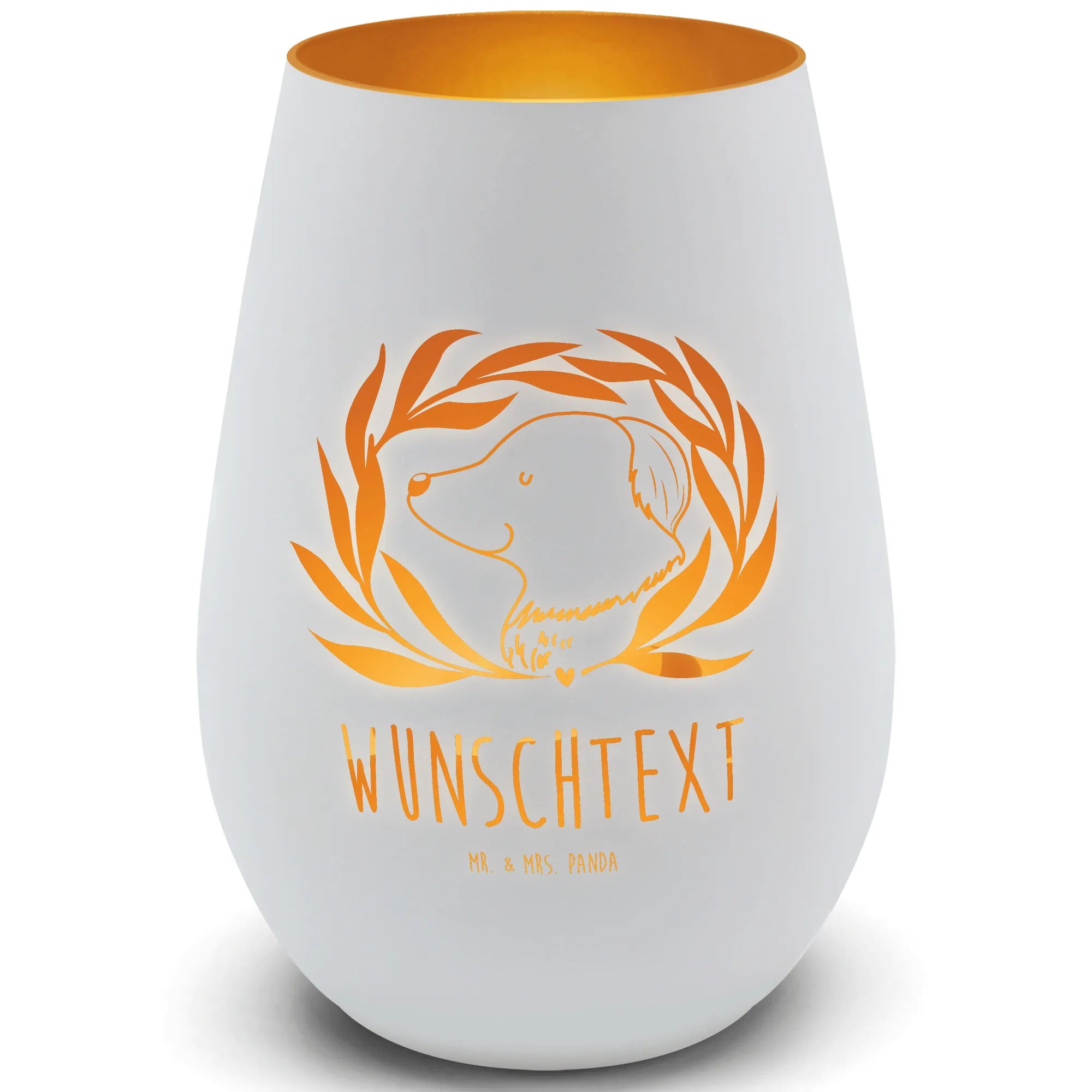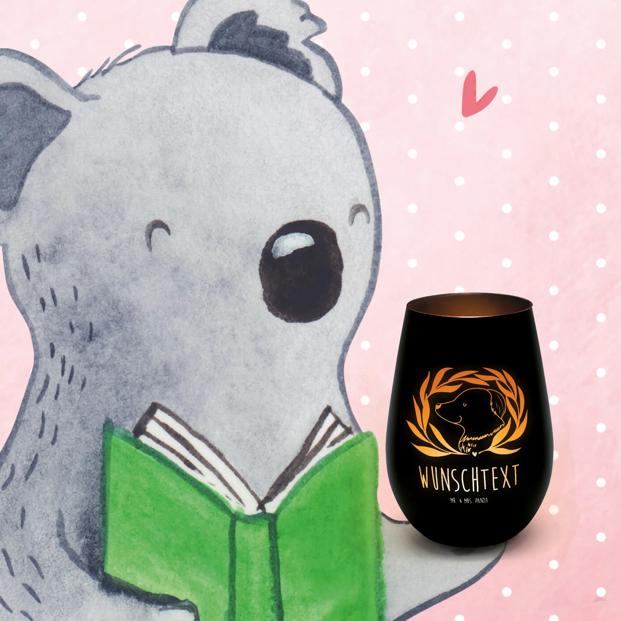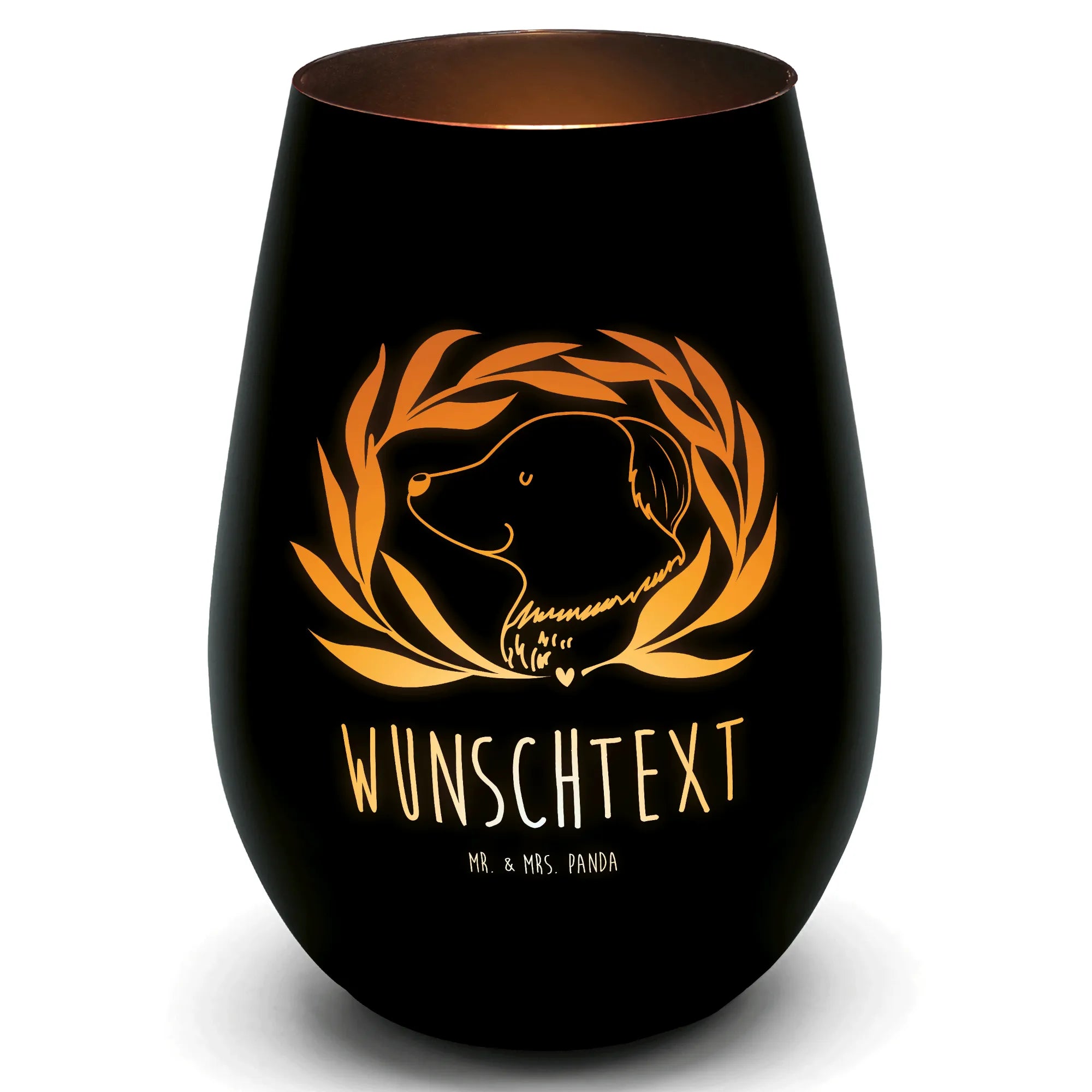 Gold Windlicht Personalisiert Hund Blumen - Schwarz