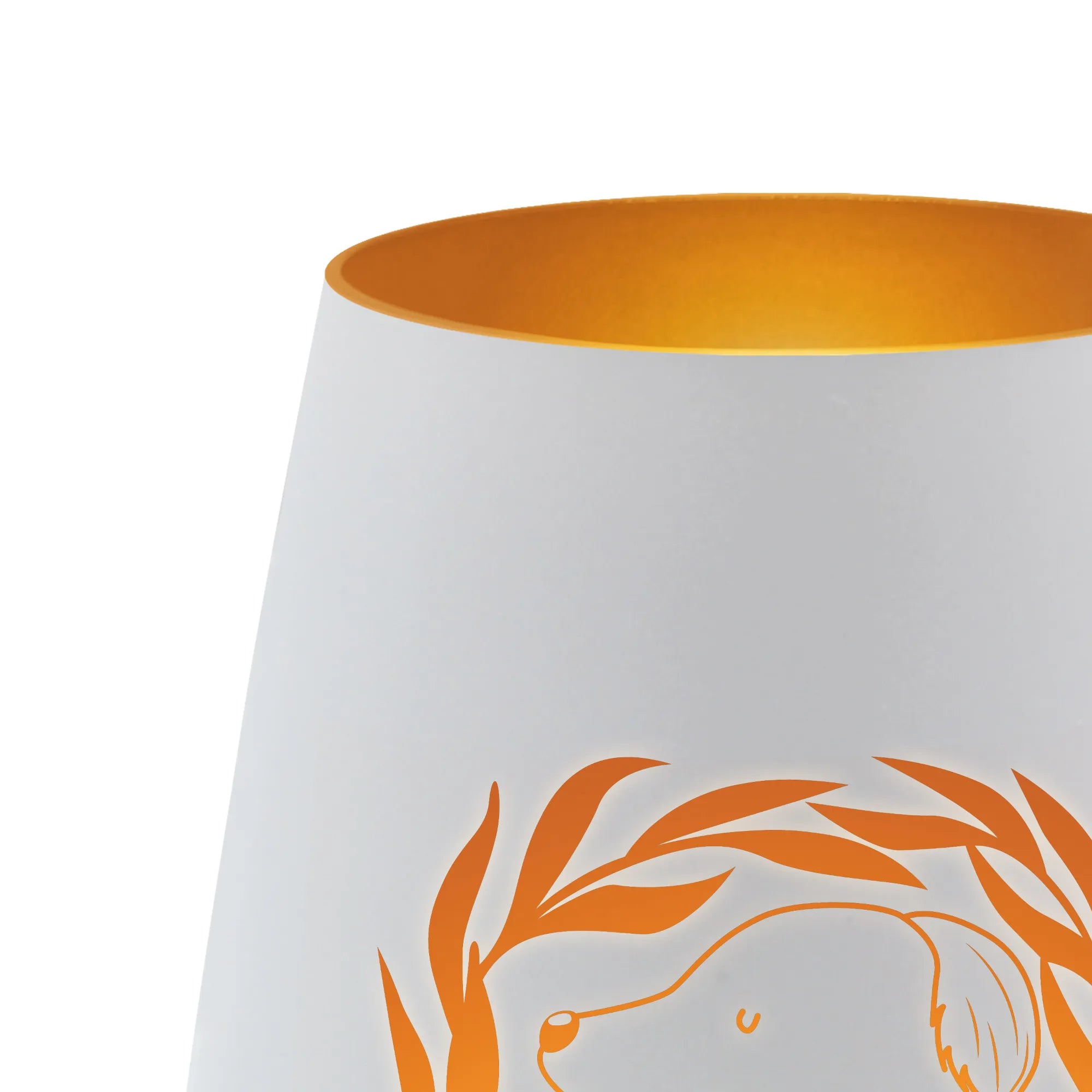 Das goldene Windlicht von Mr. & Mrs. Panda mit dem liebevollen Hundemotiv und der Ranke ist das perfekte Geschenk für alle Tierliebhaber und Hundebesitzer.