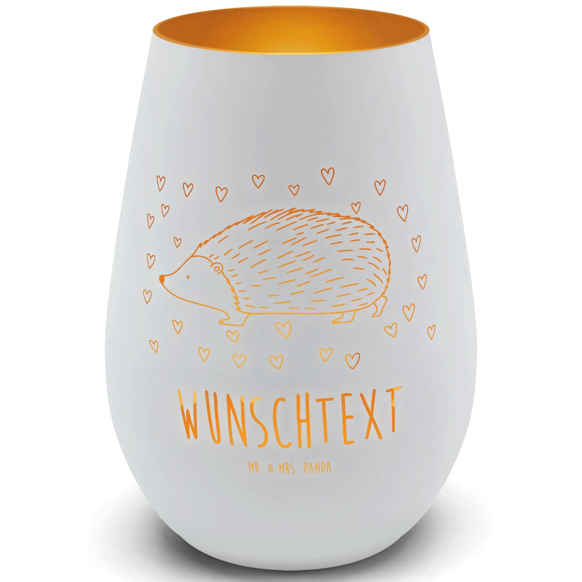 Gold Windlicht Personalisiert Igel Herzen – Mr. & Mrs. Panda