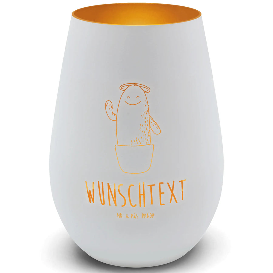 Gold Windlicht Personalisiert Kaktus Heilig - Weiß