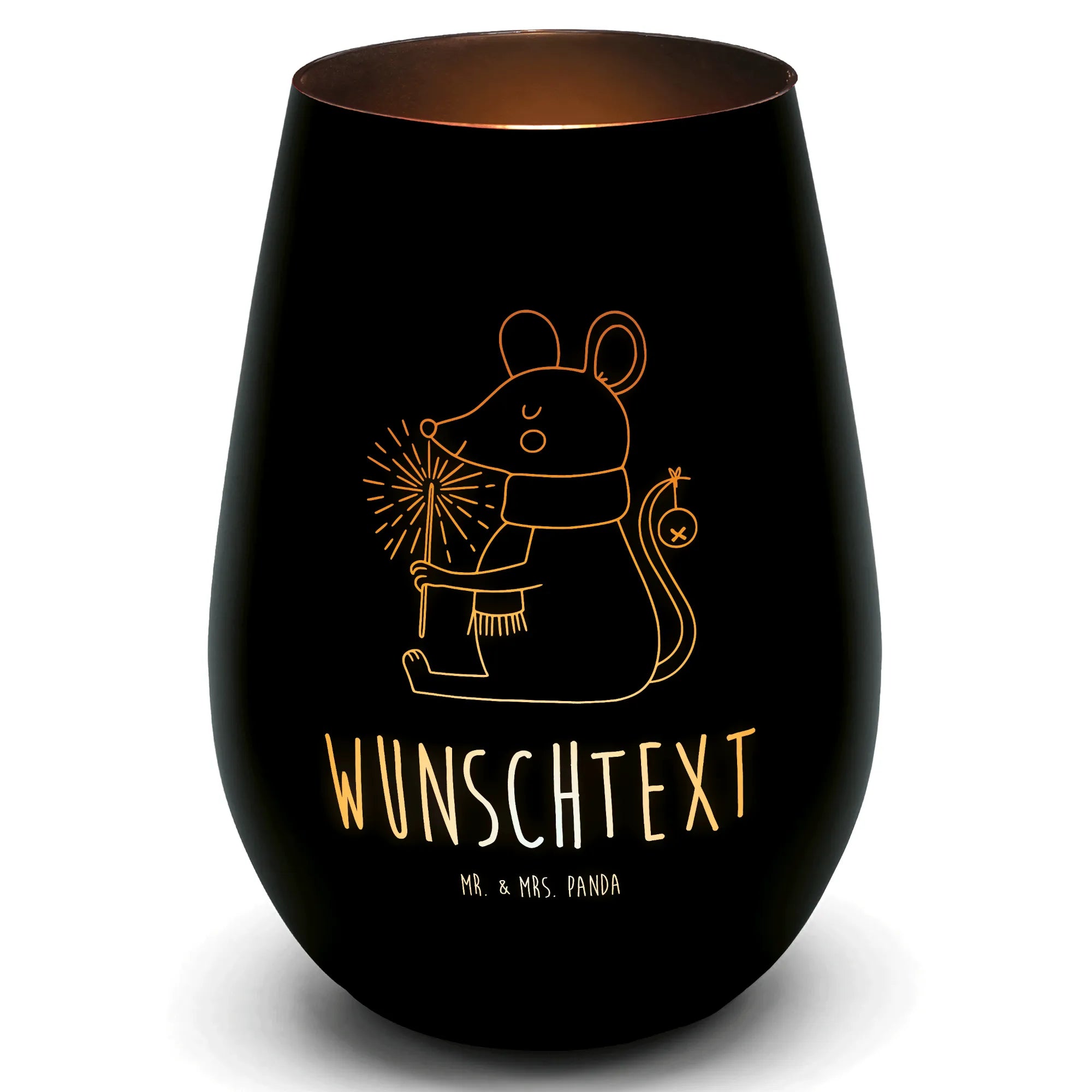 Das personalisierte Gold Windlicht von Mr. & Mrs. Panda bringt Wärme und Stil in jedes Zuhause. Mit einer Höhe von 120 mm und einem Durchmesser von 85 mm ist es perfekt für deine Teelichter. Das hochwertige Glas, das sowohl innen als auch außen lackiert ist, sorgt nicht nur für ein schönes Design, sondern schützt auch die Flamme vor Wind. Personalisiere das Windlicht mit deinem eigenen Namen oder einem besonderen Spruch und mache es zu einem einmaligen Geschenk für Freunde, Familie oder für dich selbst! Erlebe die warmen und romantischen Momente, die dieses Windlicht in deine Umgebung bringt. Es ist hitzebeständig und damit ideal für den Einsatz in verschiedenen Umgebungen. Die durch Erhitzung sichtbaren Motive von Mr. & Mrs. Panda verleihen dem Windlicht einen besonderen Charme. Denke daran, dass das Windlicht sanft von Hand gewaschen werden sollte, kann aber auch in der Spülmaschine gereinigt werden. Ein Teelicht ist im Lieferumfang enthalten, um sofort dein Zuhause gemütlich zu gestalten.