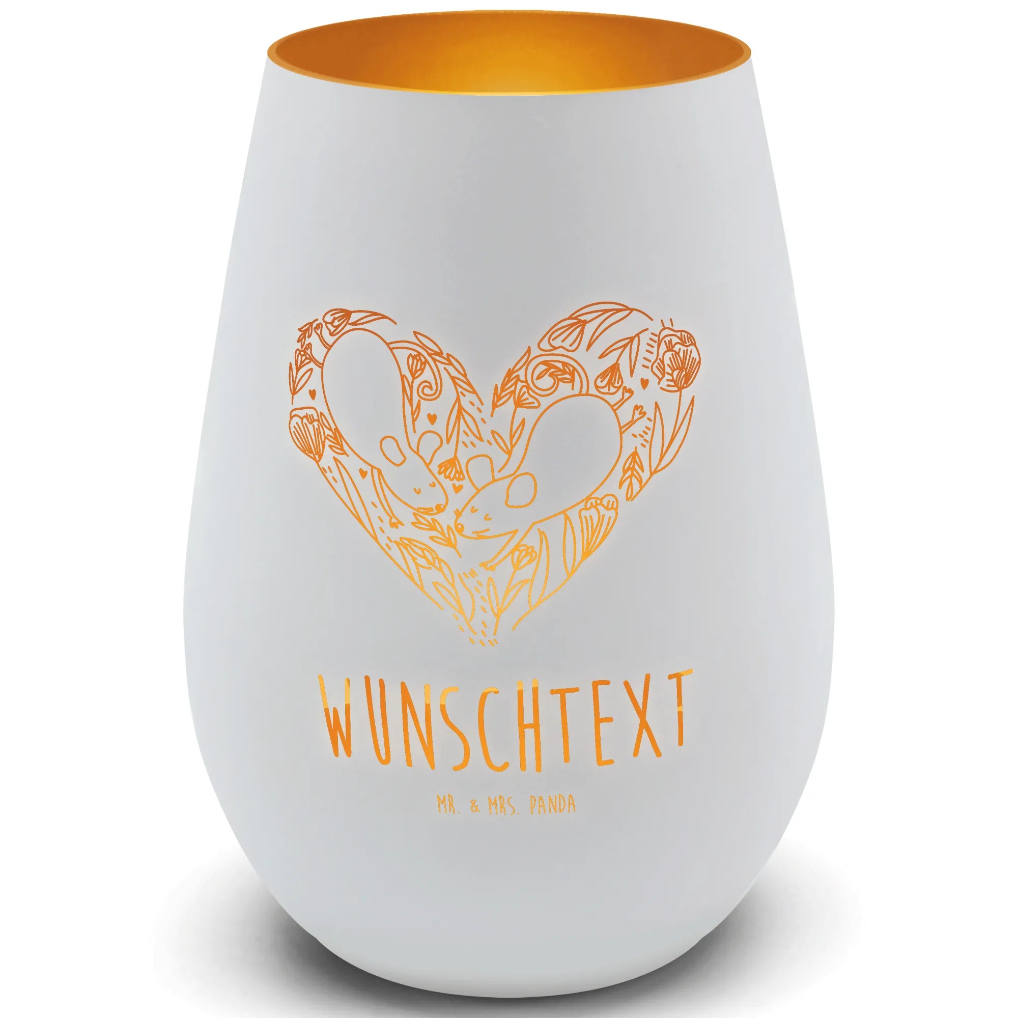 Das Gold Windlicht Personalisiert mit dem zauberhaften Mäuse Herz Motiv von Mr. & Mrs. Panda ist das perfekte Geschenk für jeden Anlass, bei dem die Liebe gefeiert wird. Egal, ob für den Jahrestag, die Verlobung oder einen besonderen Hochzeitstag, dieses wunderschöne Windlicht bringt die Herzen zusammen.