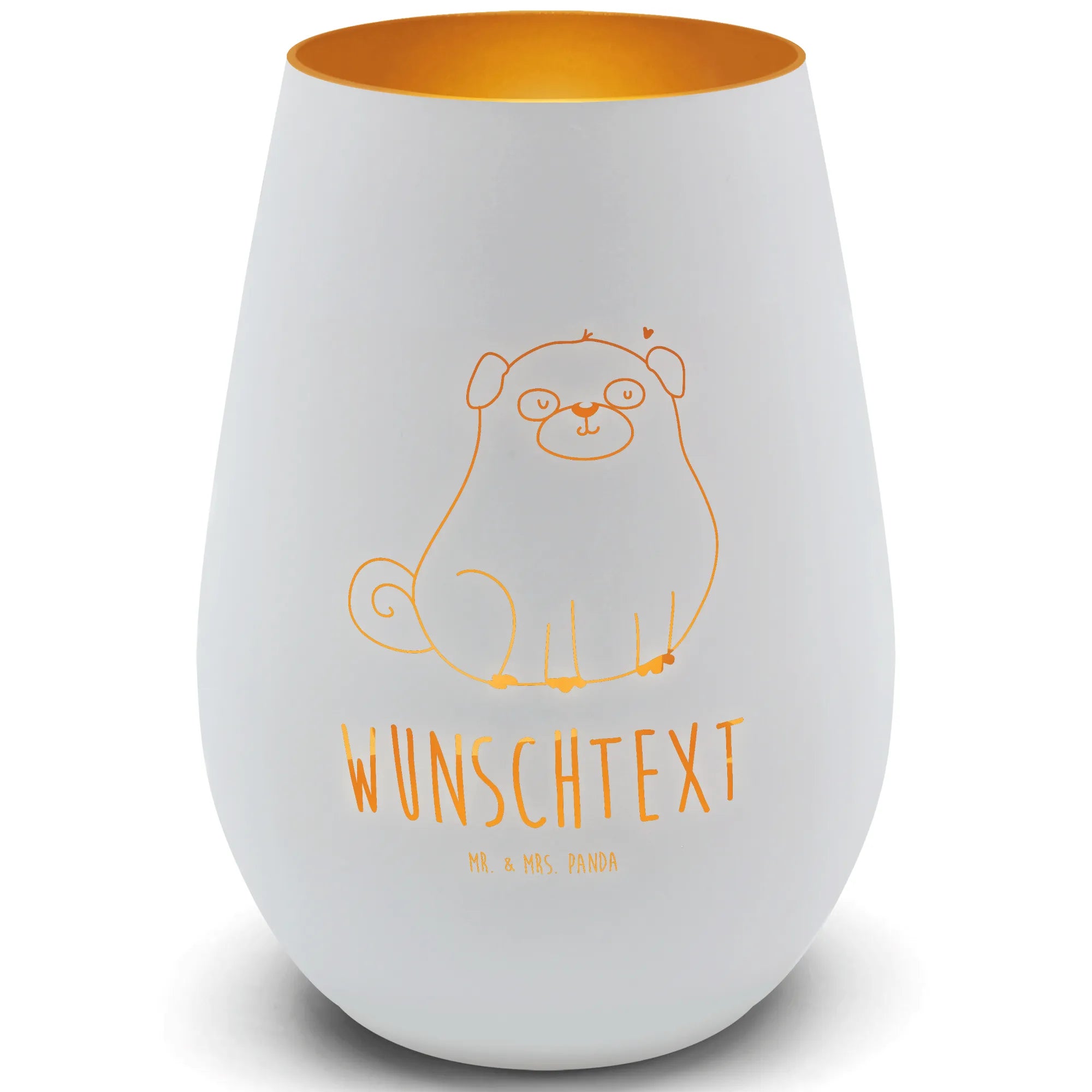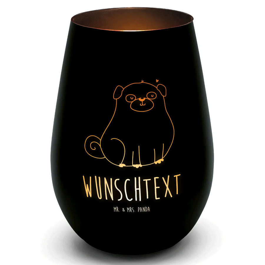 Verschenke kleine Leuchtmomente voller Liebe – mit dem Windlicht Gold personalisiert Mops von Mr. & Mrs. Panda.