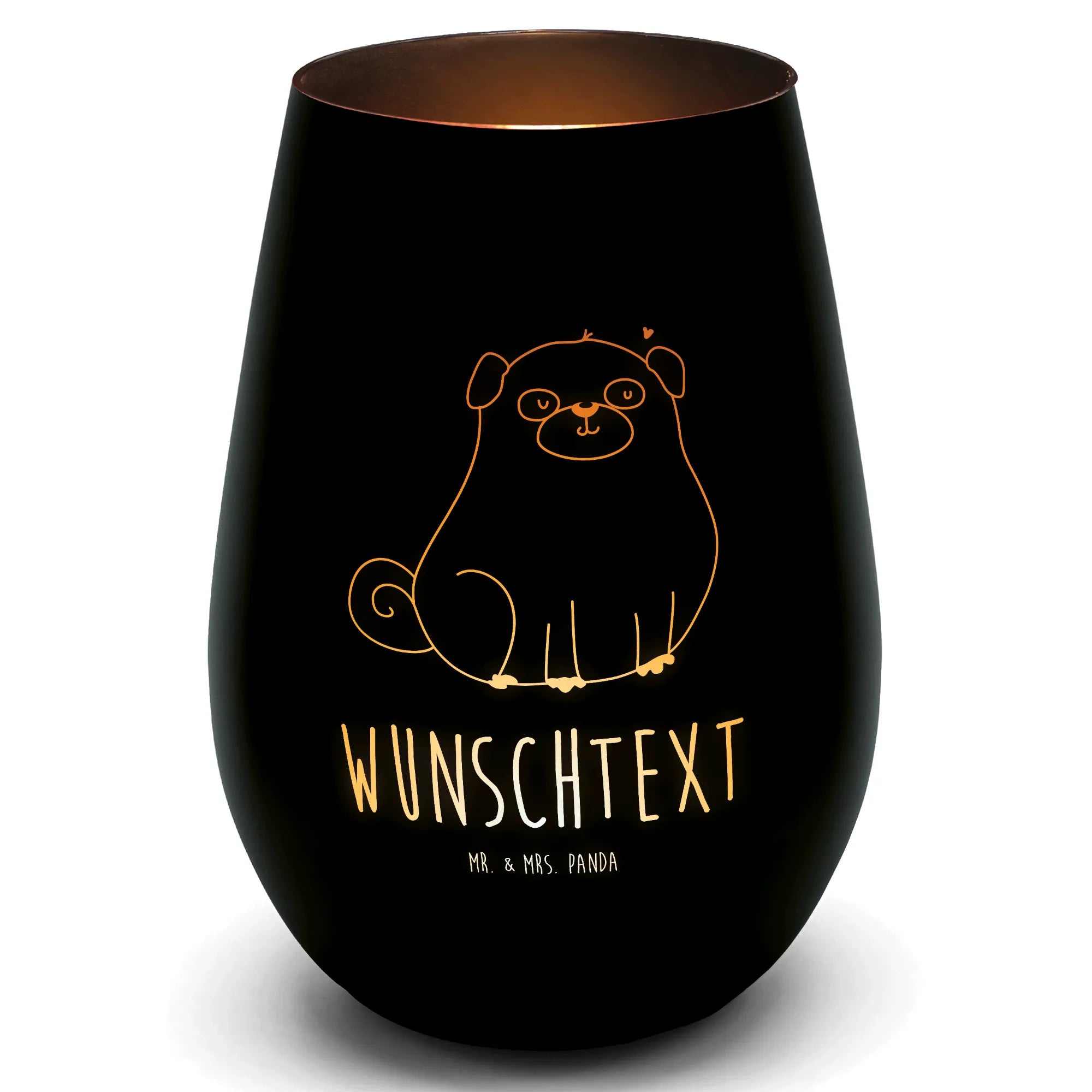Gold Windlicht personalisiert Mops – Ein Geschenk von Herzen
