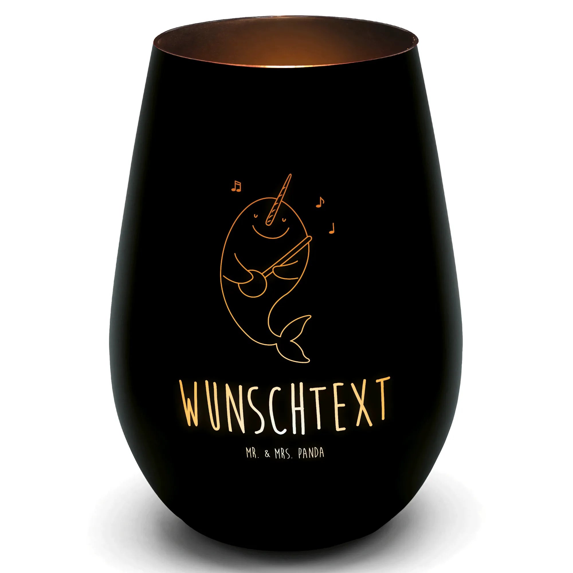 Mr. & Mrs. Panda Gold Windlicht "Narwal Gitarre" – personalisiertes Windlicht mit Wunschtext