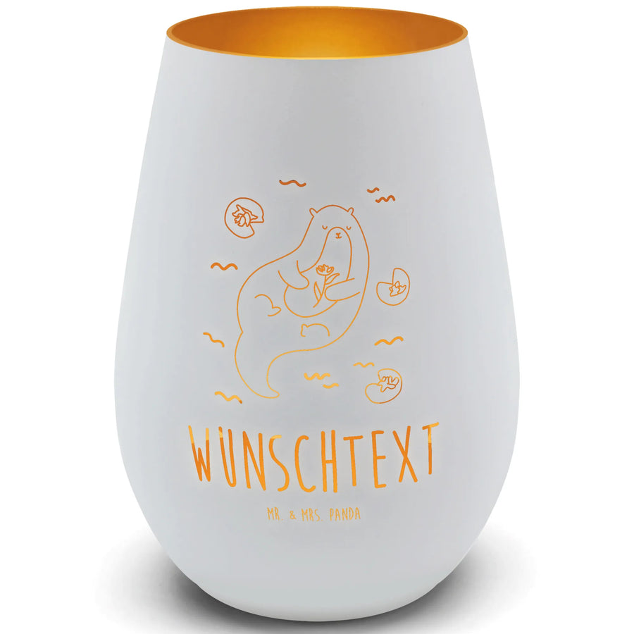 Gold Windlicht Personalisiert Otter Seerose - Weiß