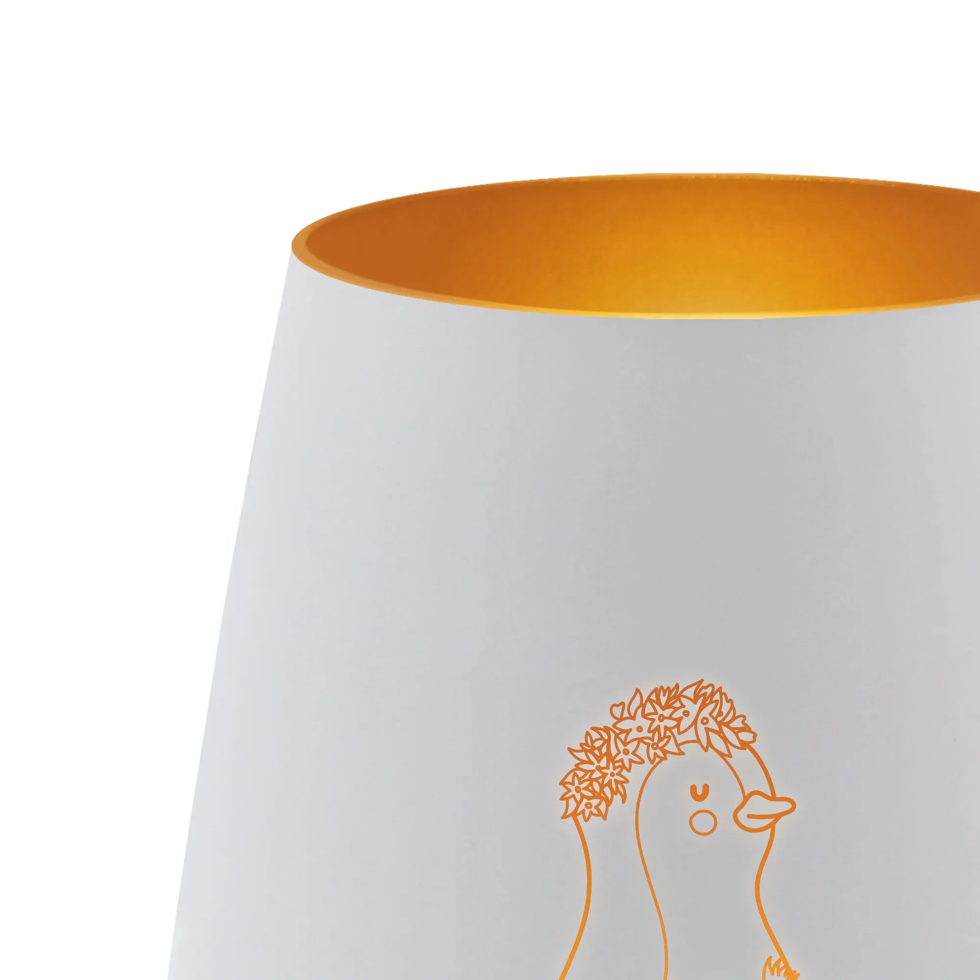 Gold Windlicht Personalisiert Pinguin Blumen - Weiß