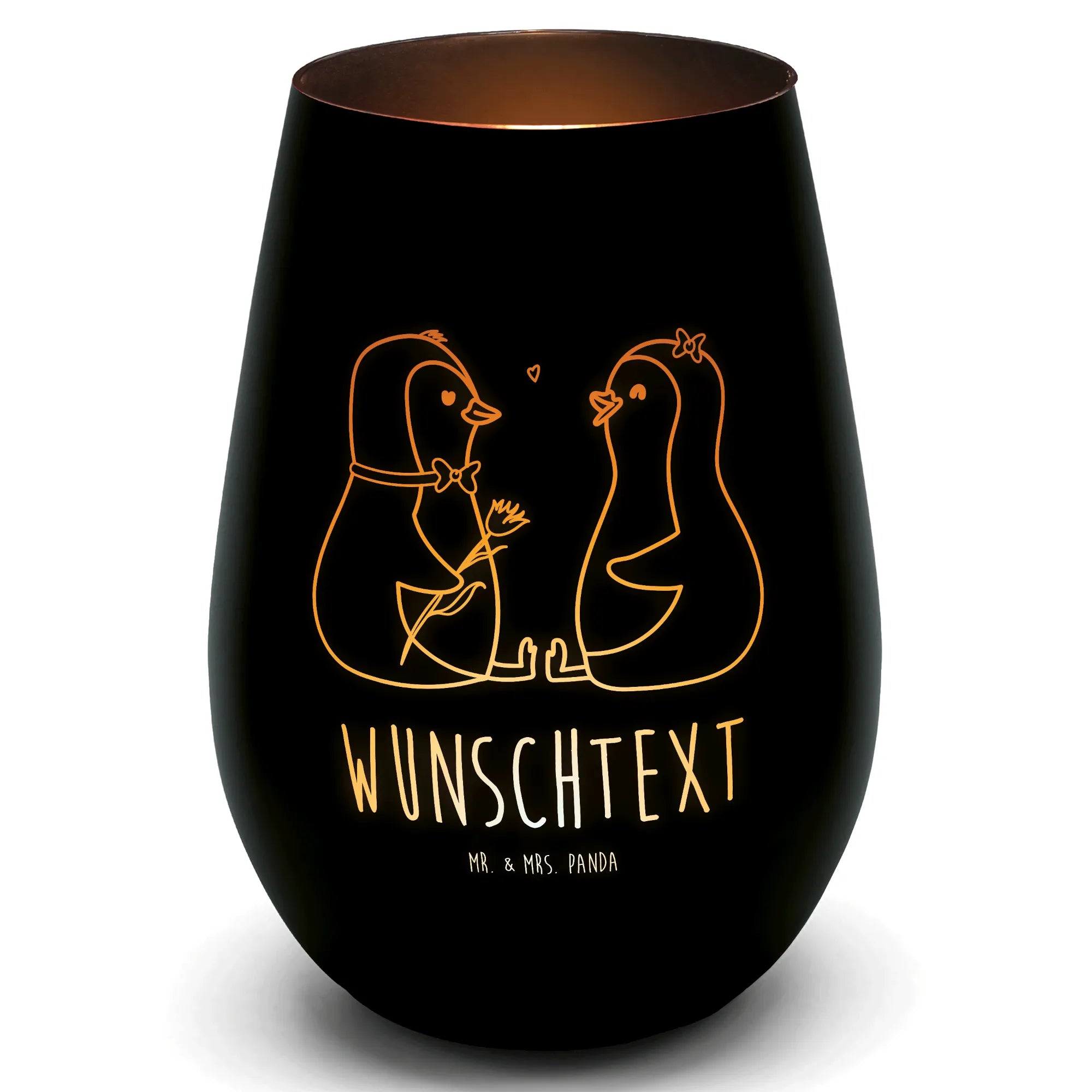Das personalisierte Gold Windlicht mit dem charmanten Pinguin Pärchen von Mr. & Mrs. Panda ist das ideale Geschenk für jeden Anlass! Du suchst nach einer liebevollen Überraschung für deinen Partner oder deine Partnerin? Ob zur Verlobung, zum Hochzeitstag oder einfach als Liebesbeweis – dieses Windlicht bringt nicht nur Licht in den Raum, sondern auch Freude ins Herz.
