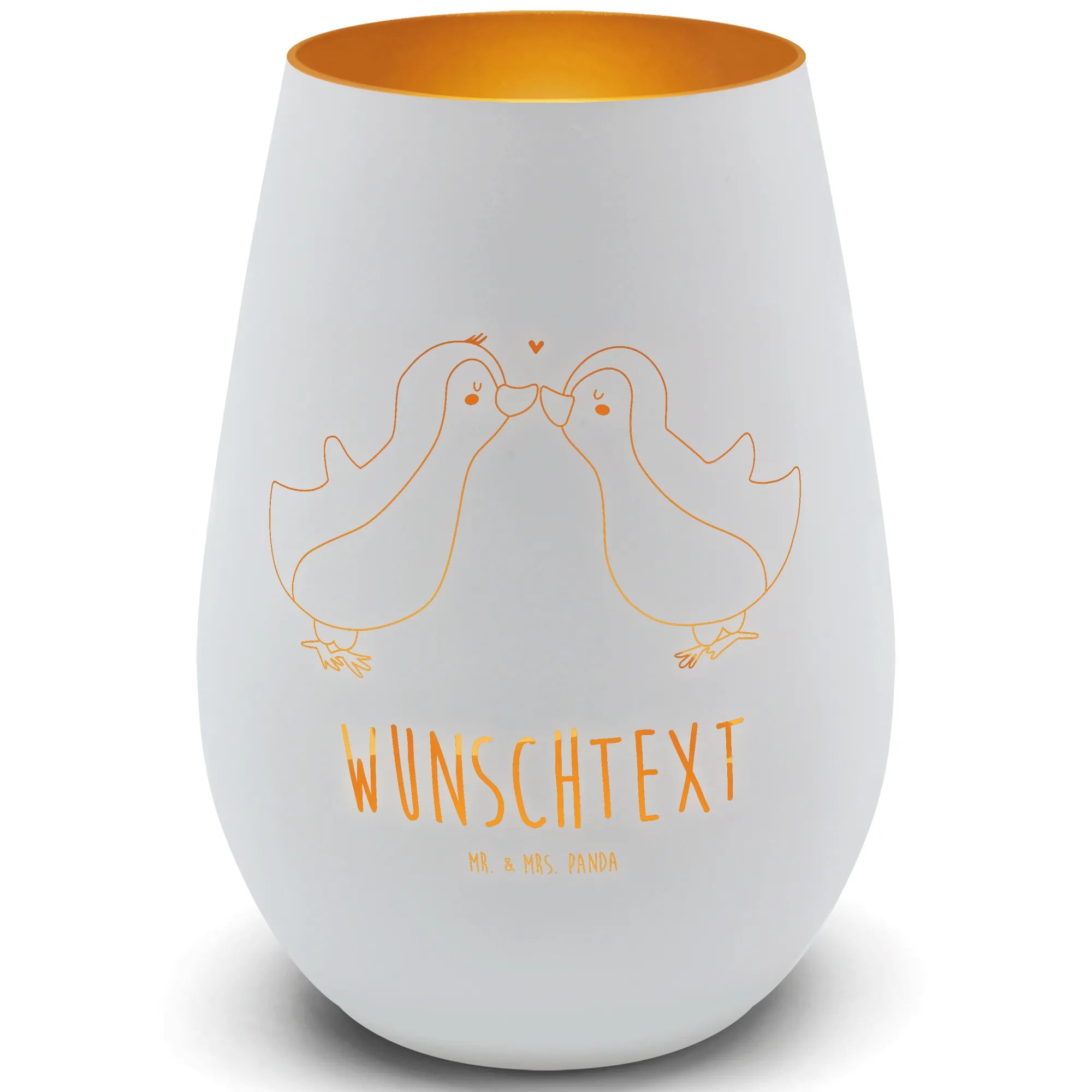Gold Windlicht Personalisiert Pinguine Kuss – Mr. & Mrs. Panda