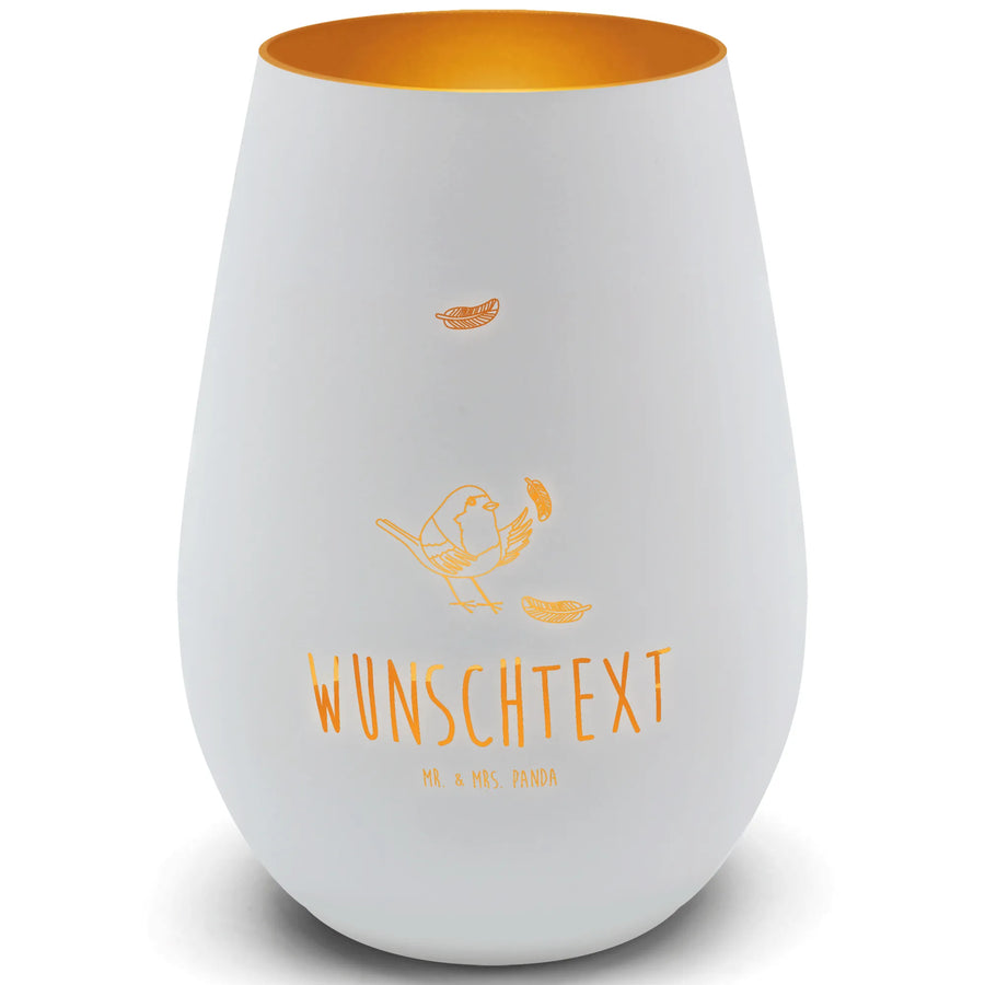 Gold Windlicht Personalisiert Rotkehlchen Federn