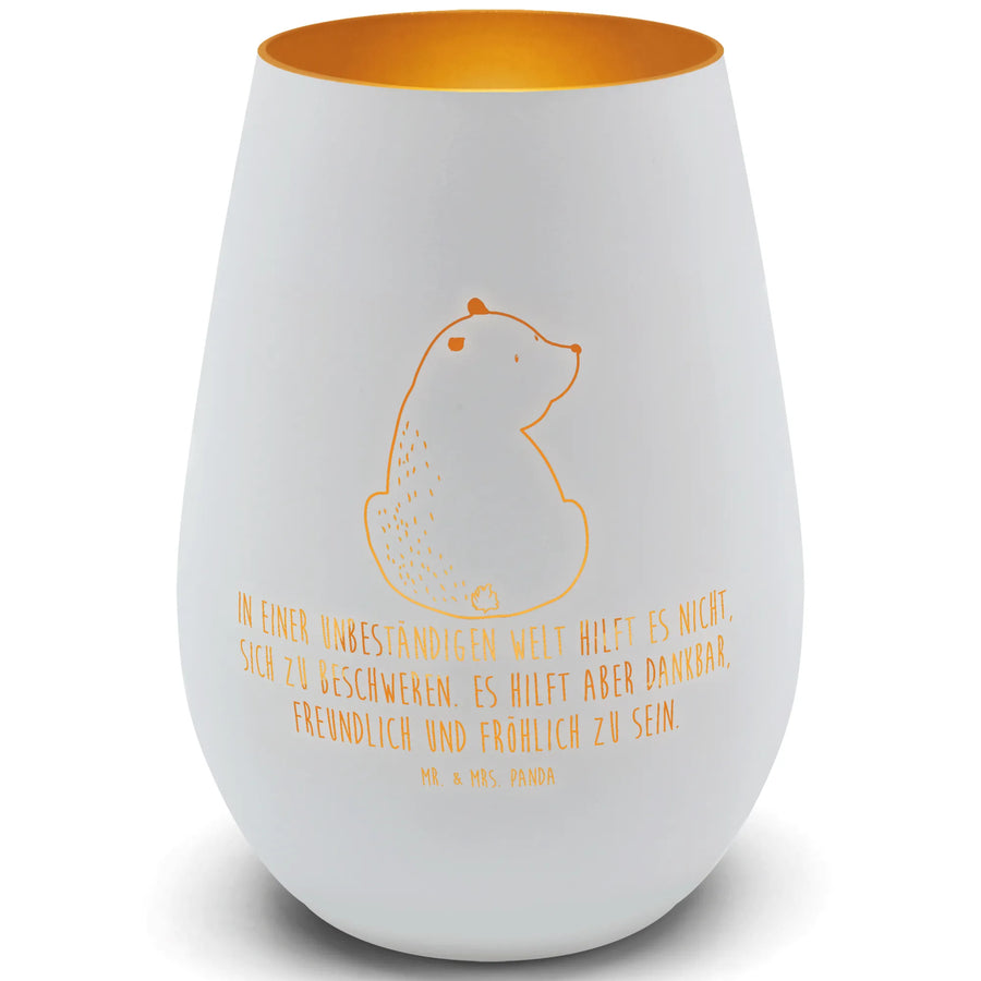 Das Gold Windlicht von Mr. & Mrs. Panda ist mehr als nur Dekoration – es ist ein Erlebnis! Mit wunderschönen gravierten Motiven und Sprüchen schafft es, mit einer Höhe von 120 mm und einem Durchmesser von 85 mm, eine einladende und romantische Atmosphäre in jedem Raum. Hergestellt aus edlem Glas, bietet es die perfekte Schutzfunktion für handelsübliche Teelichter und sorgt gleichzeitig für einen hinreißenden Glanz. Es ist hitzebeständig, wird bei Verwendung von Teelichtern schnell warm und hinterlässt einen einmaligen Matteffekt auf der Oberflächenschicht. Ideal für romantische Abende oder festliche Anlässe sorgt es stets für die richtige Stimmung. Die Pflege ist mühelos, gleich aus welchem Grund – eine sanfte Handwäsche reicht aus und darüber hinaus ist es spülmaschinengeeignet. Mit einem Teelicht inklusive, kannst du sofort dein Zuhause verschönern!