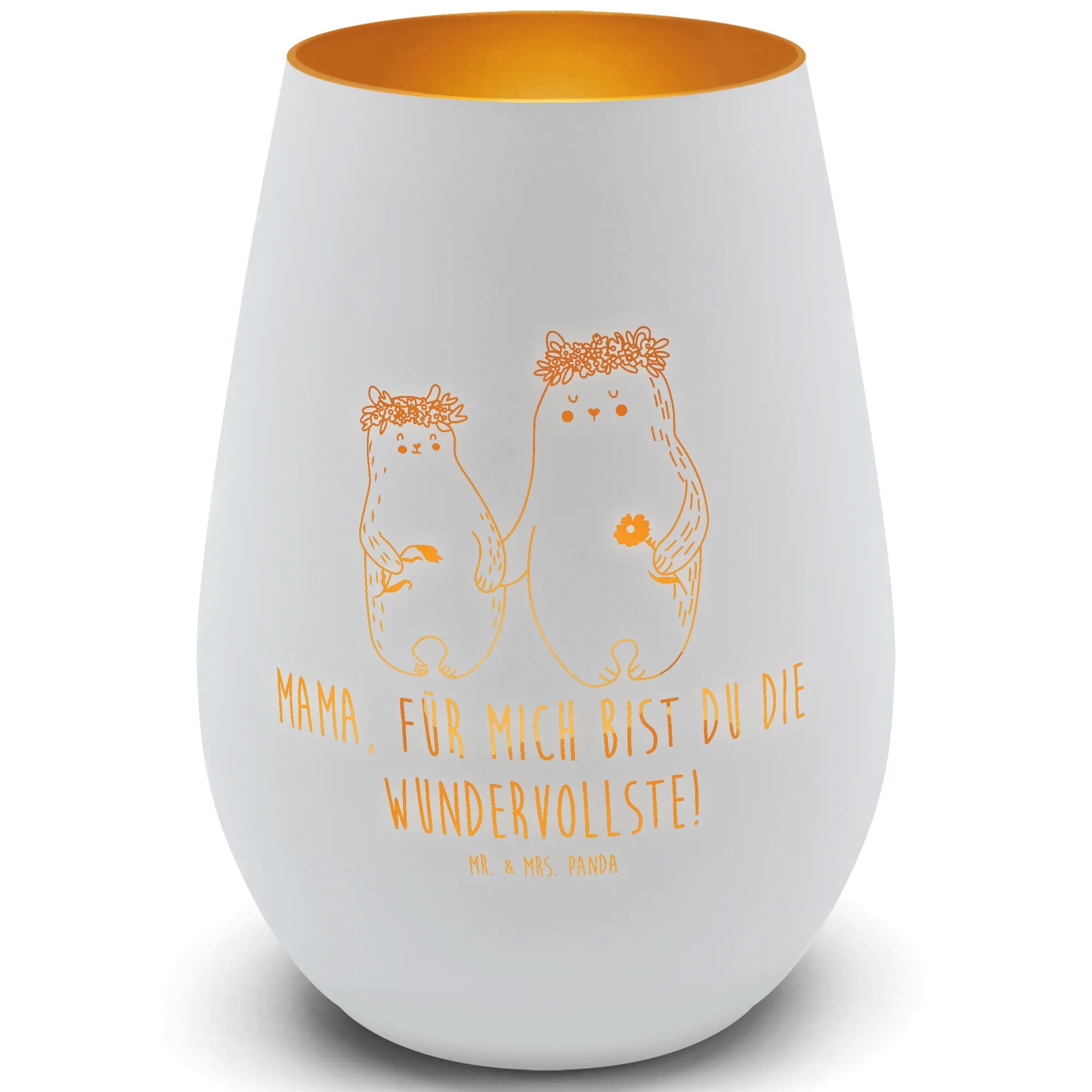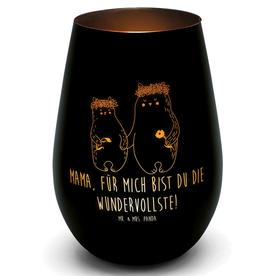 Entdecke das bezaubernde Gold Windlicht mit dem witzigen Motiv von Bären mit Blumenkranz – das perfekte Geschenk für alle Mamas und liebenden Familienmitglieder! Dieses wunderschöne Windlicht, graviert mit dem liebevollen Text „Mama, für mich bist du die Wundervollste!“, sorgt für eine gemütliche und romantische Stimmung in jedem Raum. Es ist aus hochwertigem Premium-Glas gefertigt und bietet nicht nur eine hitzebeständige Funktionalität, sondern ist auch wunderschön zum Anschauen.