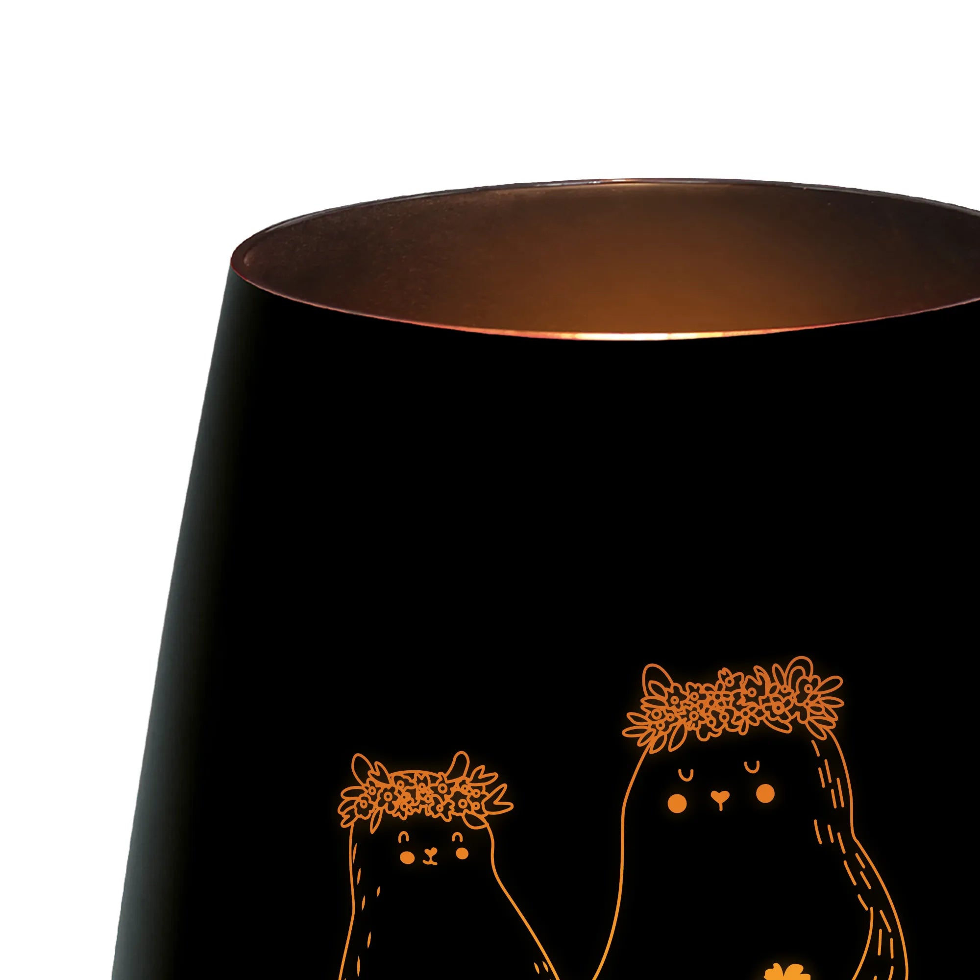 Gold Windlicht Bären mit Blumenkranz - Schwarz