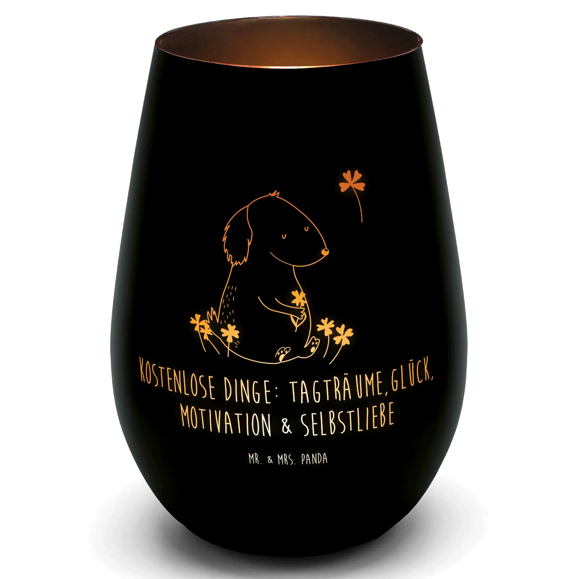 Mr. & Mrs. Panda Geschenk Hund mit Kleeblatt - Ein Stück Glück für Tagträumer