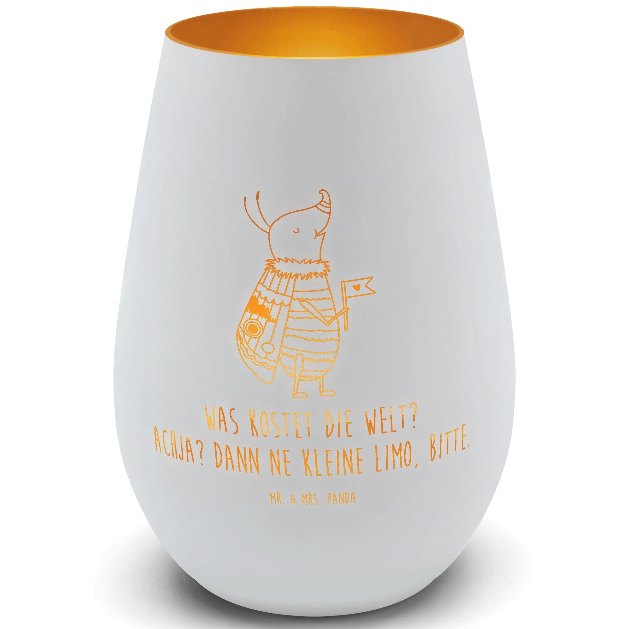 Das Gold Windlicht von Mr. & Mrs. Panda ist mehr als nur Dekoration – es ist ein Erlebnis! Mit wunderschönen gravierten Motiven und Sprüchen schafft es, mit einer Höhe von 120 mm und einem Durchmesser von 85 mm, eine einladende und romantische Atmosphäre in jedem Raum. Hergestellt aus edlem Glas, bietet es die perfekte Schutzfunktion für handelsübliche Teelichter und sorgt gleichzeitig für einen hinreißenden Glanz. Es ist hitzebeständig, wird bei Verwendung von Teelichtern schnell warm und hinterlässt einen einmaligen Matteffekt auf der Oberflächenschicht. Ideal für romantische Abende oder festliche Anlässe sorgt es stets für die richtige Stimmung. Die Pflege ist mühelos, gleich aus welchem Grund – eine sanfte Handwäsche reicht aus und darüber hinaus ist es spülmaschinengeeignet. Mit einem Teelicht inklusive, kannst du sofort dein Zuhause verschönern!
