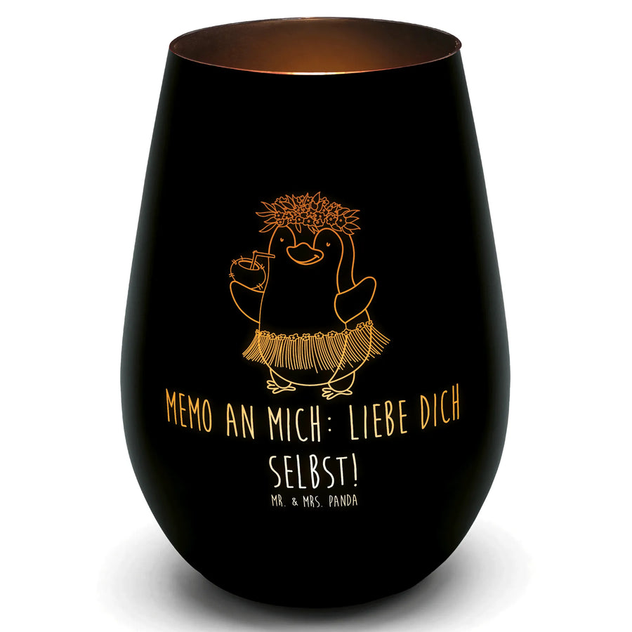 Das goldene Windlicht mit dem niedlichen Motiv des Pinguins Kokosnuss aus der Pinguin-Kollektion von Mr. & Mrs. Panda ist das perfekte Geschenk für alle, die das Leben lieben und sich an kleinen Freuden erfreuen. Egal ob für einen gemütlichen Abend zu Hause, als dekoratives Element für feierliche Sommerabende oder einfach als liebevolle Geste für Freunde und Familie – dieses Windlicht bringt mit seinem fröhlichen Design und der warmen, einladenden Atmosphäre sofort gute Laune ins Haus.