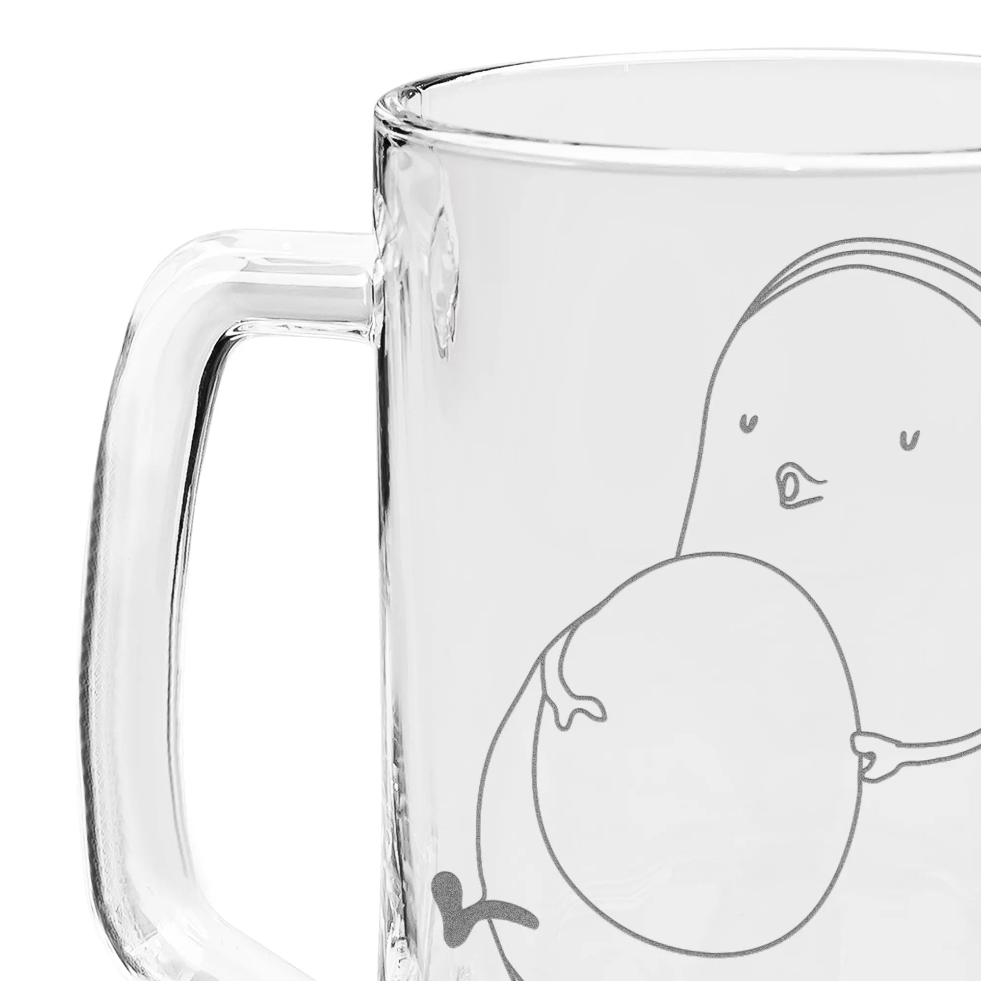 Der Gravur Bierkrug mit dem niedlichen Motiv "Avocado pfeift" aus der Avocado Kollektion von Mr. & Mrs. Panda ist das perfekte Geschenk für alle, die das Leben mit einem Lächeln angehen. Ob für einen Geburtstag, den nächsten Vatertag oder einfach als kleine Aufmerksamkeit für einen lieben Menschen – mit diesem Bierkrug zauberst du jedem ein Lächeln ins Gesicht. Die fröhliche Avocado, die sich ihren dicken Kern hält und pfeift, steht symbolisch für Lebensfreude und Positivität.