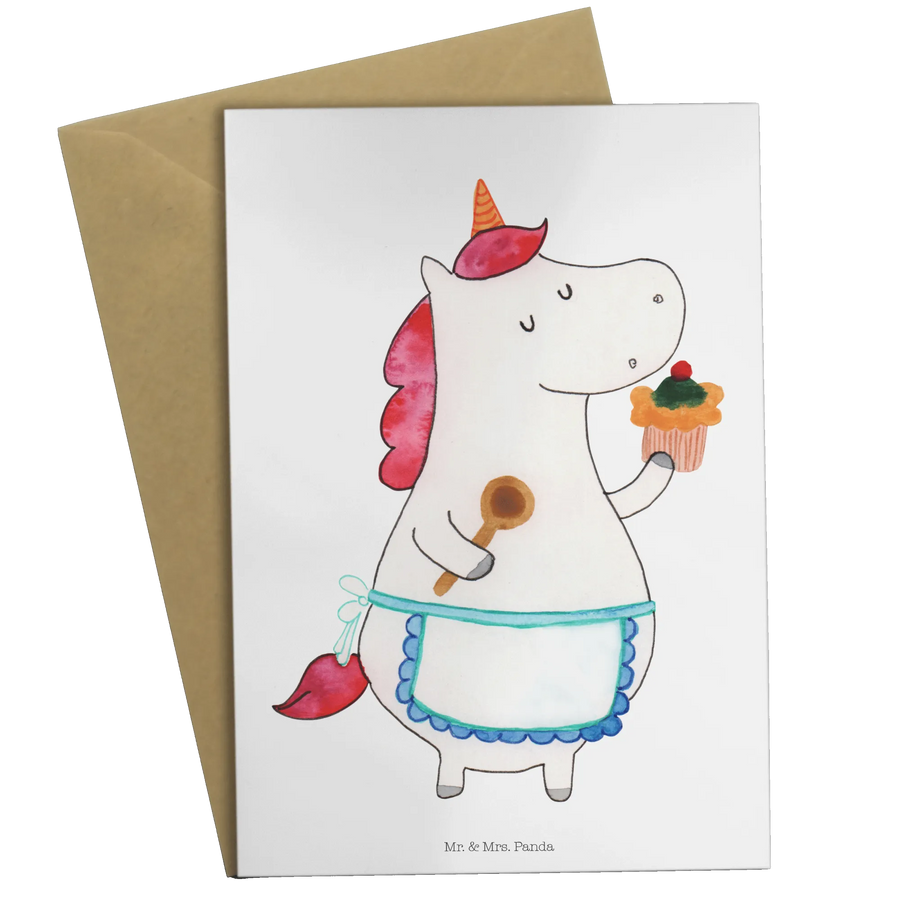 Die zauberhafte Grußkarte "Einhorn Küchenfee" von Mr. & Mrs. Panda ist das perfekte Geschenk für alle, die Einhörner und das Backen lieben. Egal ob zum Geburtstag, zur Hochzeit oder einfach nur, um jemandem eine Freude zu machen – diese Karte zaubert garantiert ein Lächeln ins Gesicht! Mit ihrem liebevoll handgezeichneten Motiv zeigt sie ein süßes Einhorn, das mit einer Kochmütze und Schürze den Küchentraum wahr werden lässt.